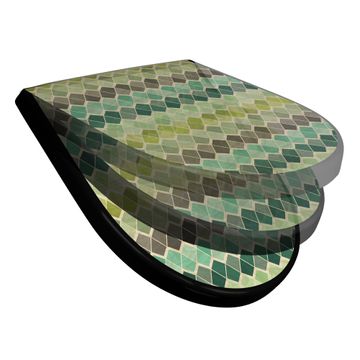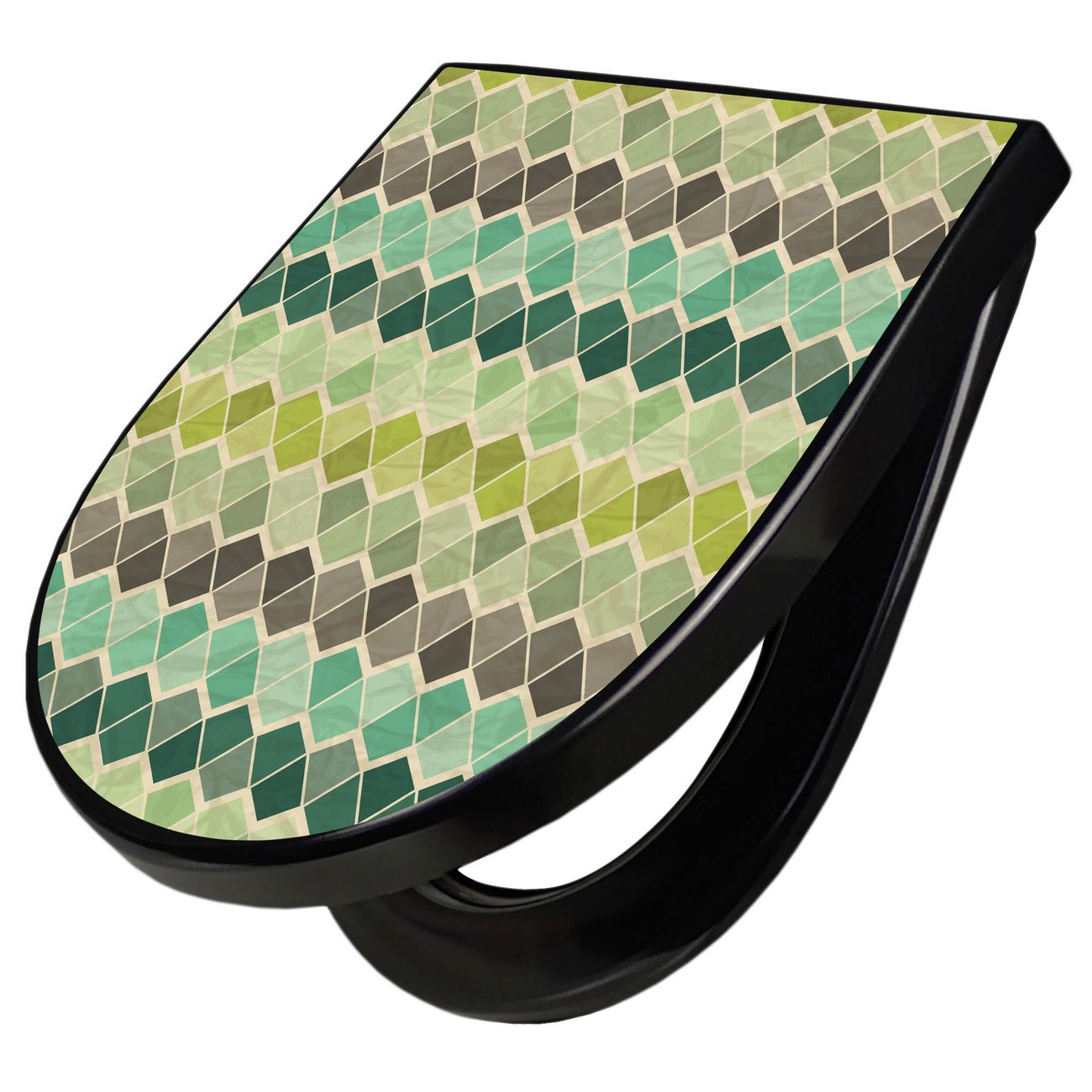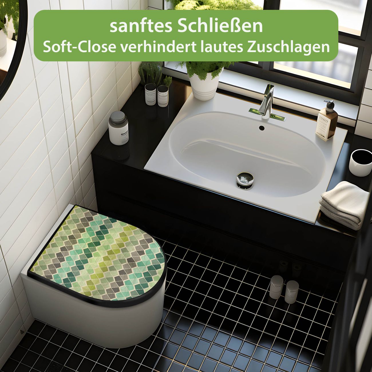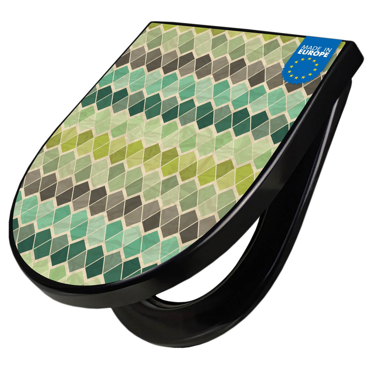 WC Sitz D-Form Schwarz mit Absenkautomatik Motiv Vier Farben Grün