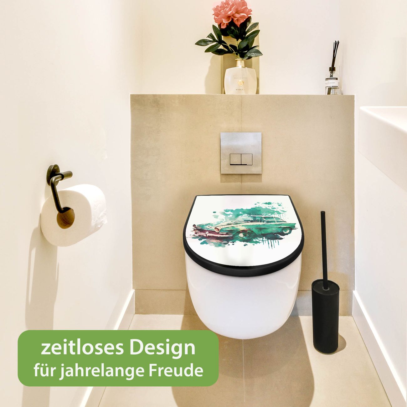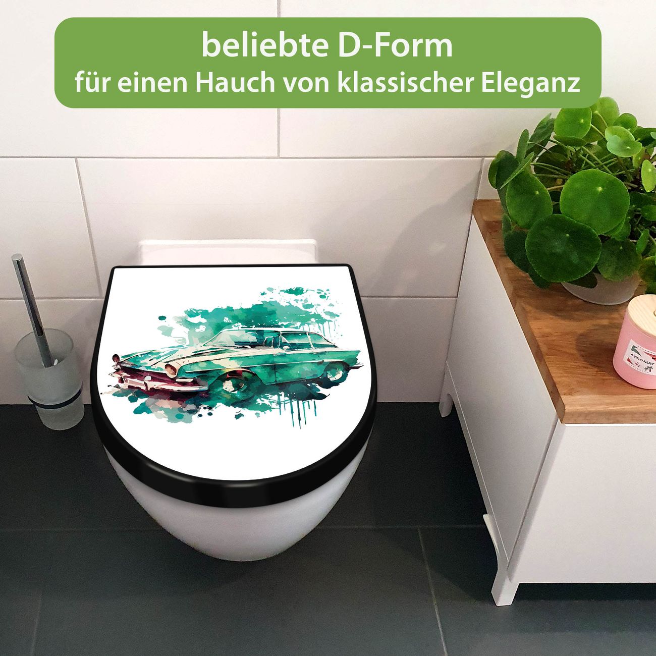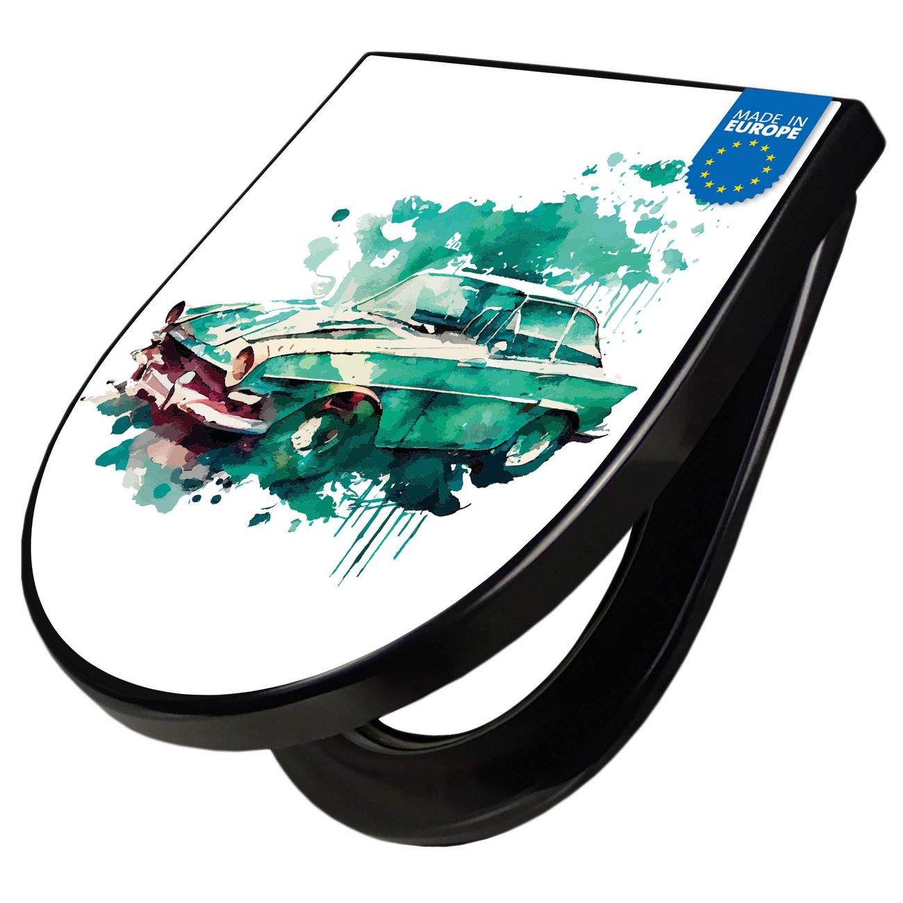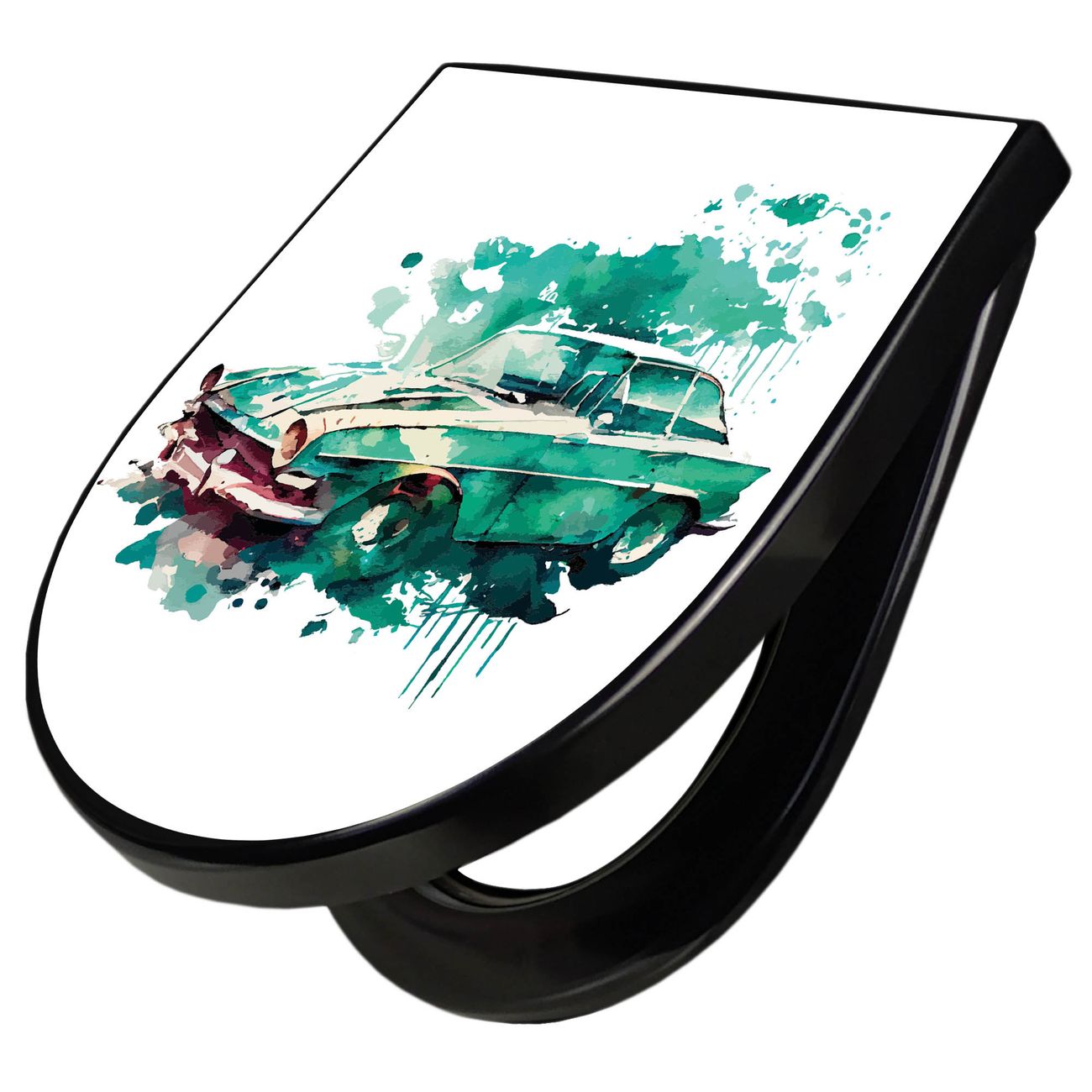 WC Sitz D-Form Schwarz mit Absenkautomatik Motiv Vintage Auto Aquarell