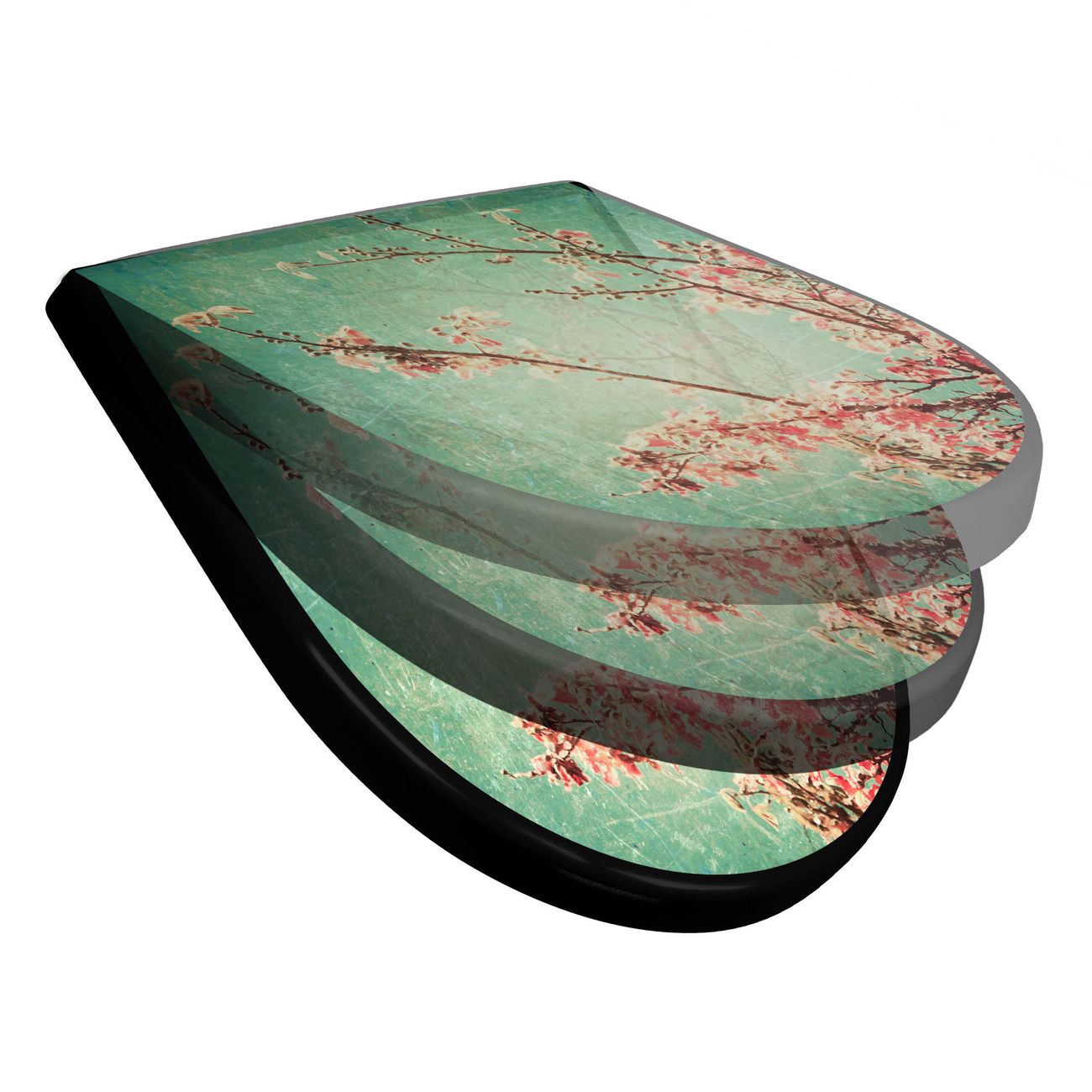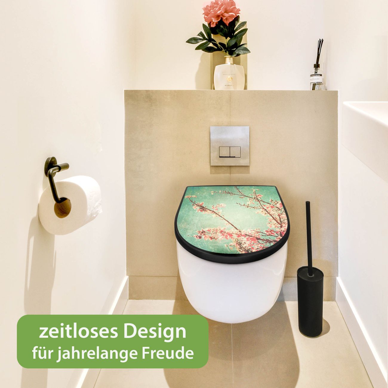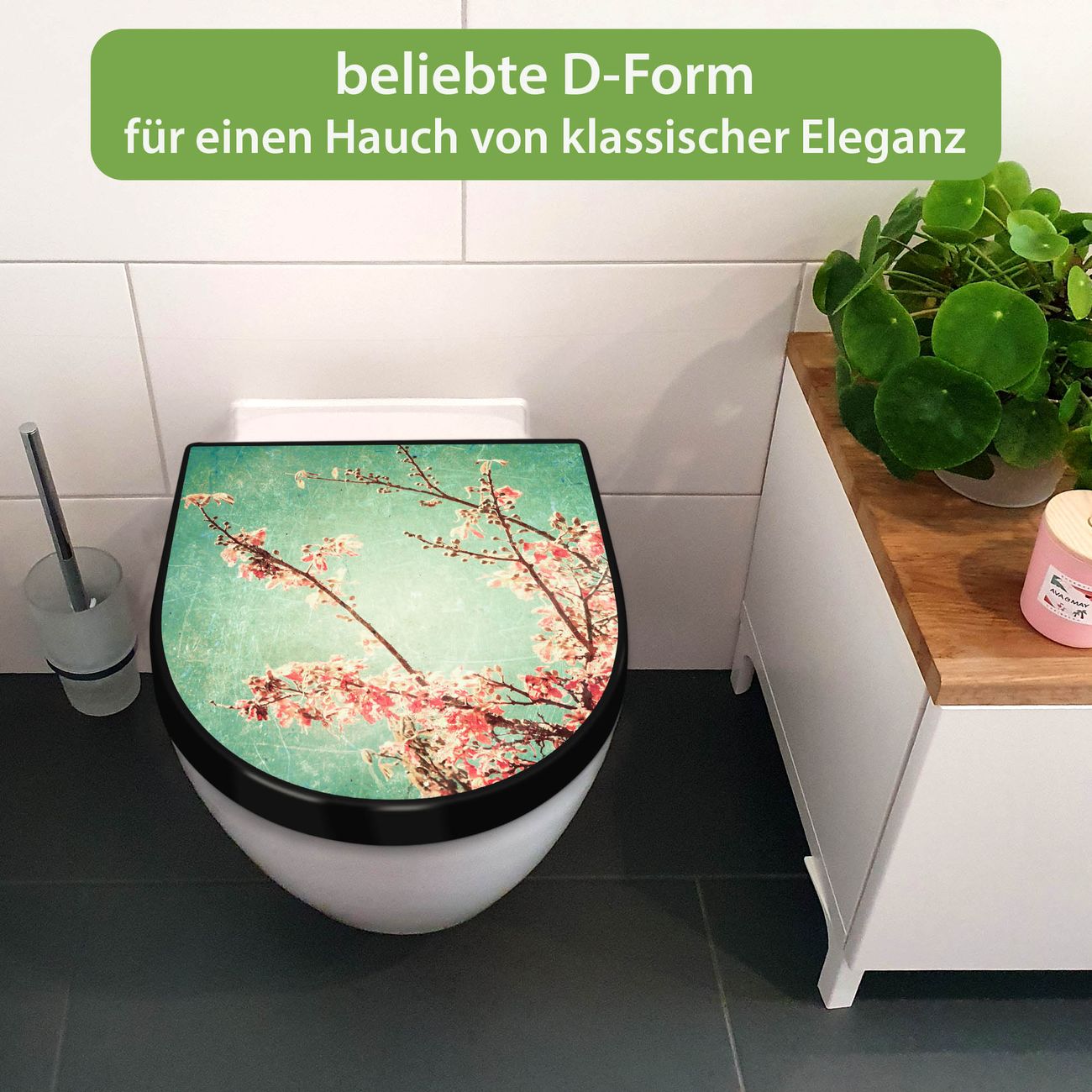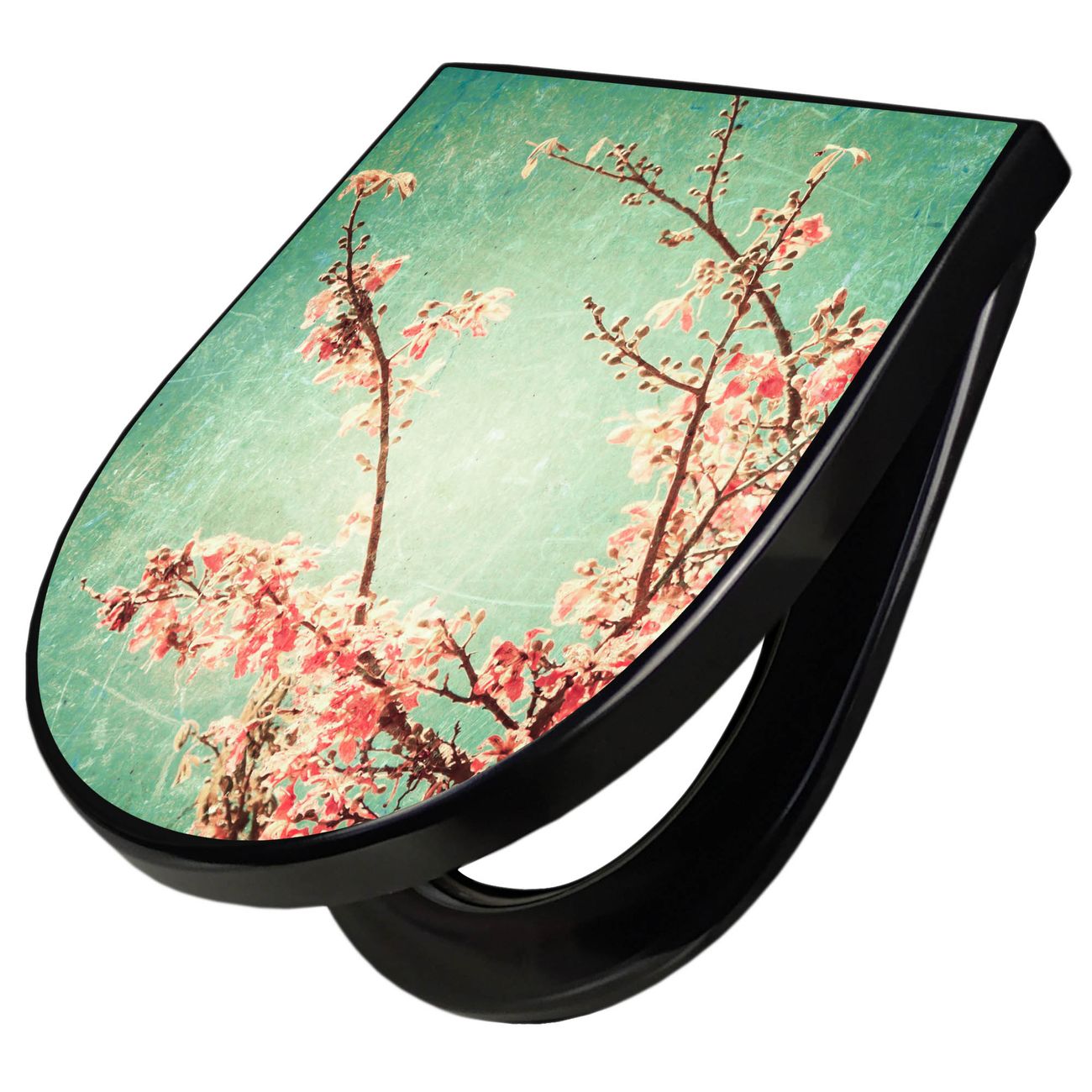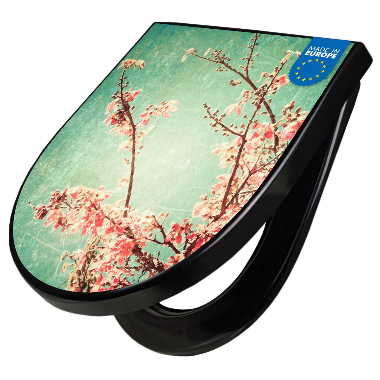 WC Sitz D-Form Schwarz mit Absenkautomatik Motiv Vintage Herbst