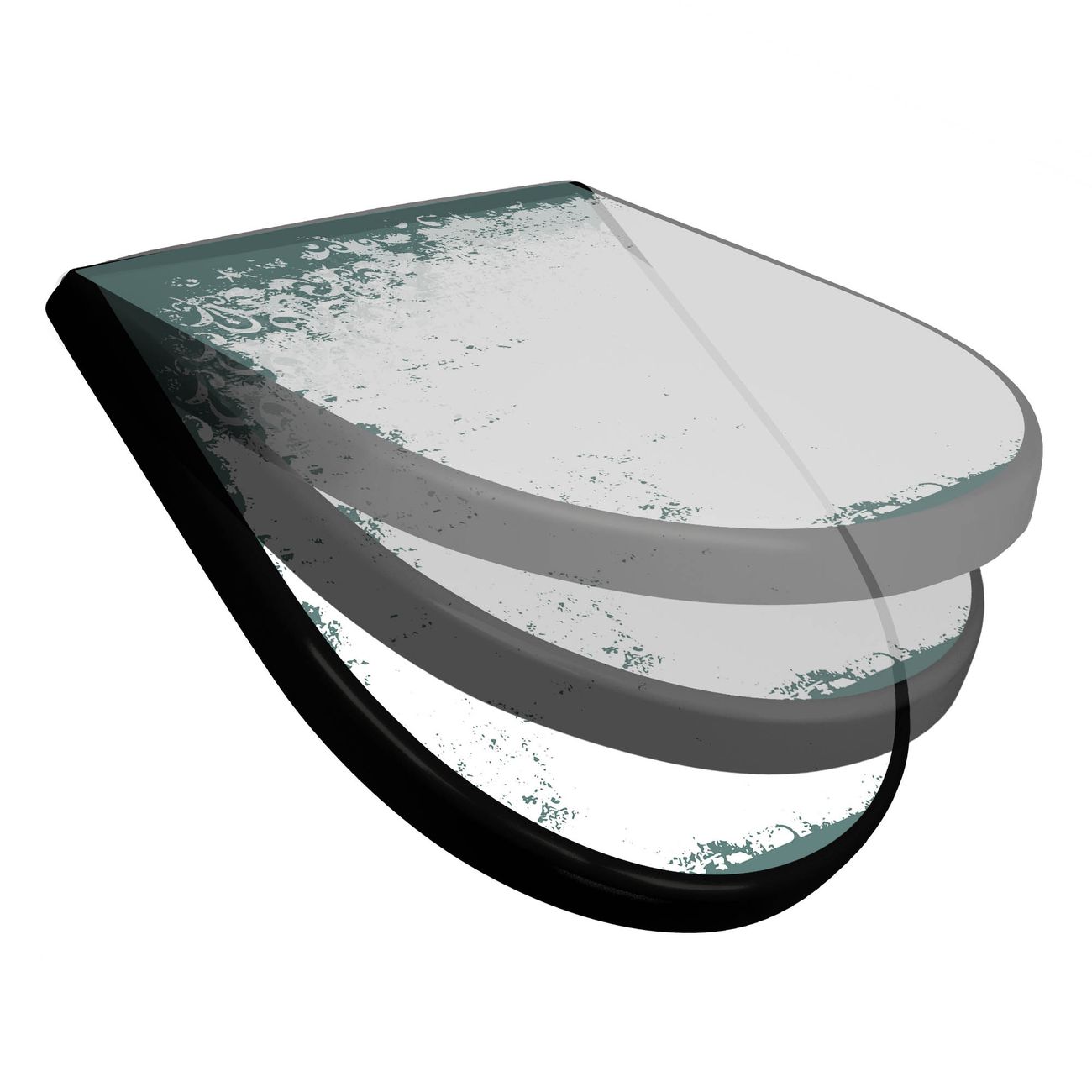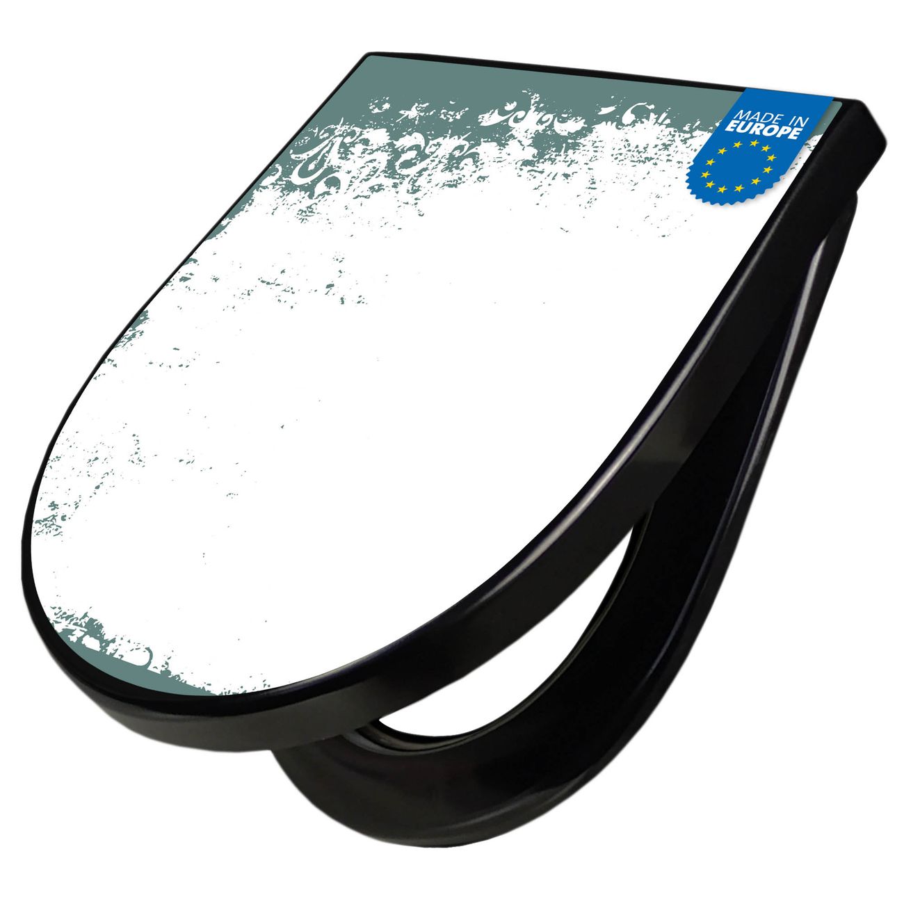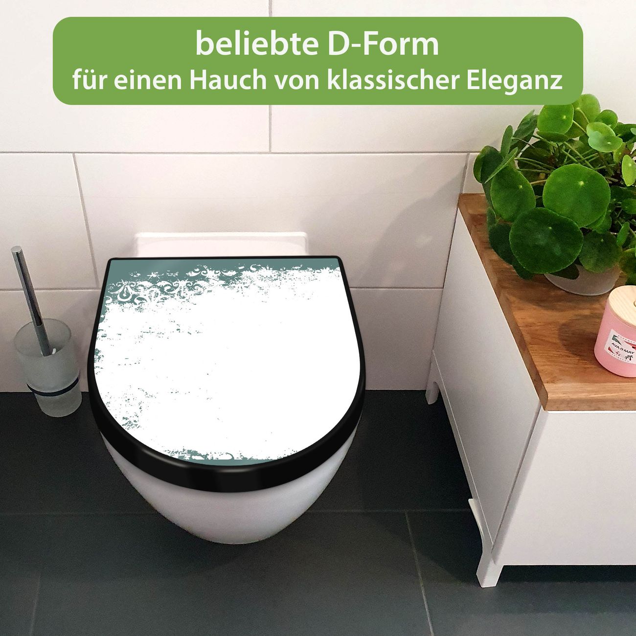 WC Sitz D-Form Schwarz mit Absenkautomatik Motiv Vintage-Ornament
