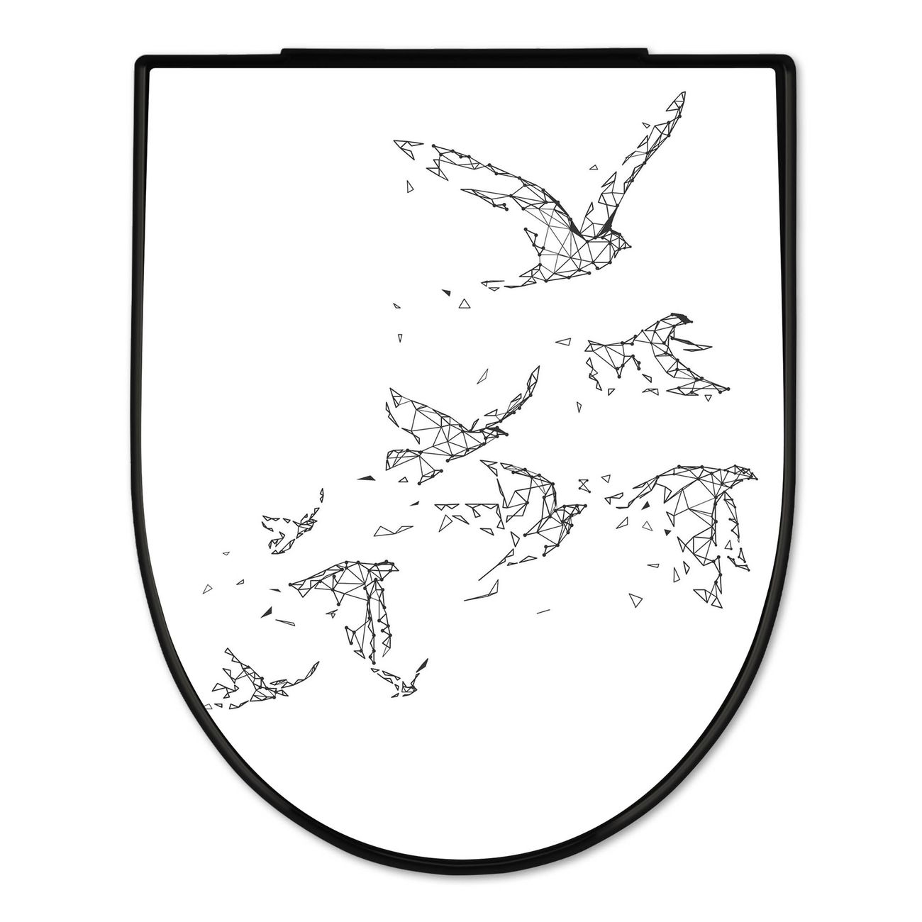 WC Sitz D-Form Schwarz mit Absenkautomatik Motiv Vögel abstrakt 2