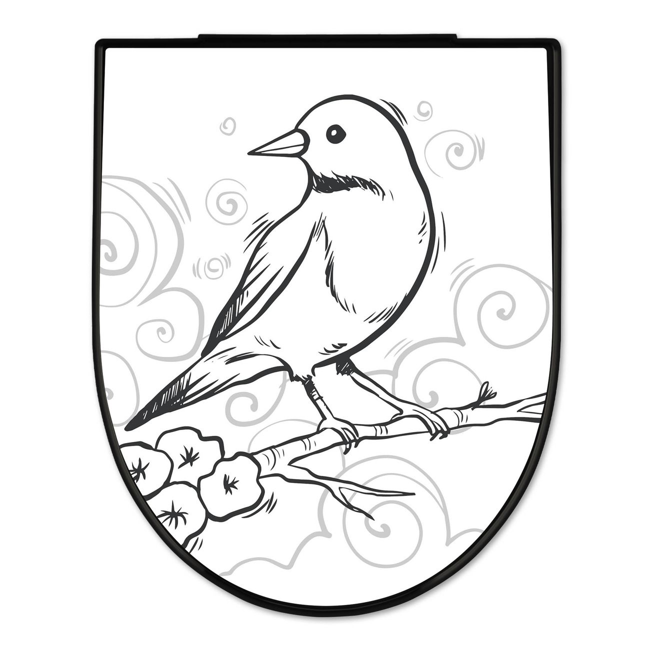 WC Sitz D-Form Schwarz mit Absenkautomatik Motiv Vogel auf Blütenzweig