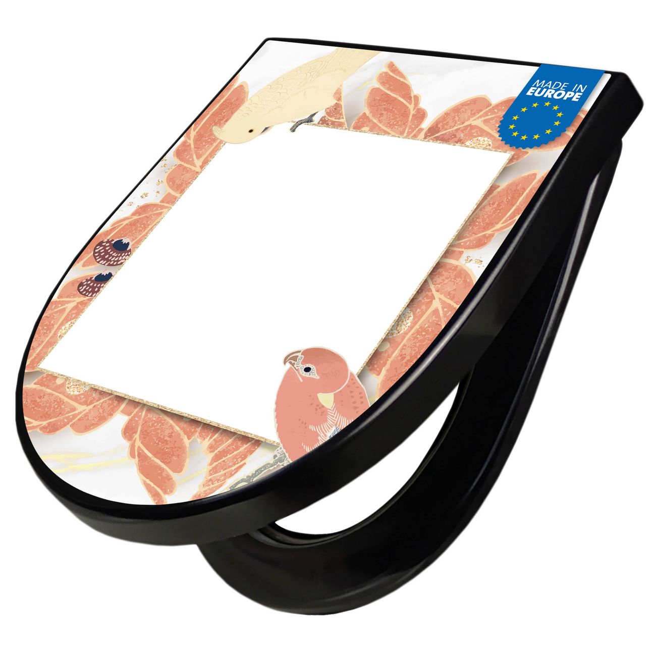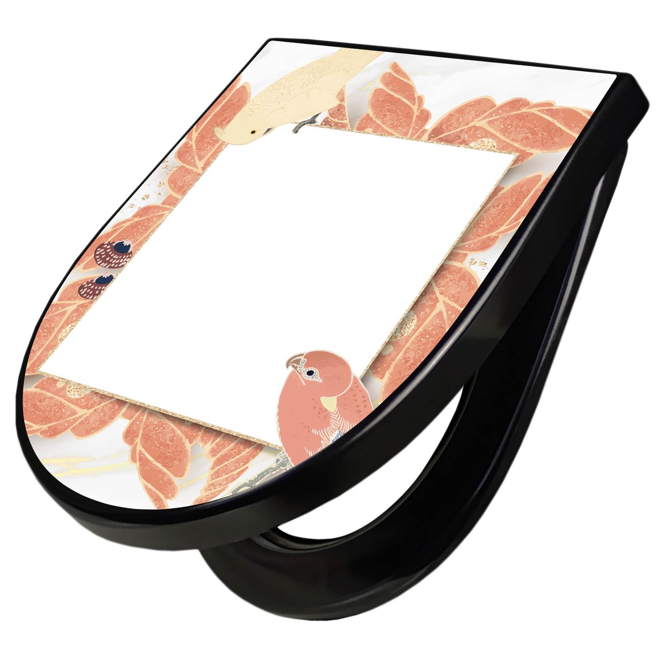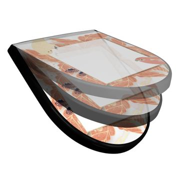 WC Sitz D-Form Schwarz mit Absenkautomatik Motiv Vogelrahmen