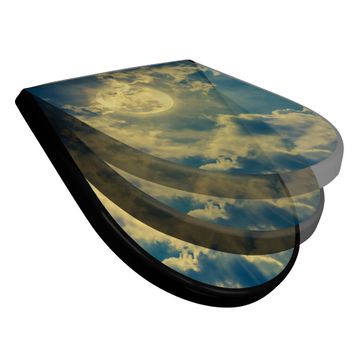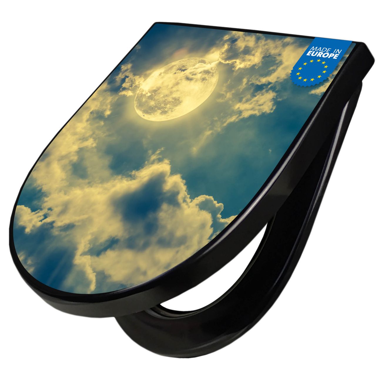 WC Sitz D-Form Schwarz mit Absenkautomatik Motiv Vollmond 2