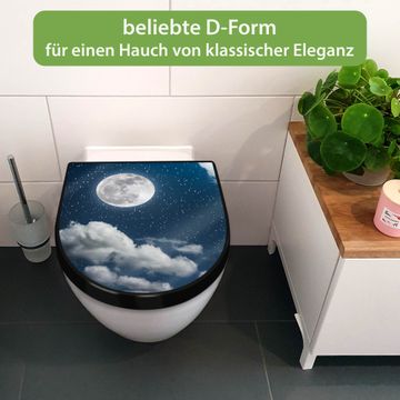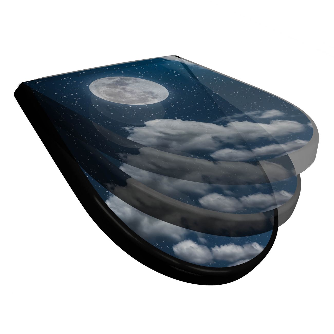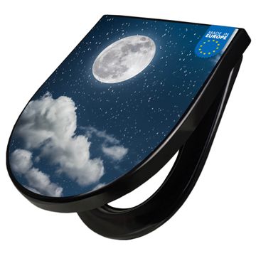 WC Sitz D-Form Schwarz mit Absenkautomatik Motiv Vollmond 3