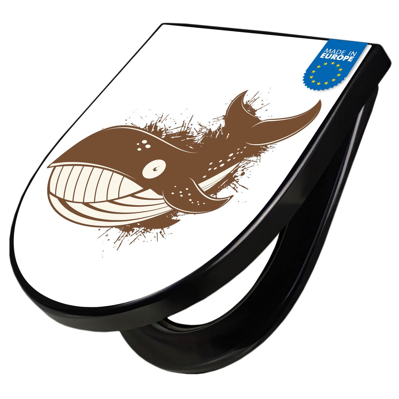 WC Sitz D-Form Schwarz mit Absenkautomatik Motiv Wal Comic 2