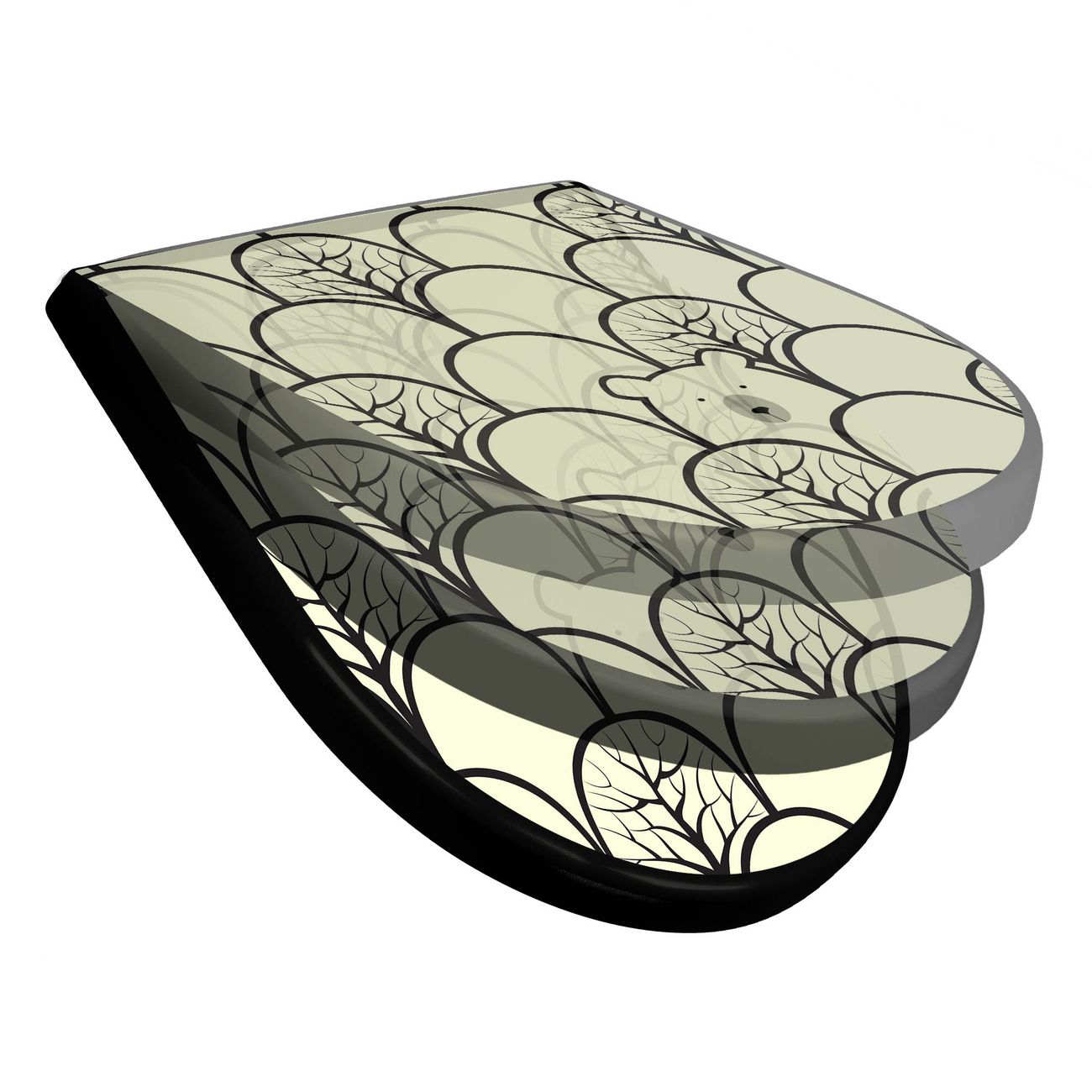 WC Sitz D-Form Schwarz mit Absenkautomatik Motiv Waldbeeren