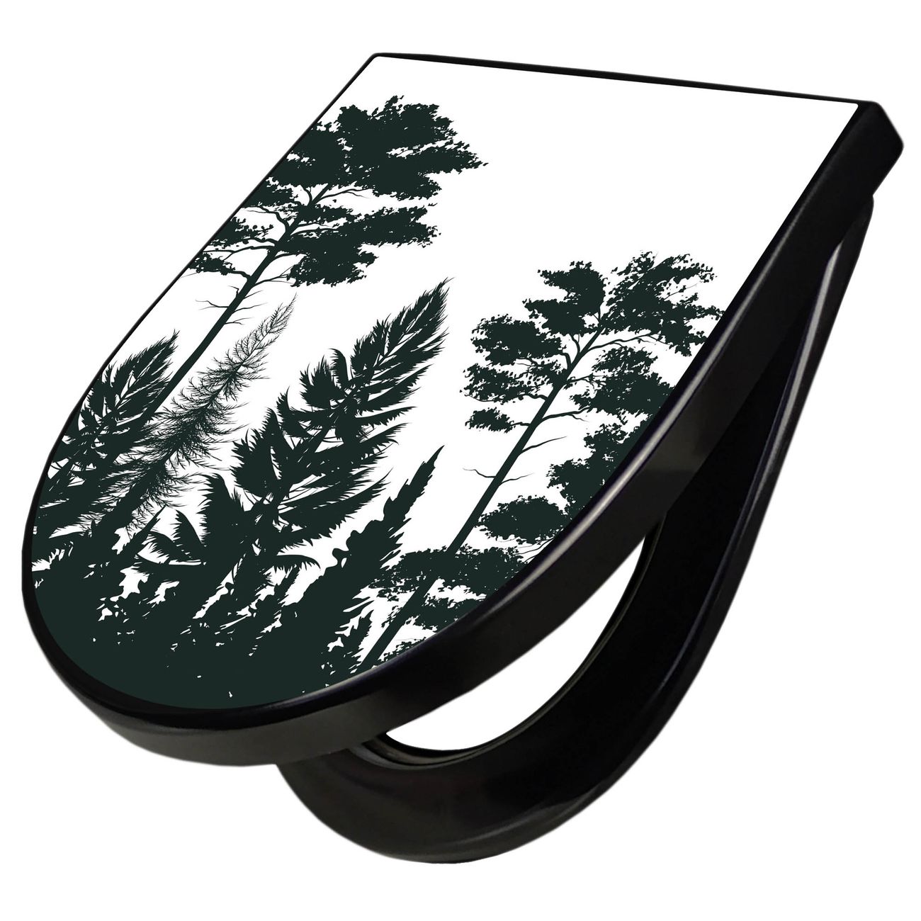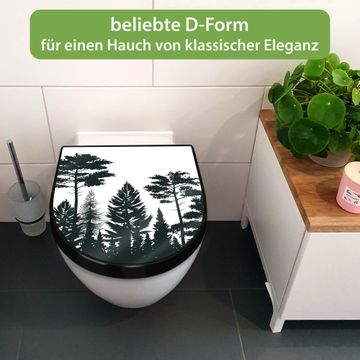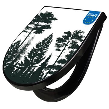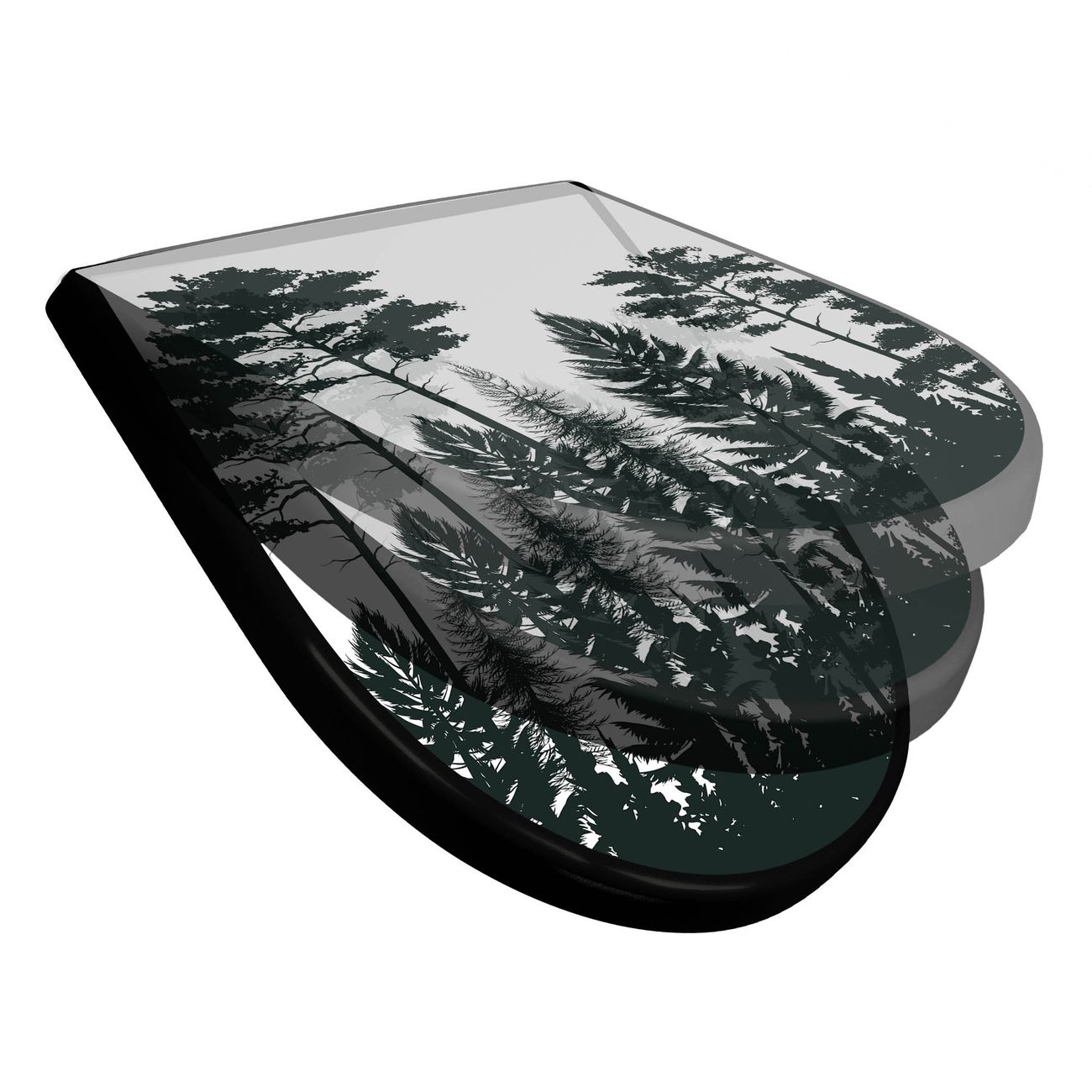 WC Sitz D-Form Schwarz mit Absenkautomatik Motiv Waldsilhouette