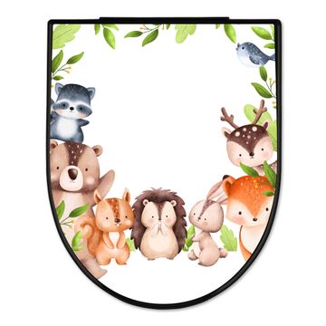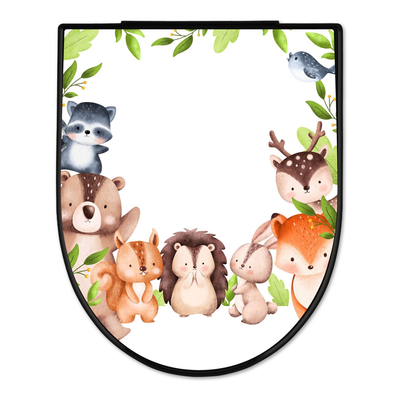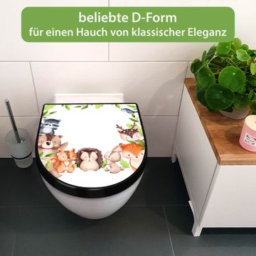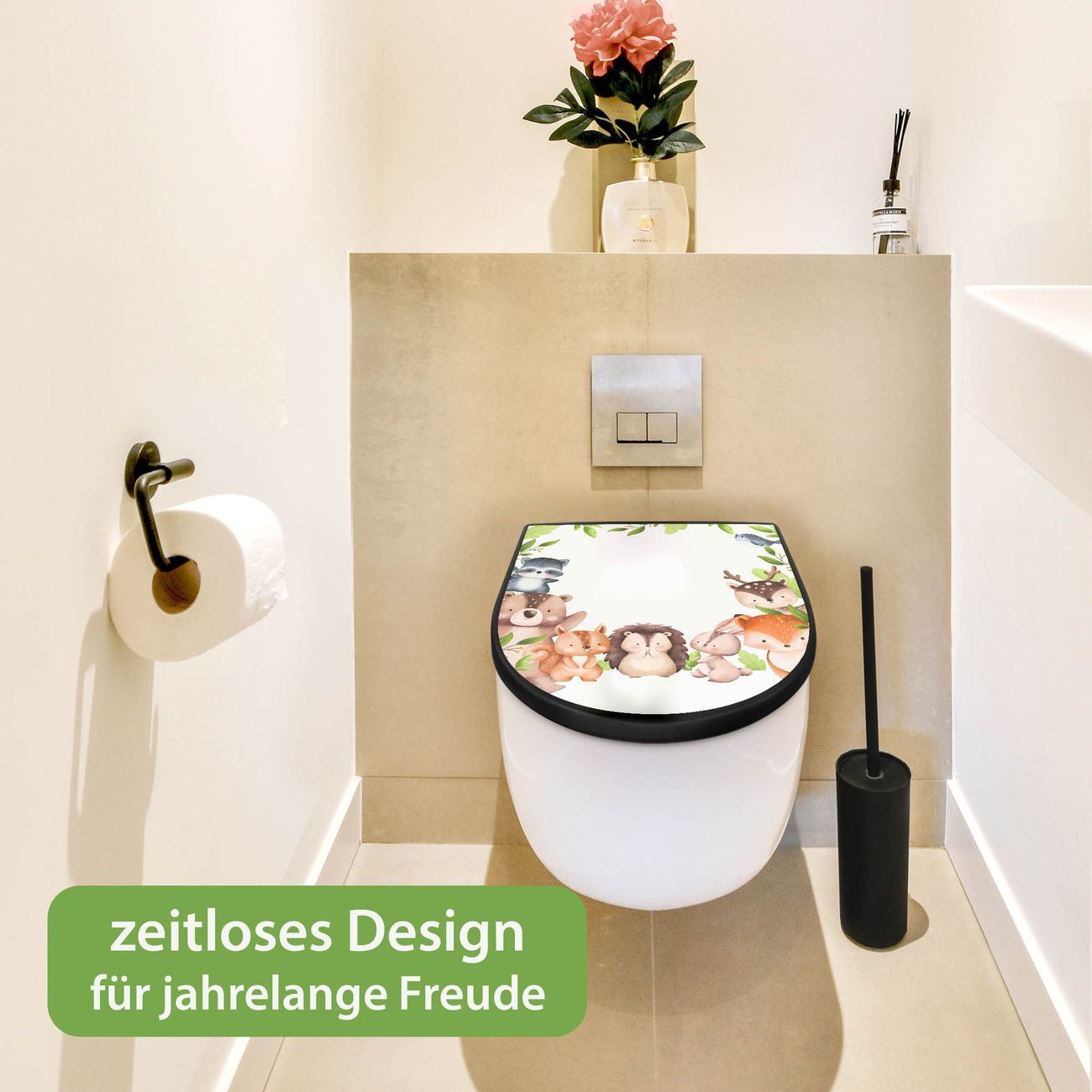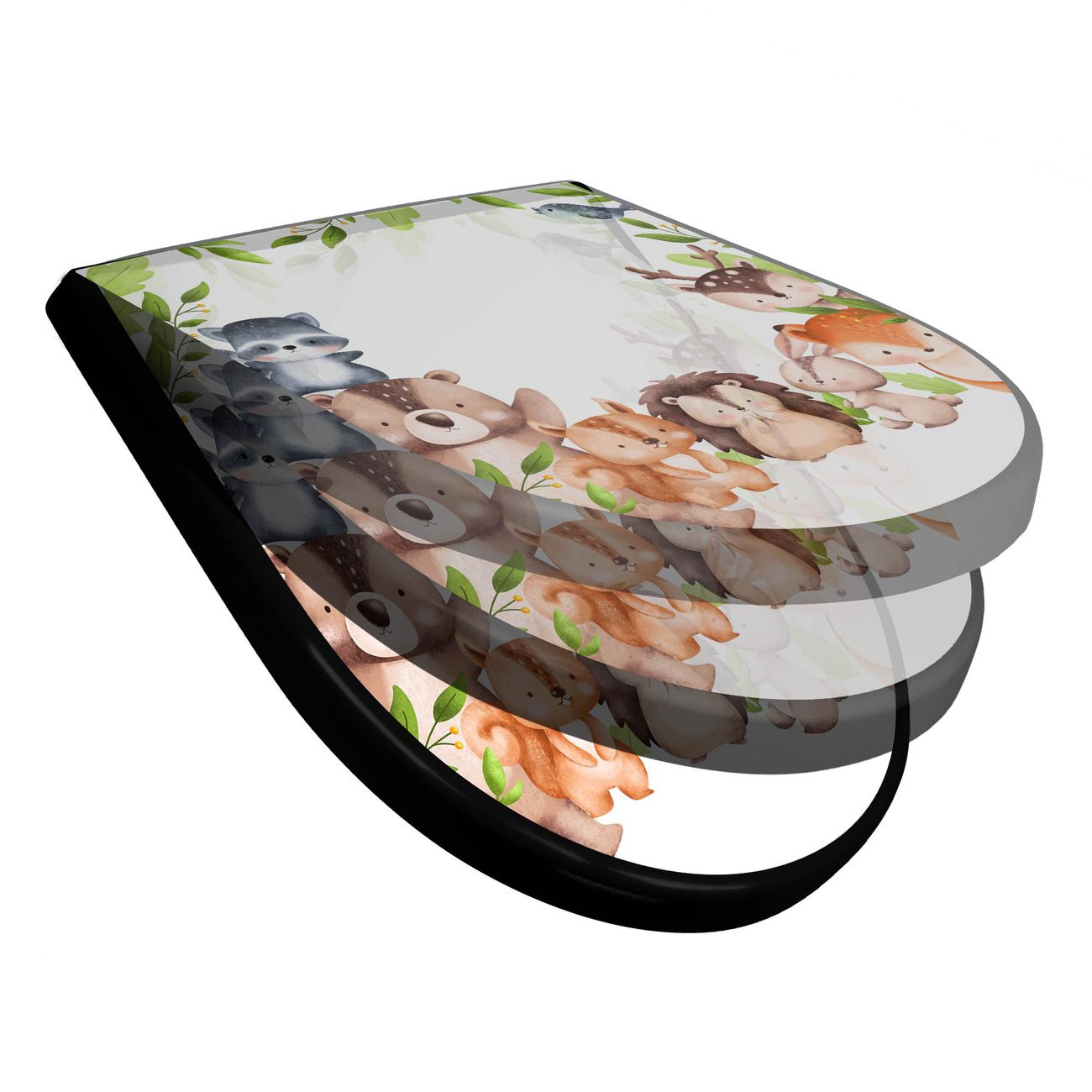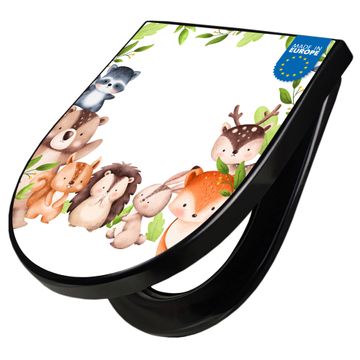 WC Sitz D-Form Schwarz mit Absenkautomatik Motiv Waldtier Freunde 2