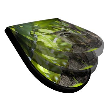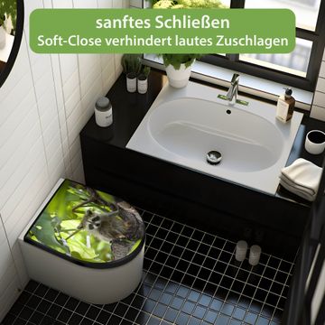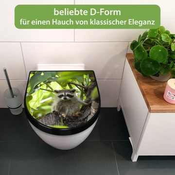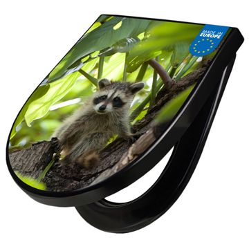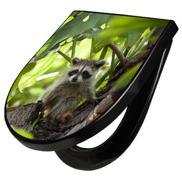 WC Sitz D-Form Schwarz mit Absenkautomatik Motiv Waschbär