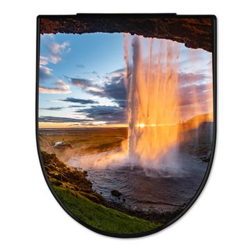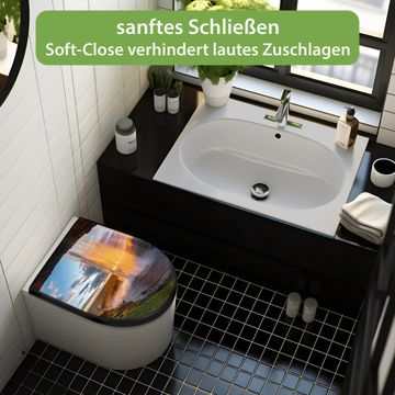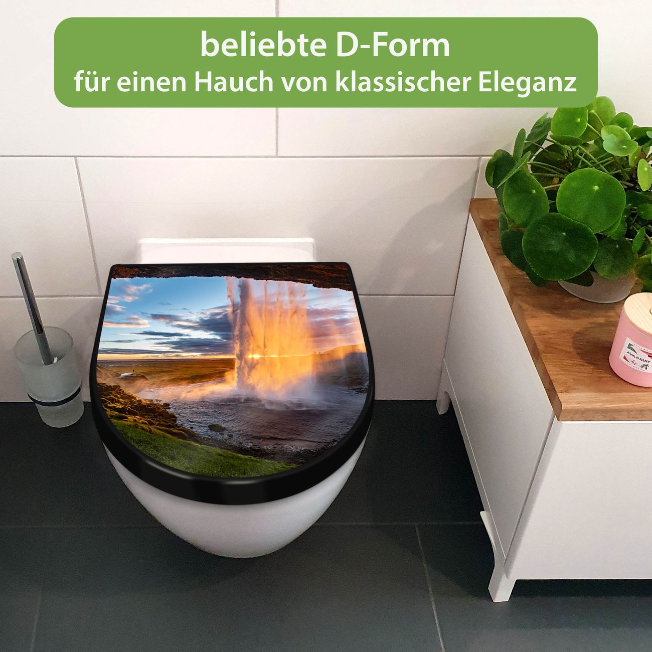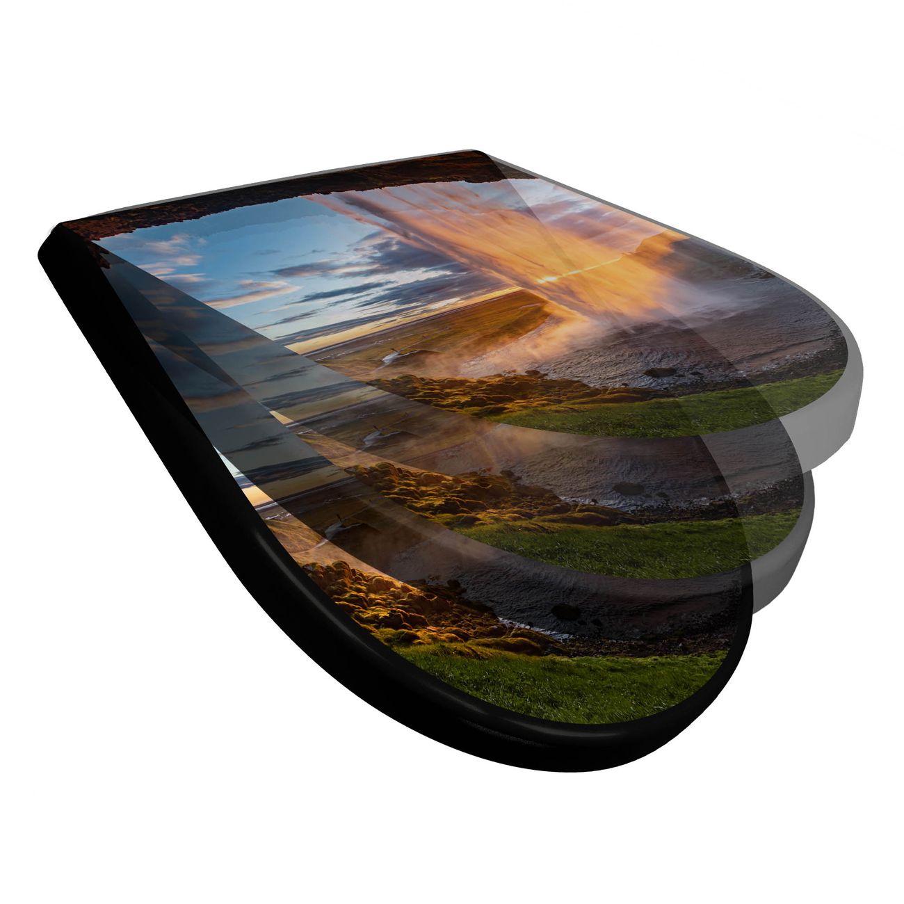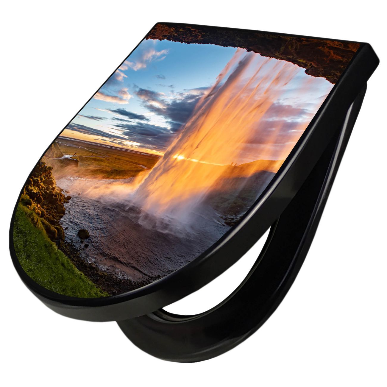 WC Sitz D-Form Schwarz mit Absenkautomatik Motiv Wasserfall im Sonnenlicht