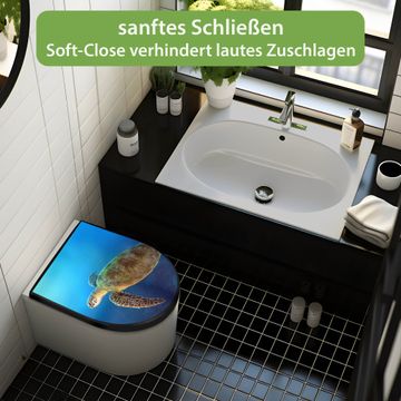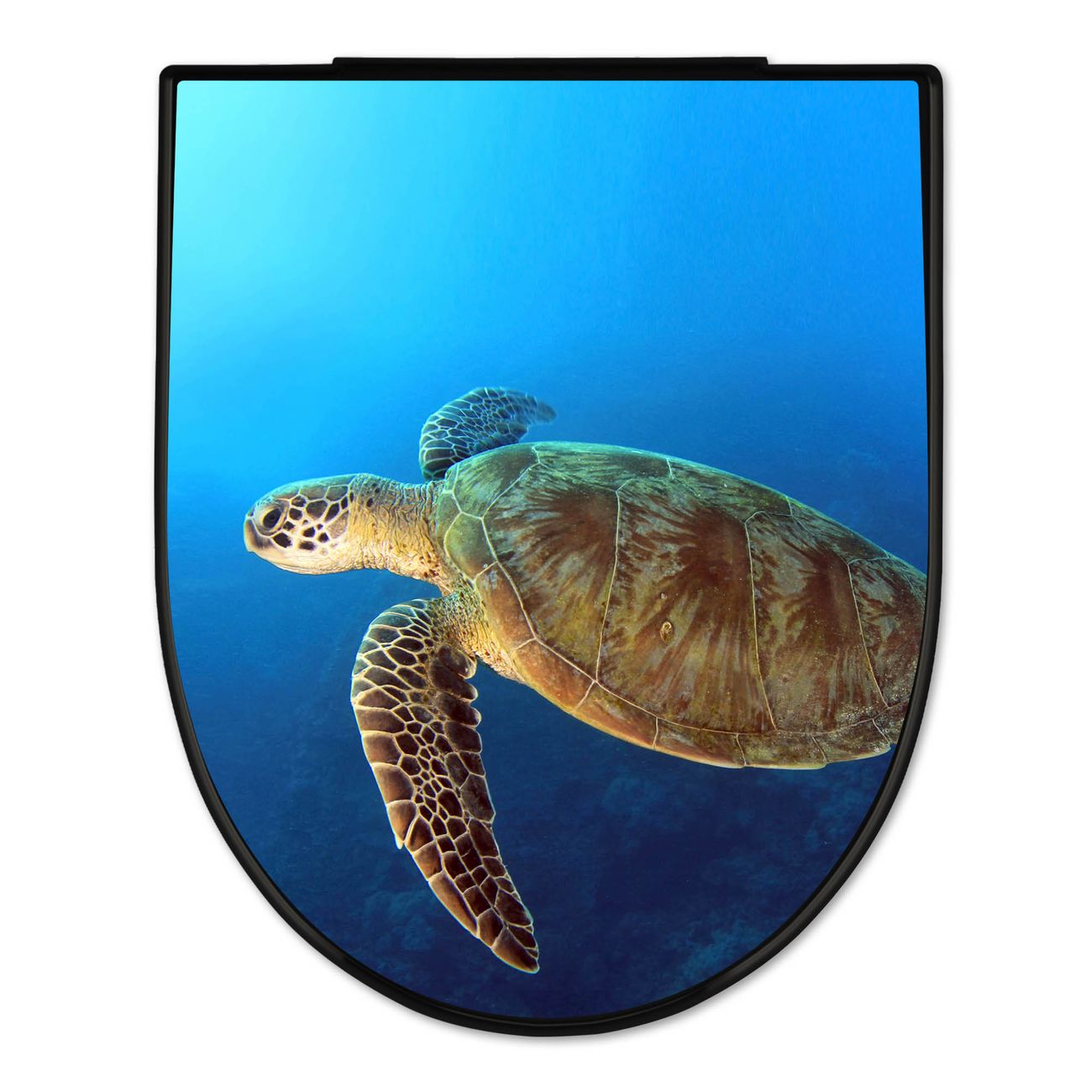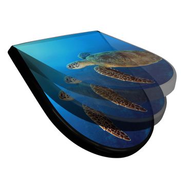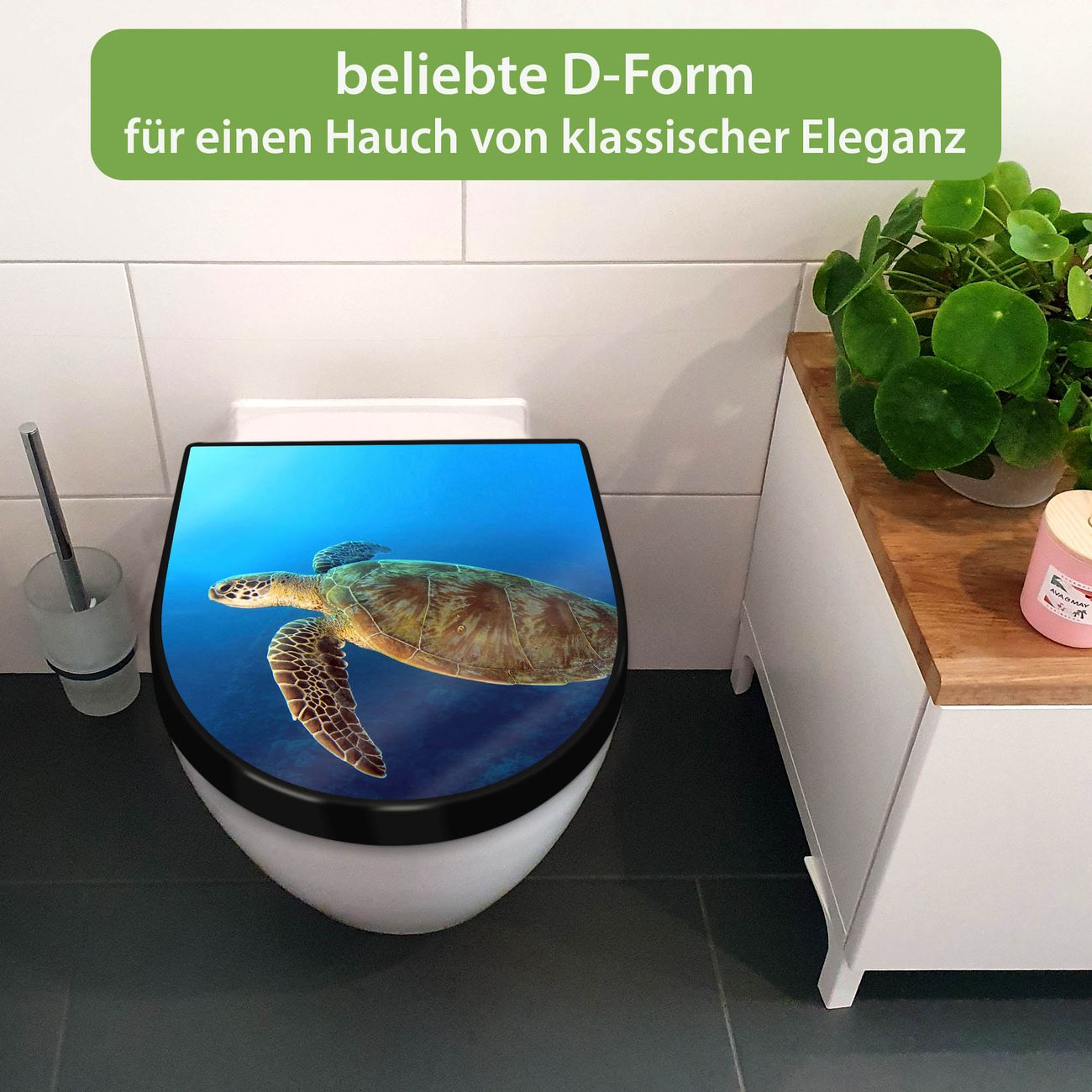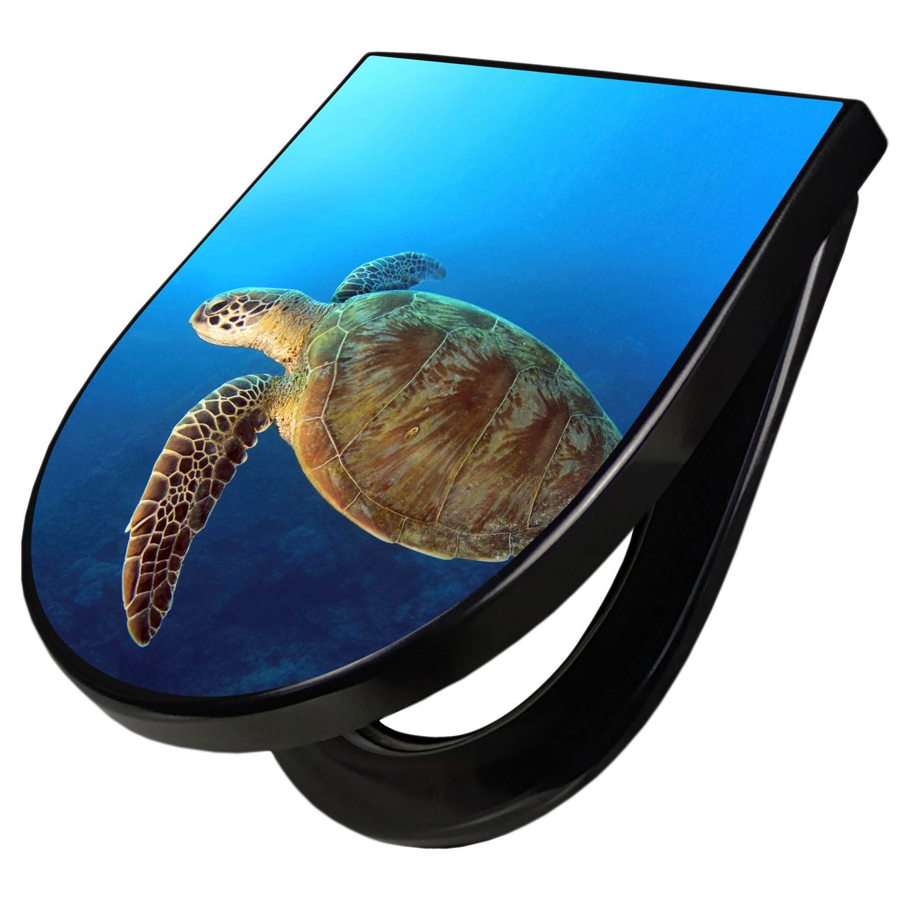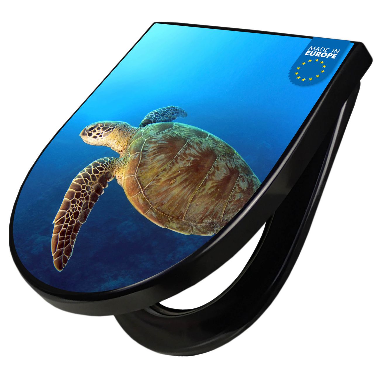 WC Sitz D-Form Schwarz mit Absenkautomatik Motiv Wasserschildkröte