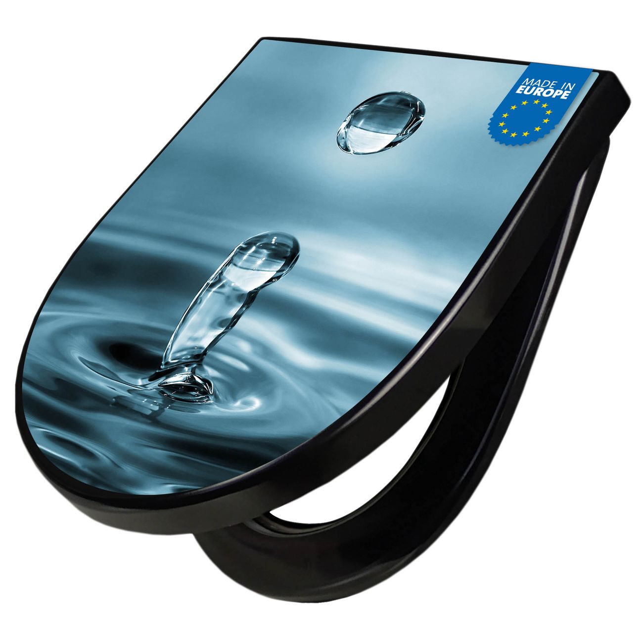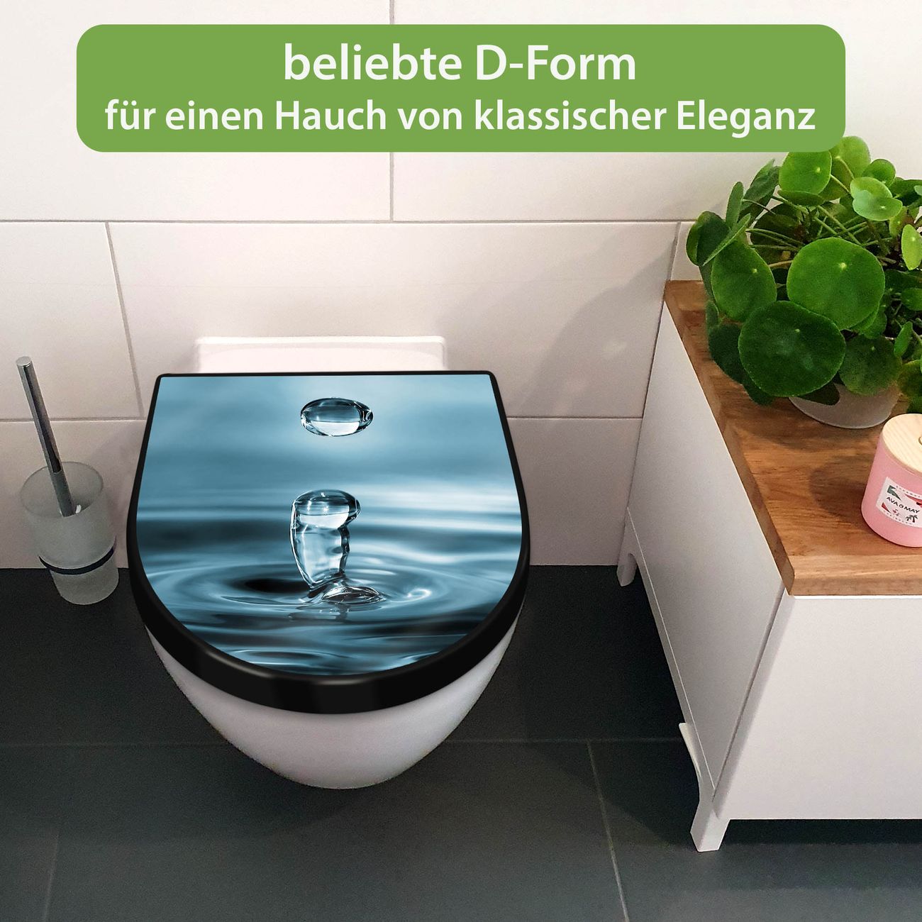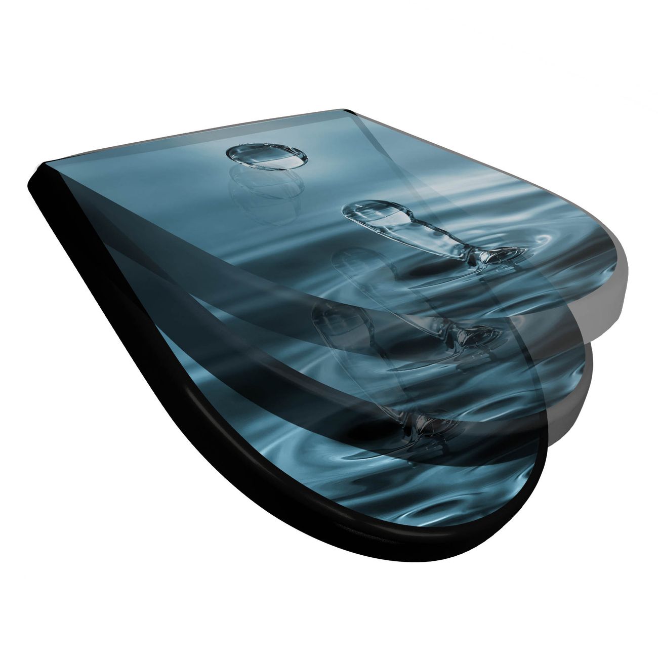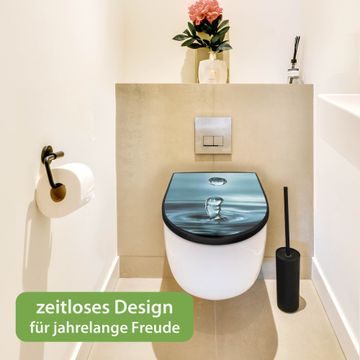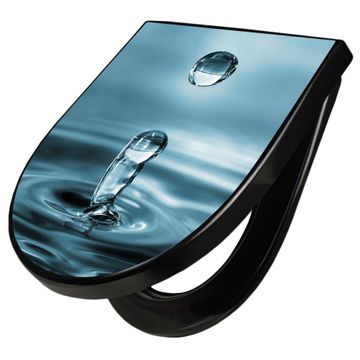 WC Sitz D-Form Schwarz mit Absenkautomatik Motiv Wassertropfen