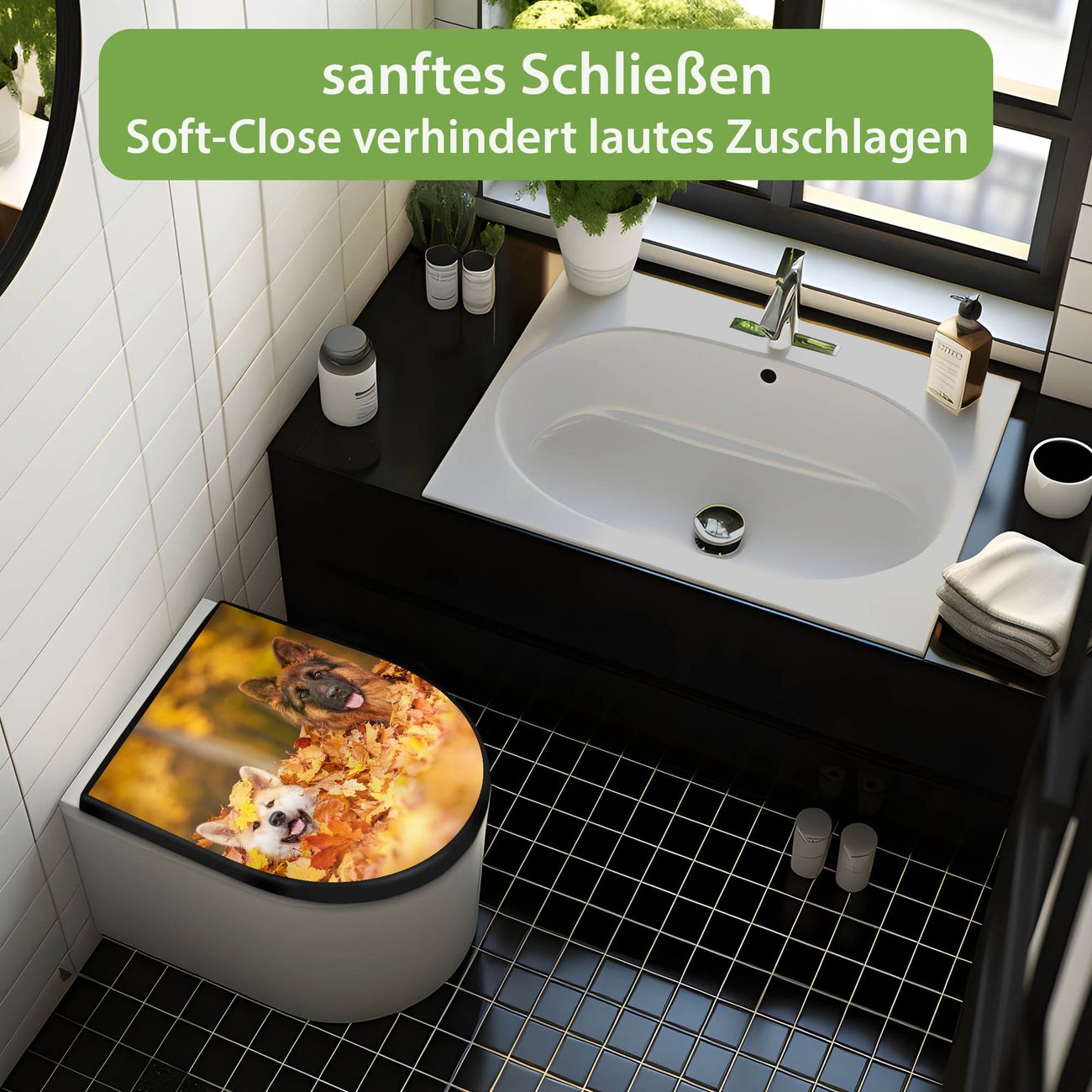 WC Sitz D-Form Schwarz mit Absenkautomatik Motiv Wayne und Wanda