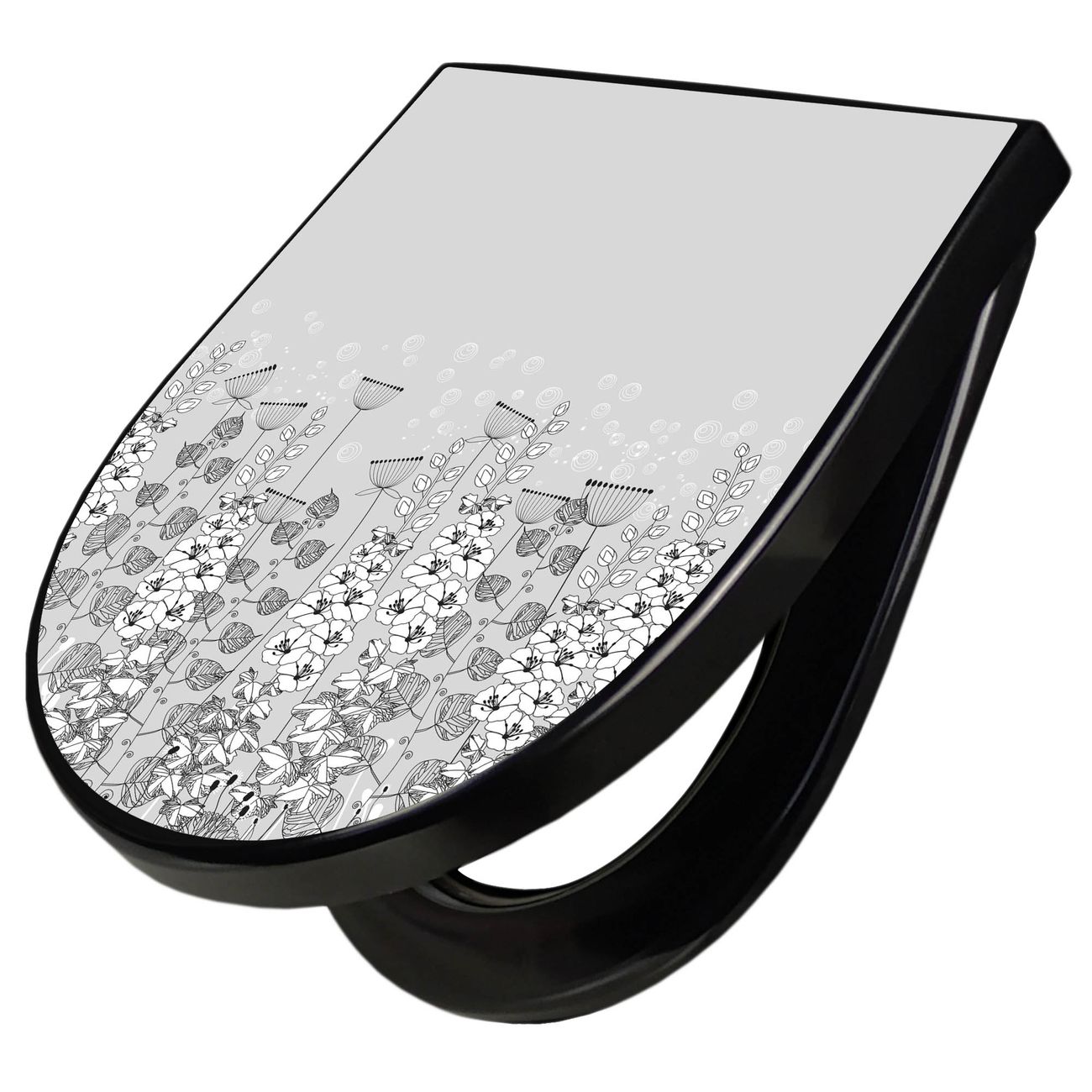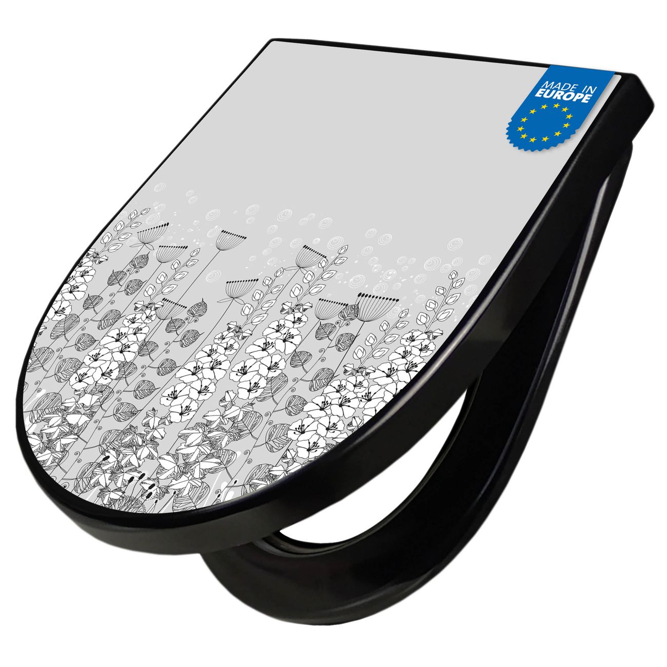 WC Sitz D-Form Schwarz mit Absenkautomatik Motiv Wegesrand