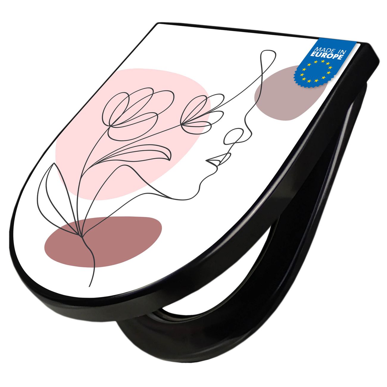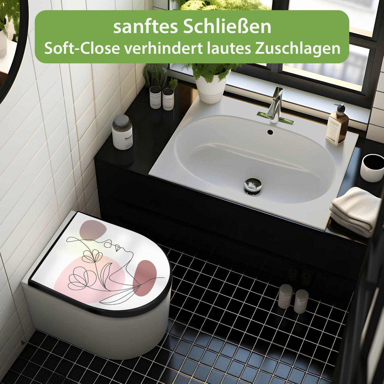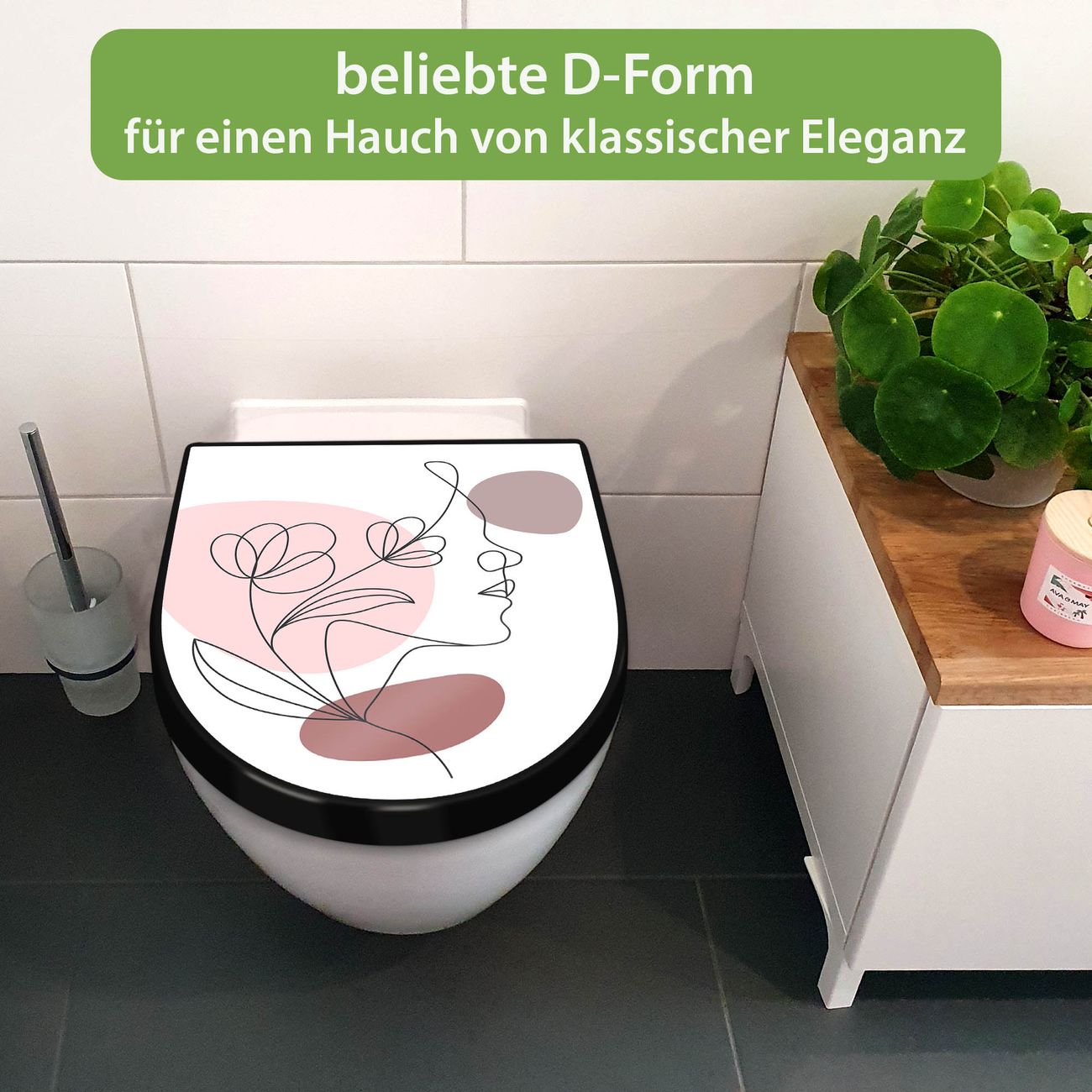 WC Sitz D-Form Schwarz mit Absenkautomatik Motiv Weibliche Lineart