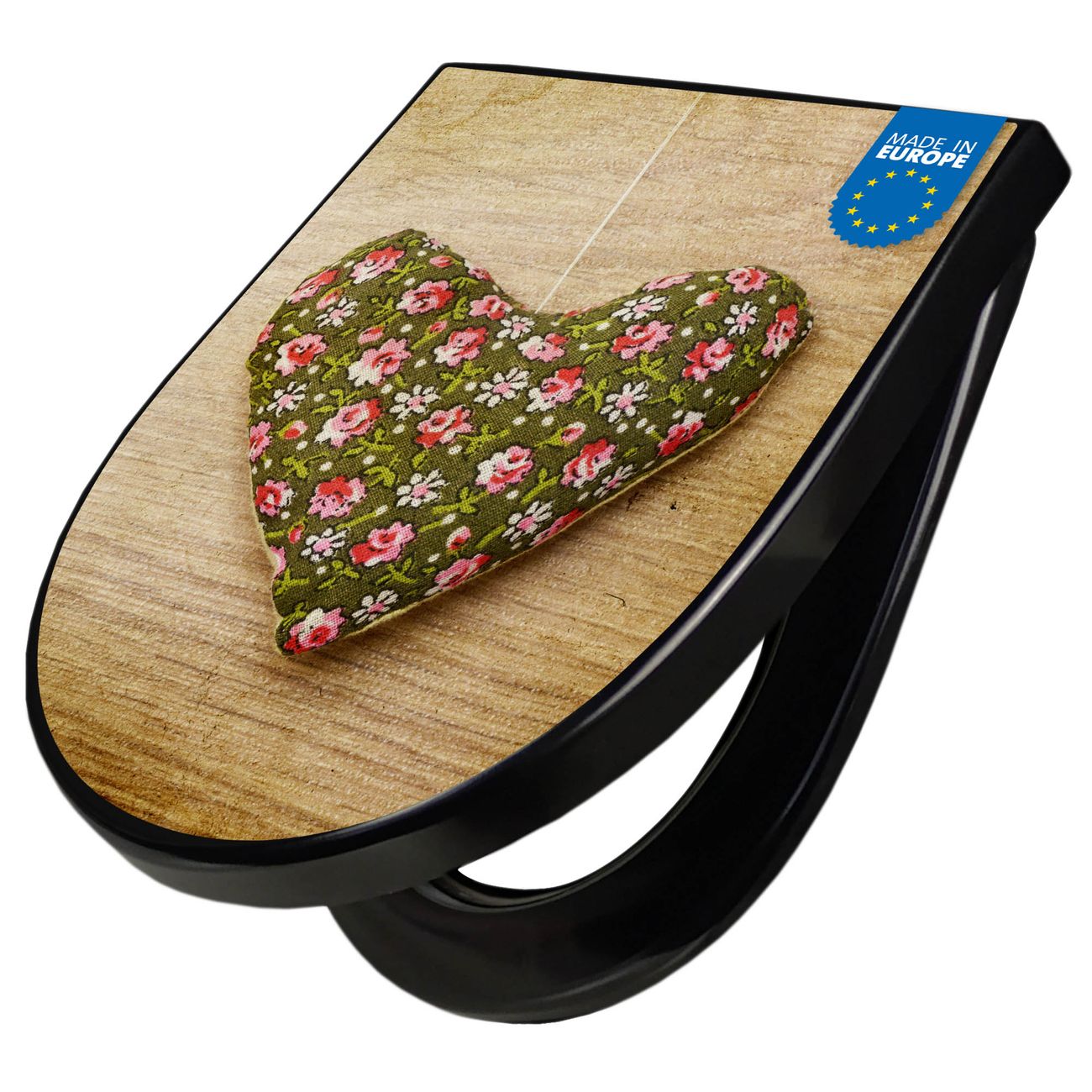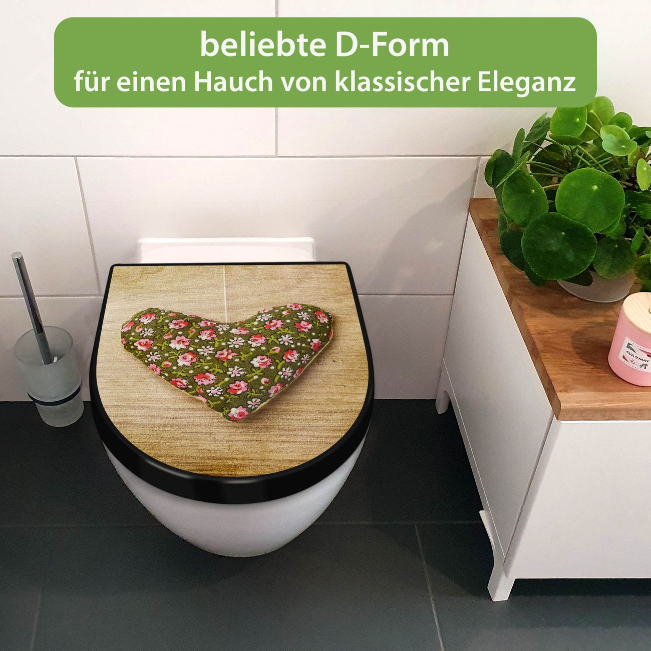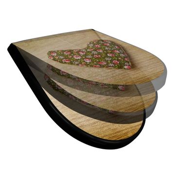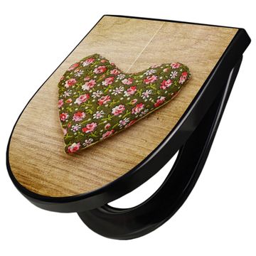 WC Sitz D-Form Schwarz mit Absenkautomatik Motiv Weiches Herz