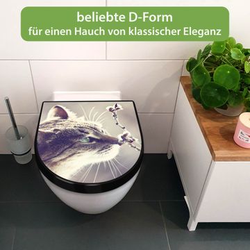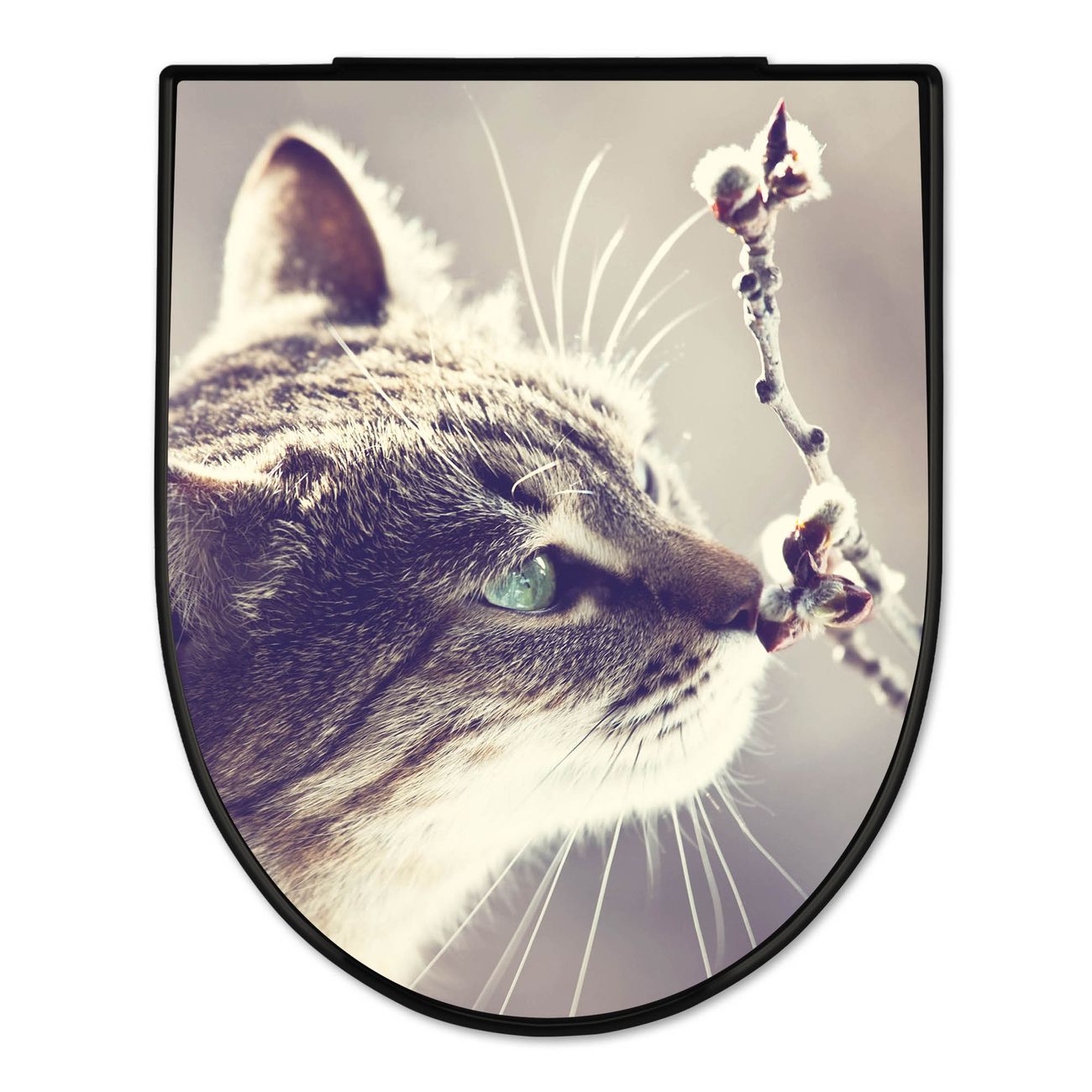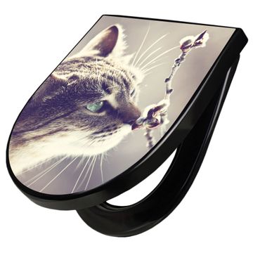 WC Sitz D-Form Schwarz mit Absenkautomatik Motiv Weidenkätzchen