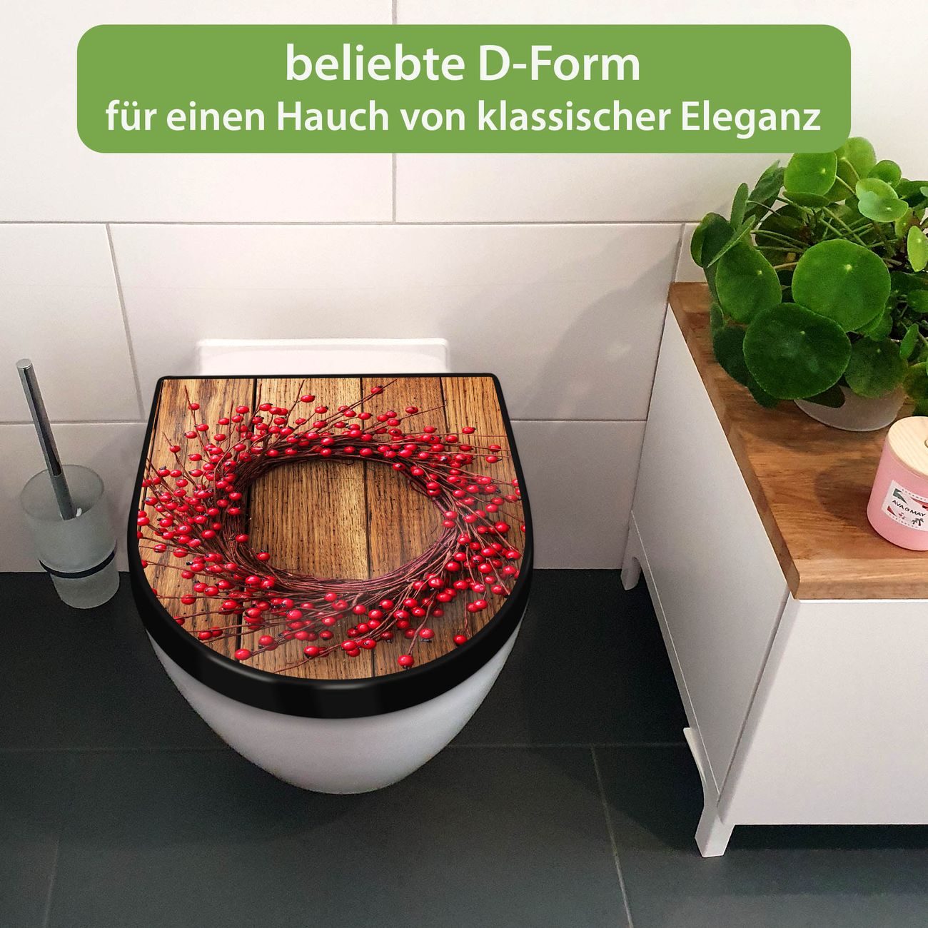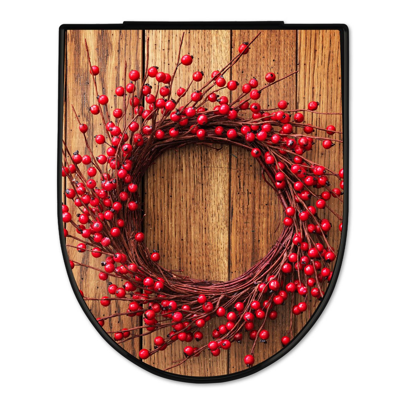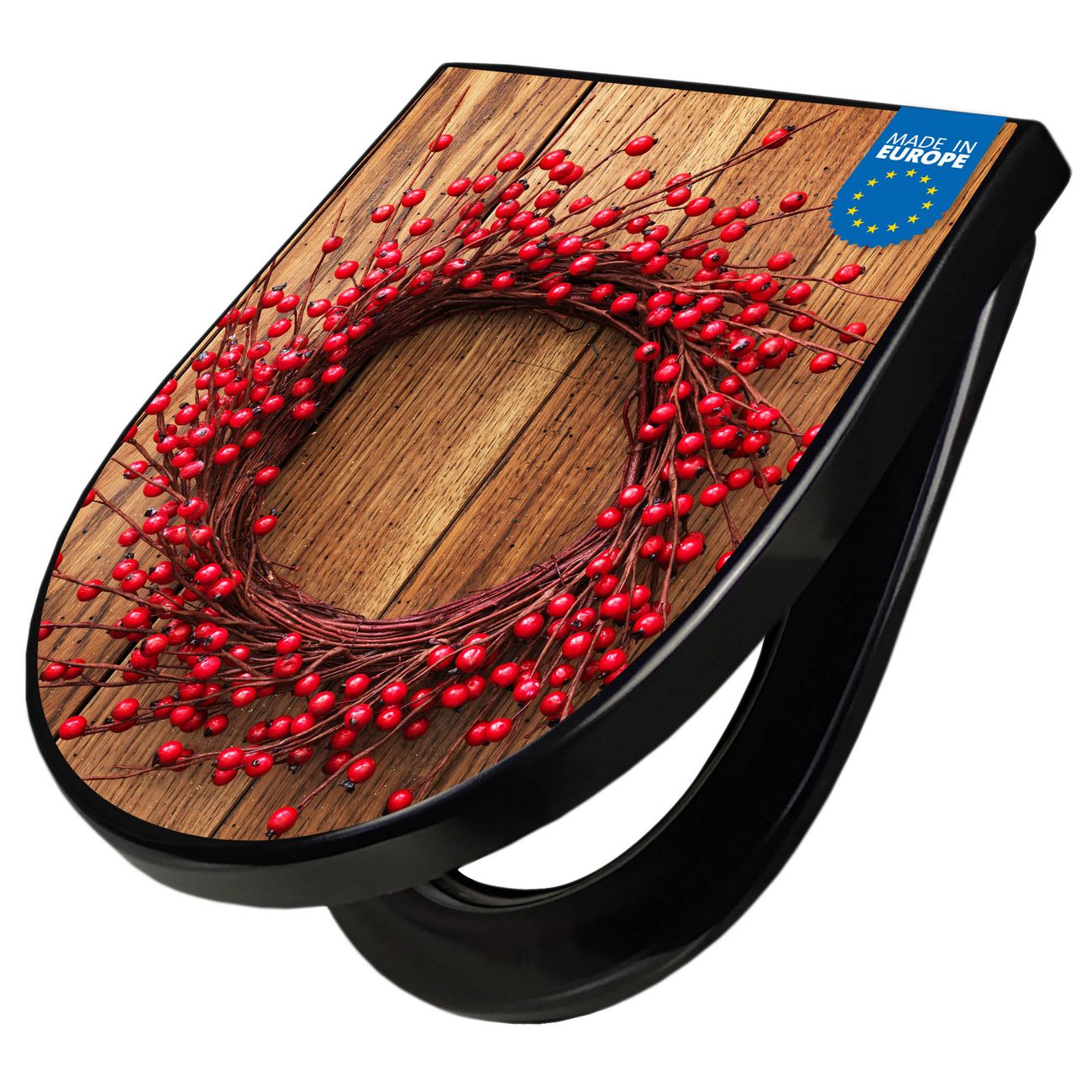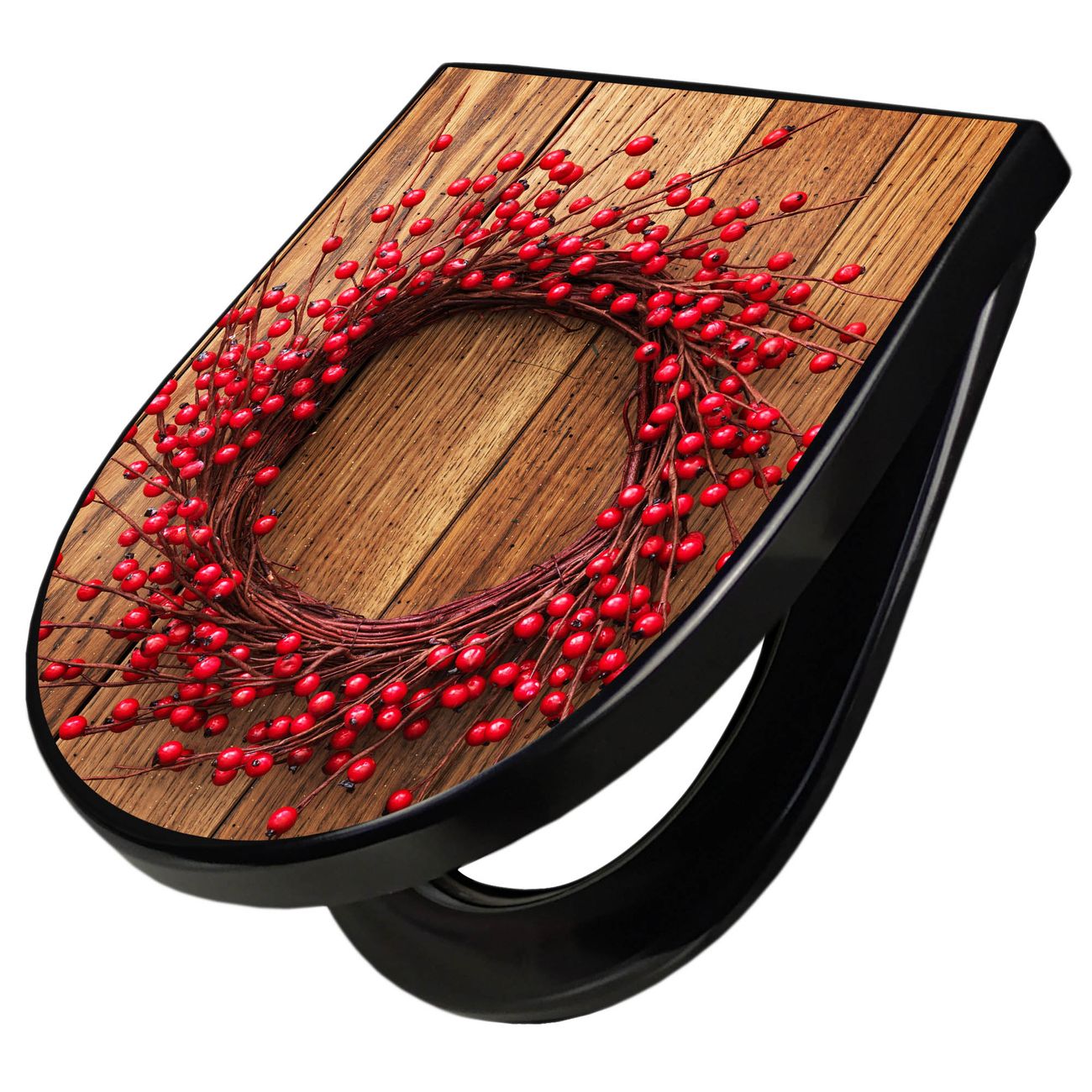 WC Sitz D-Form Schwarz mit Absenkautomatik Motiv Weihnachtskranz