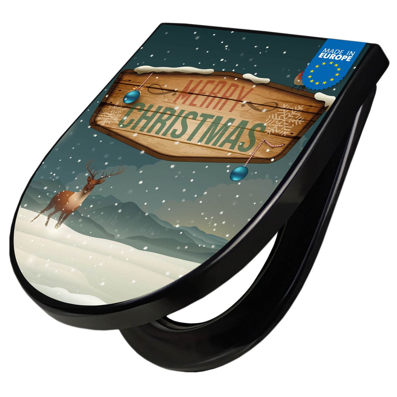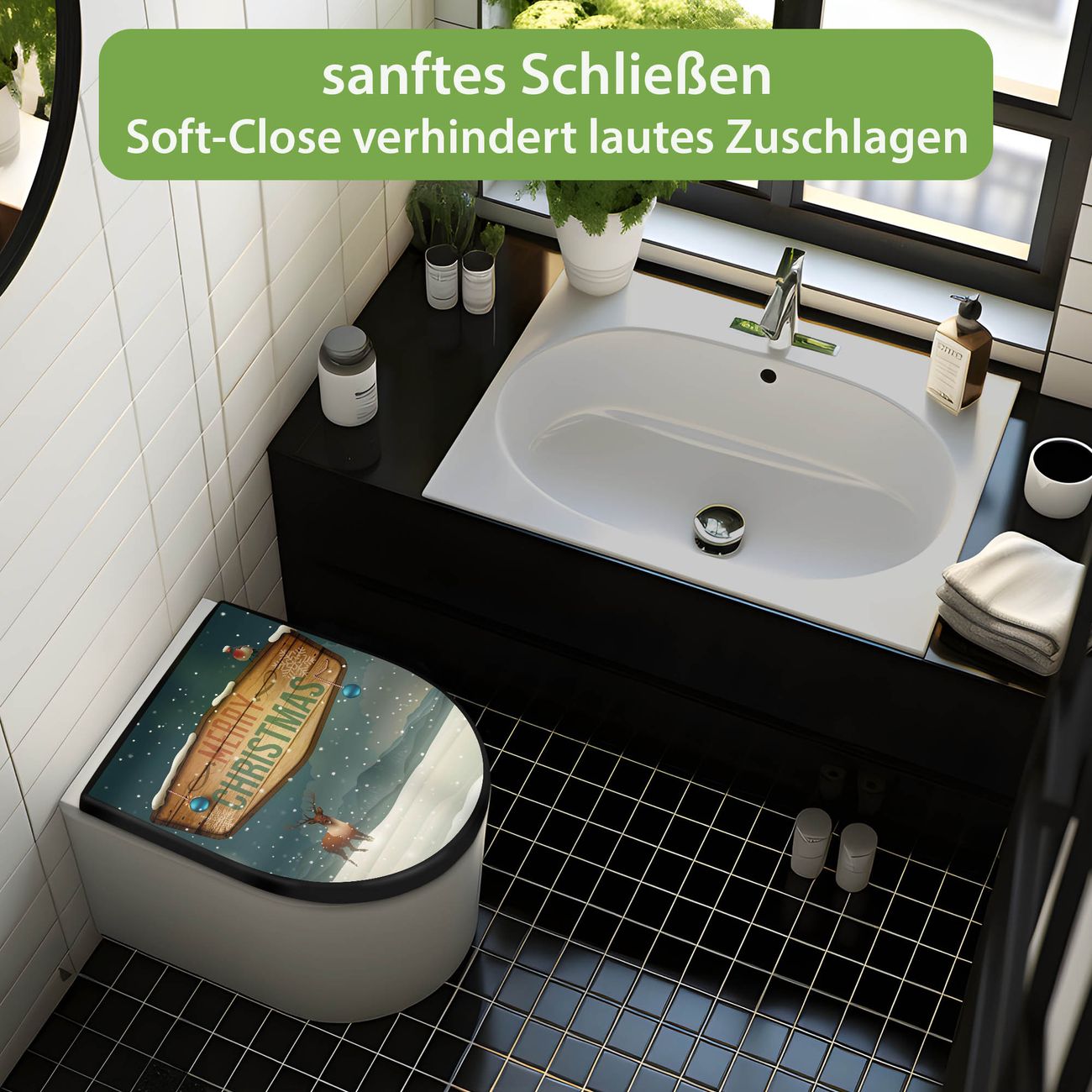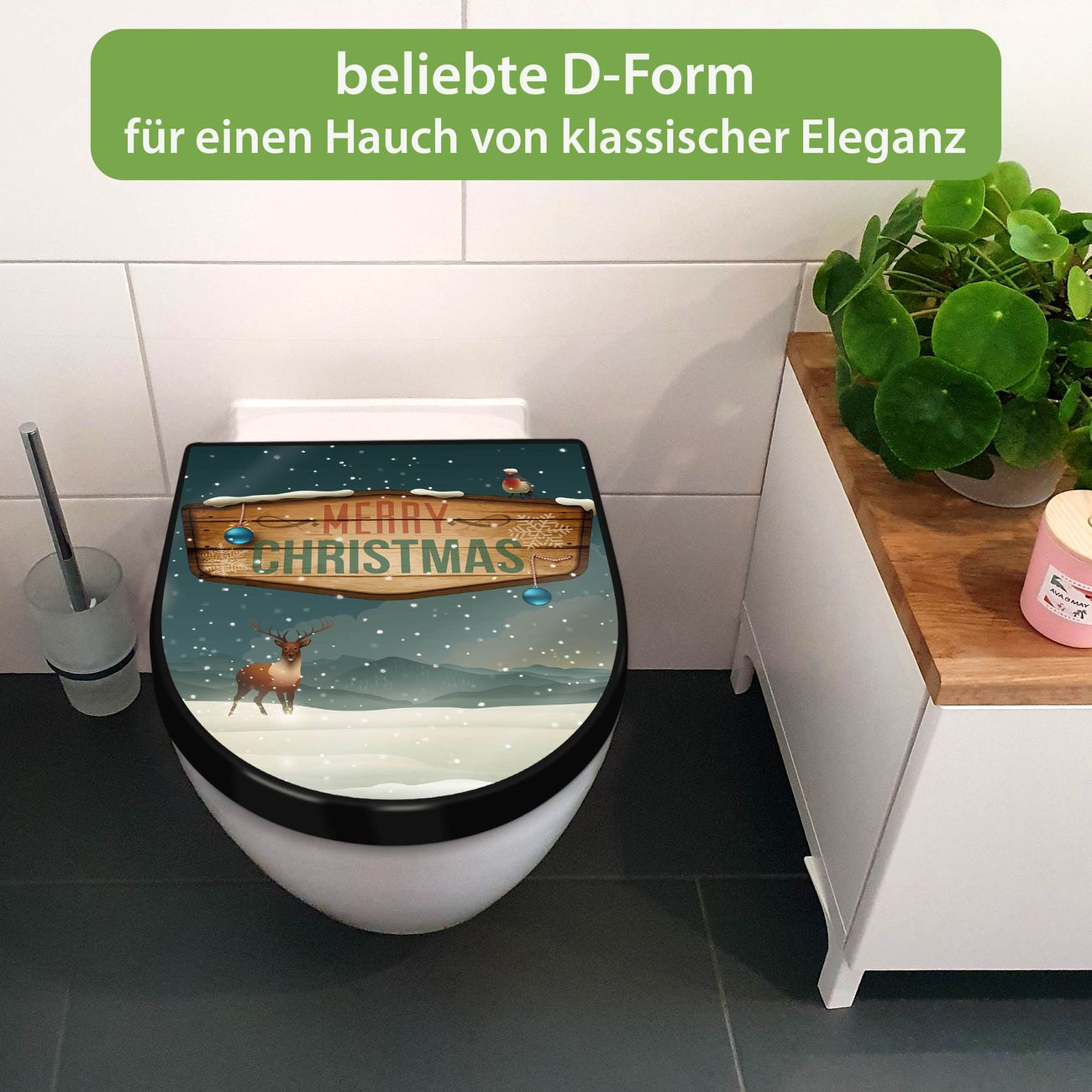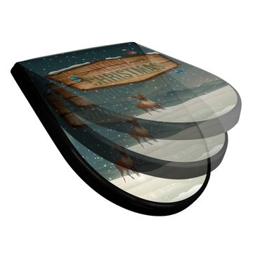 WC Sitz D-Form Schwarz mit Absenkautomatik Motiv Weihnachtsland