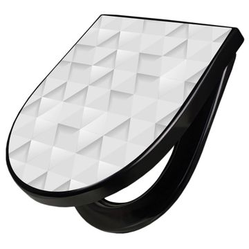 WC Sitz D-Form Schwarz mit Absenkautomatik Motiv Weisse Dreiecke