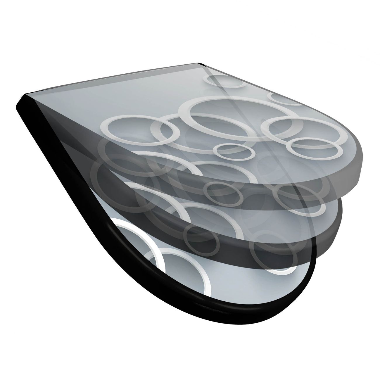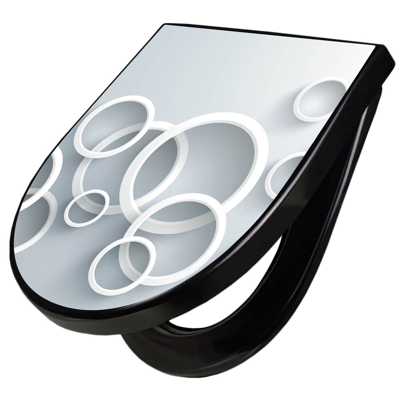 WC Sitz D-Form Schwarz mit Absenkautomatik Motiv Weiße Ringe