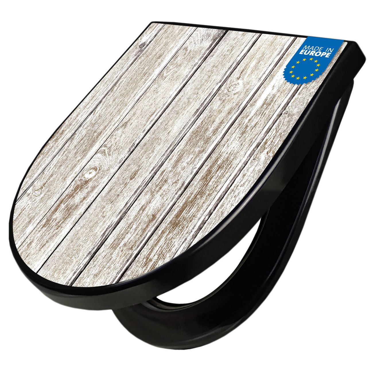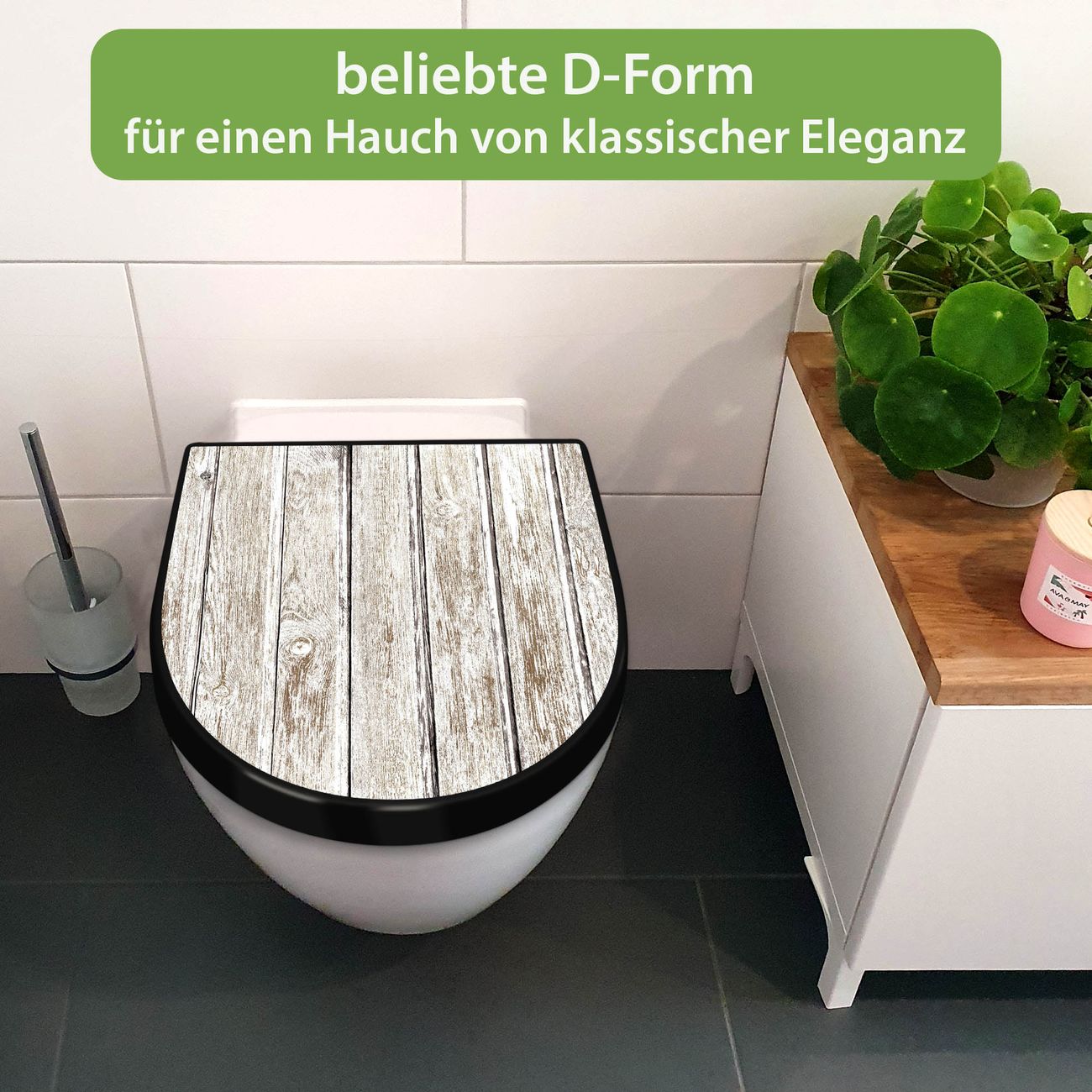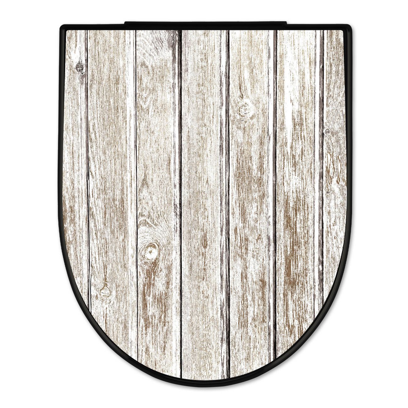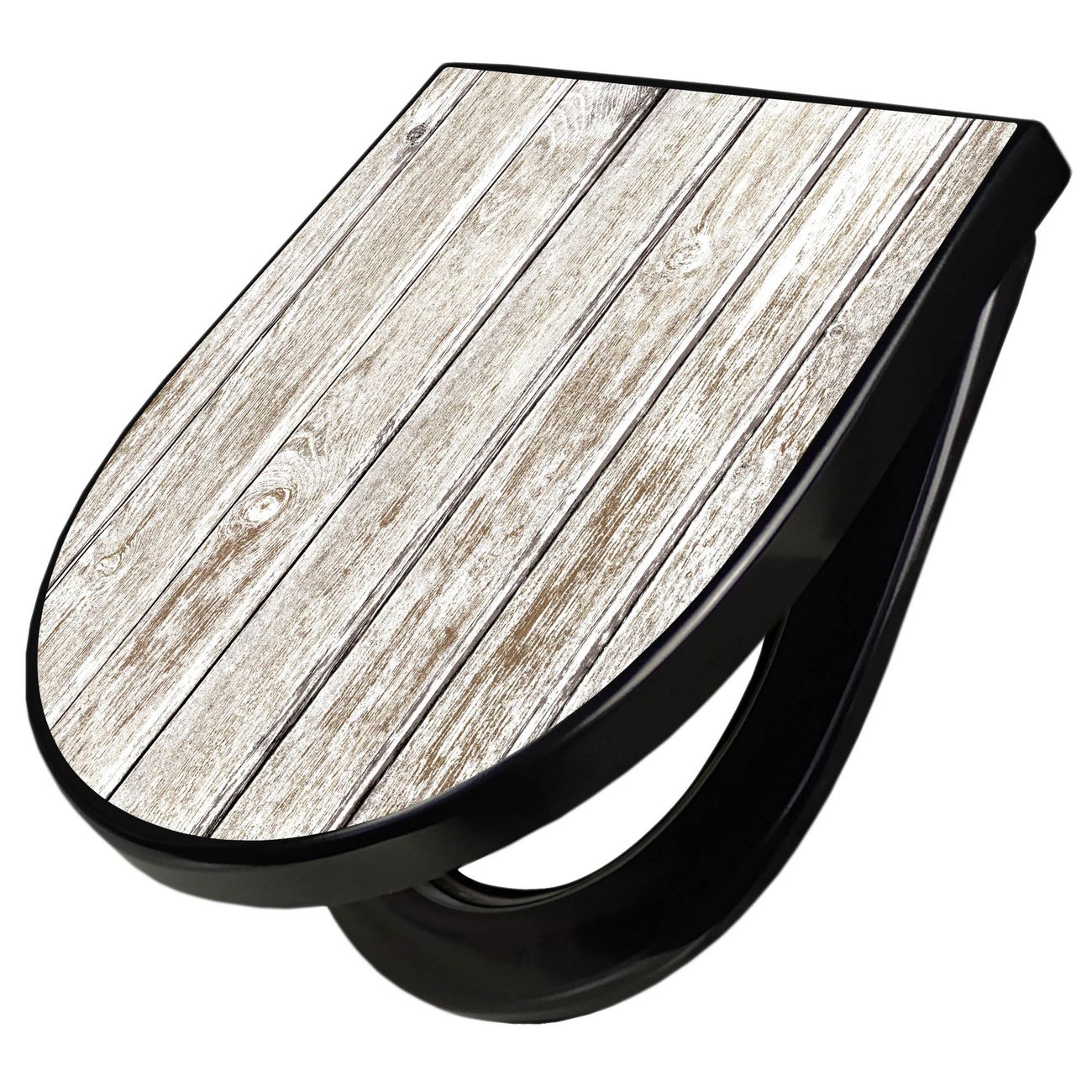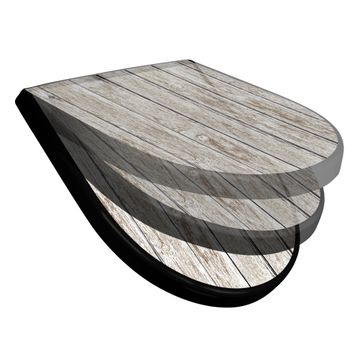 WC Sitz D-Form Schwarz mit Absenkautomatik Motiv Weißes Holz