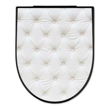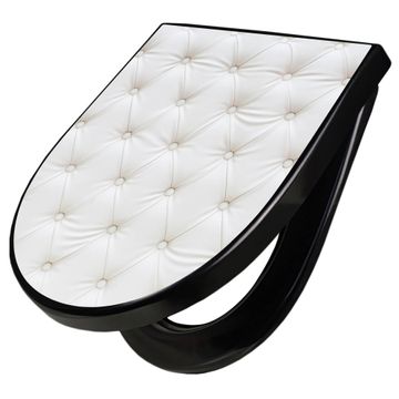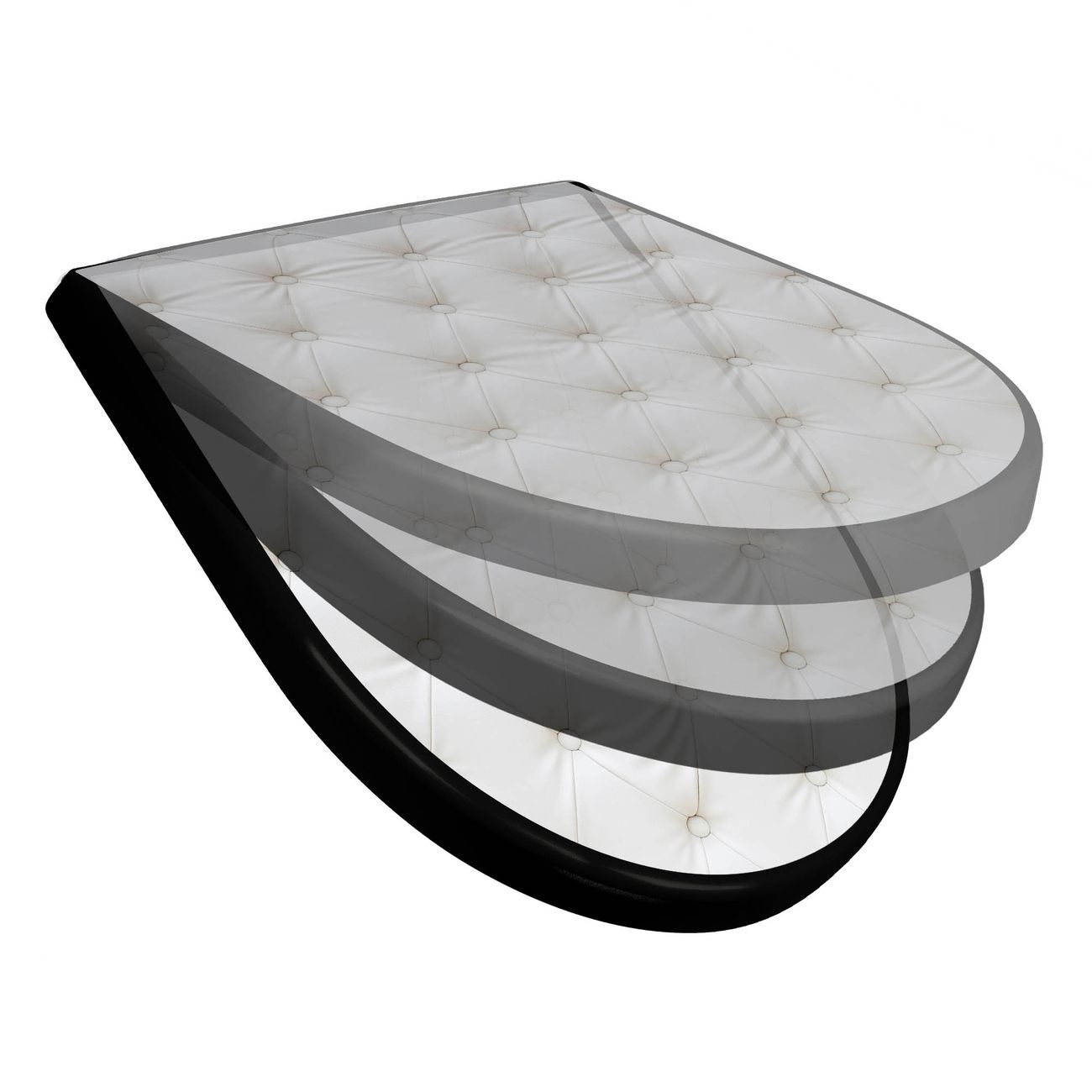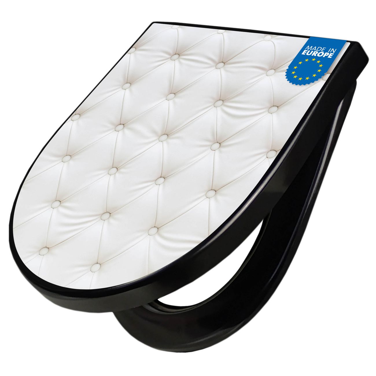 WC Sitz D-Form Schwarz mit Absenkautomatik Motiv Weißes Polster