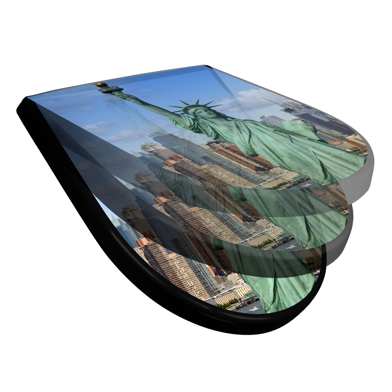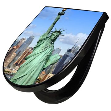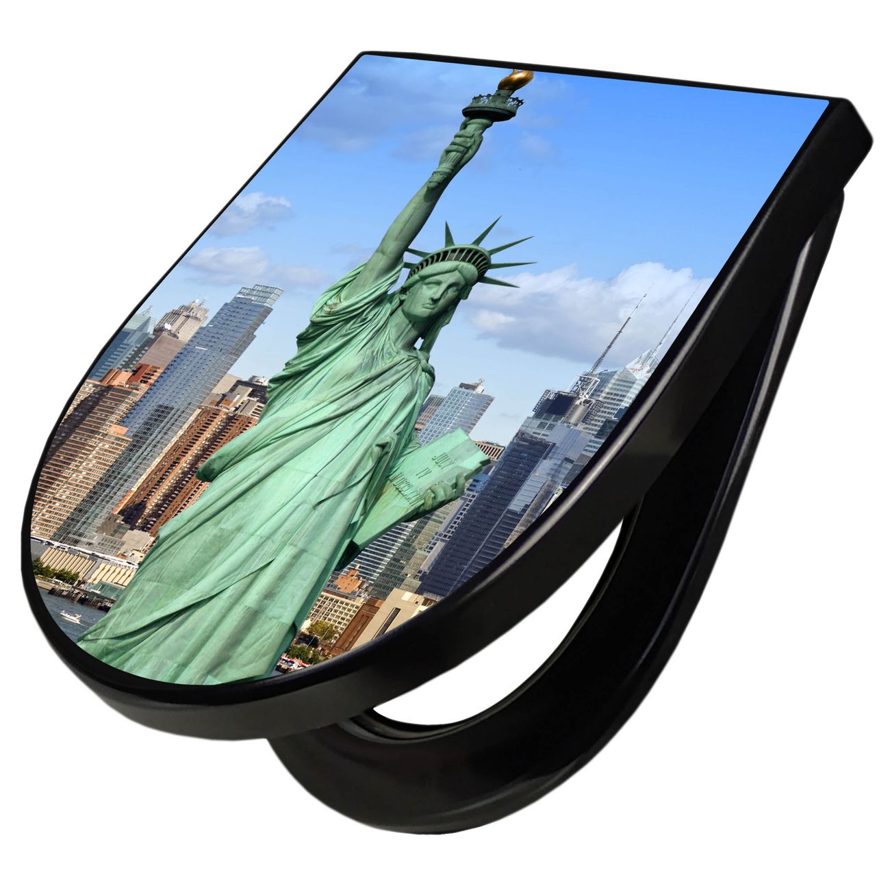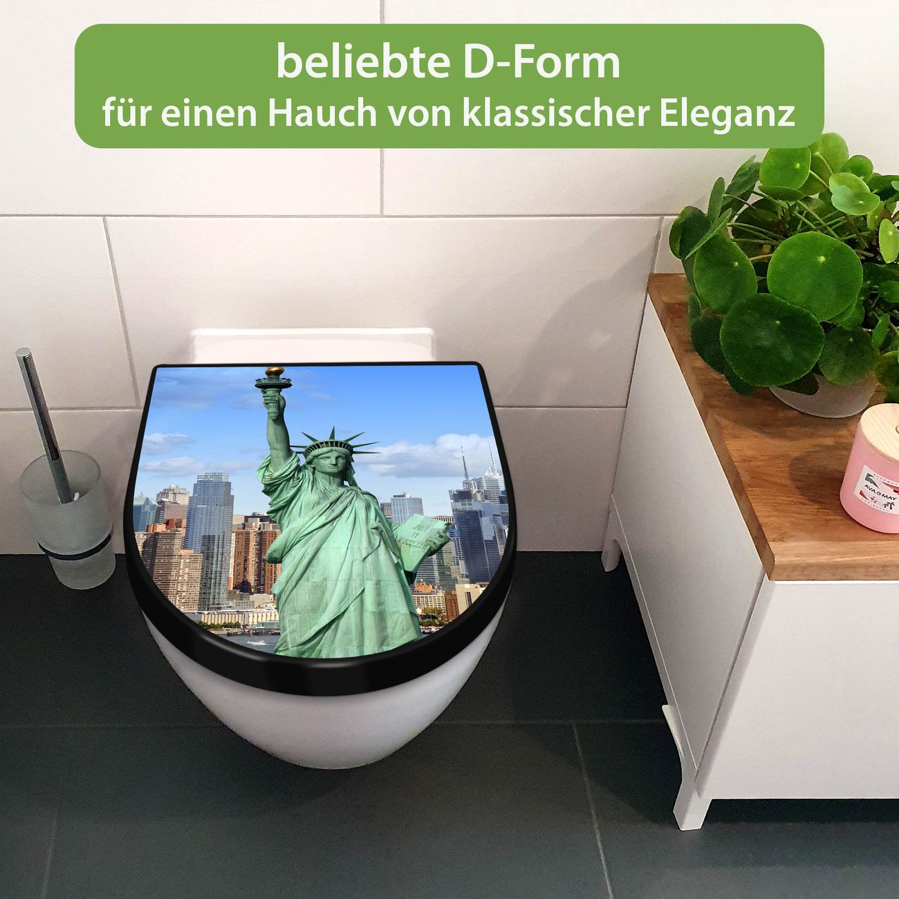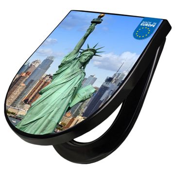 WC Sitz D-Form Schwarz mit Absenkautomatik Motiv Welcome To NY