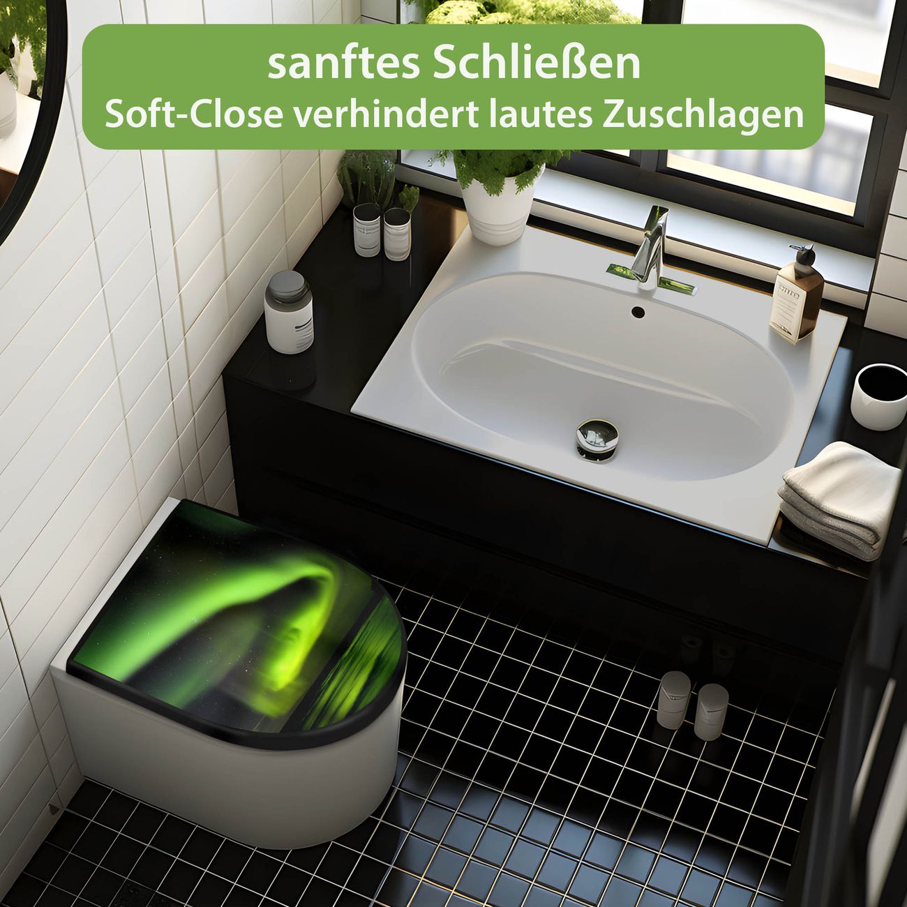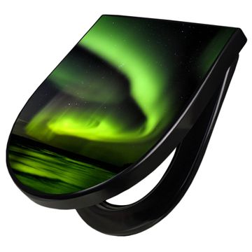WC Sitz D-Form Schwarz mit Absenkautomatik Motiv Wetterleuchten
