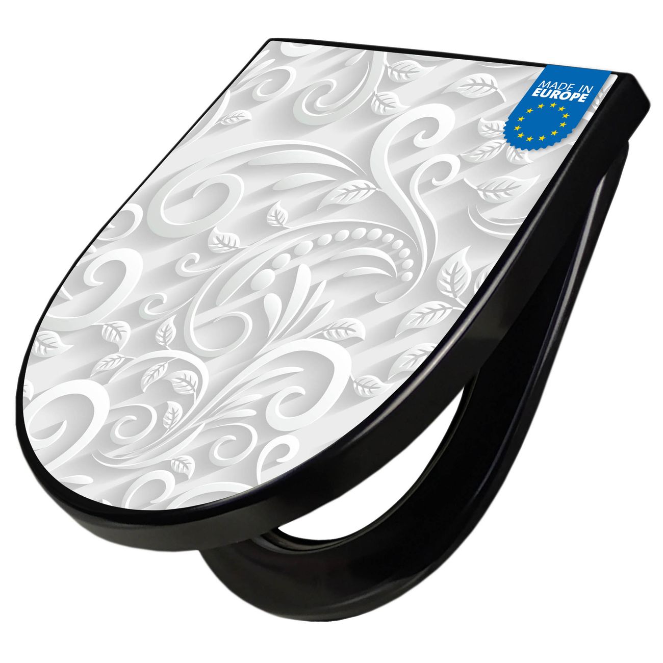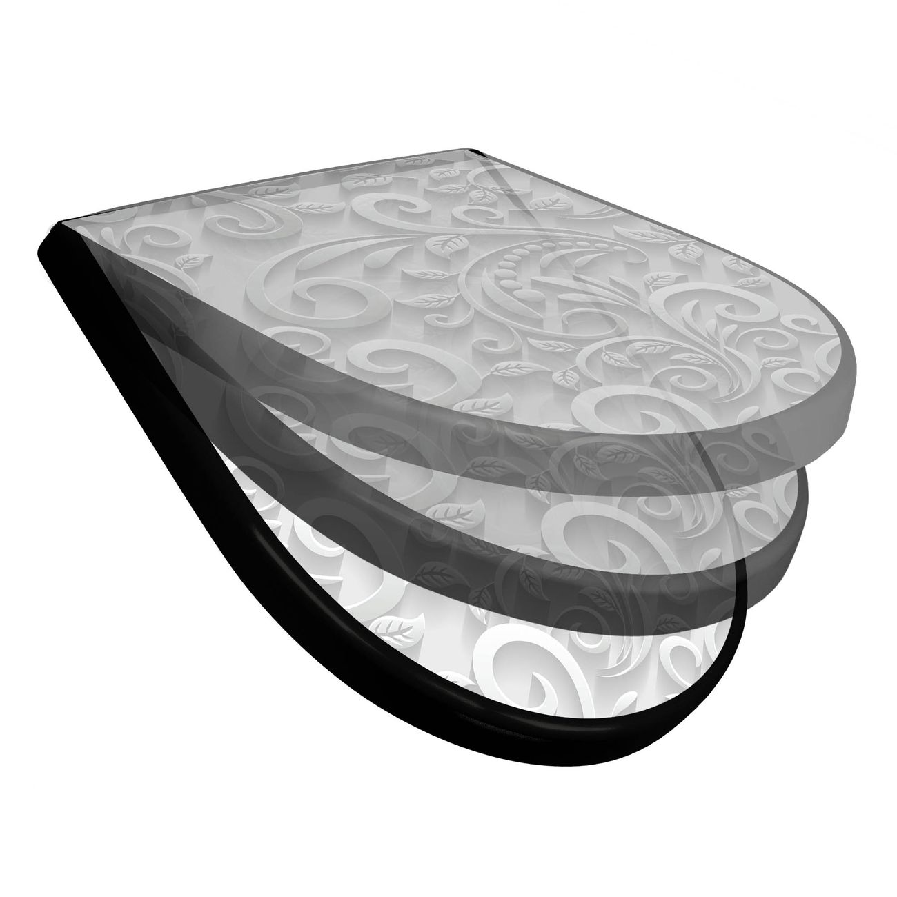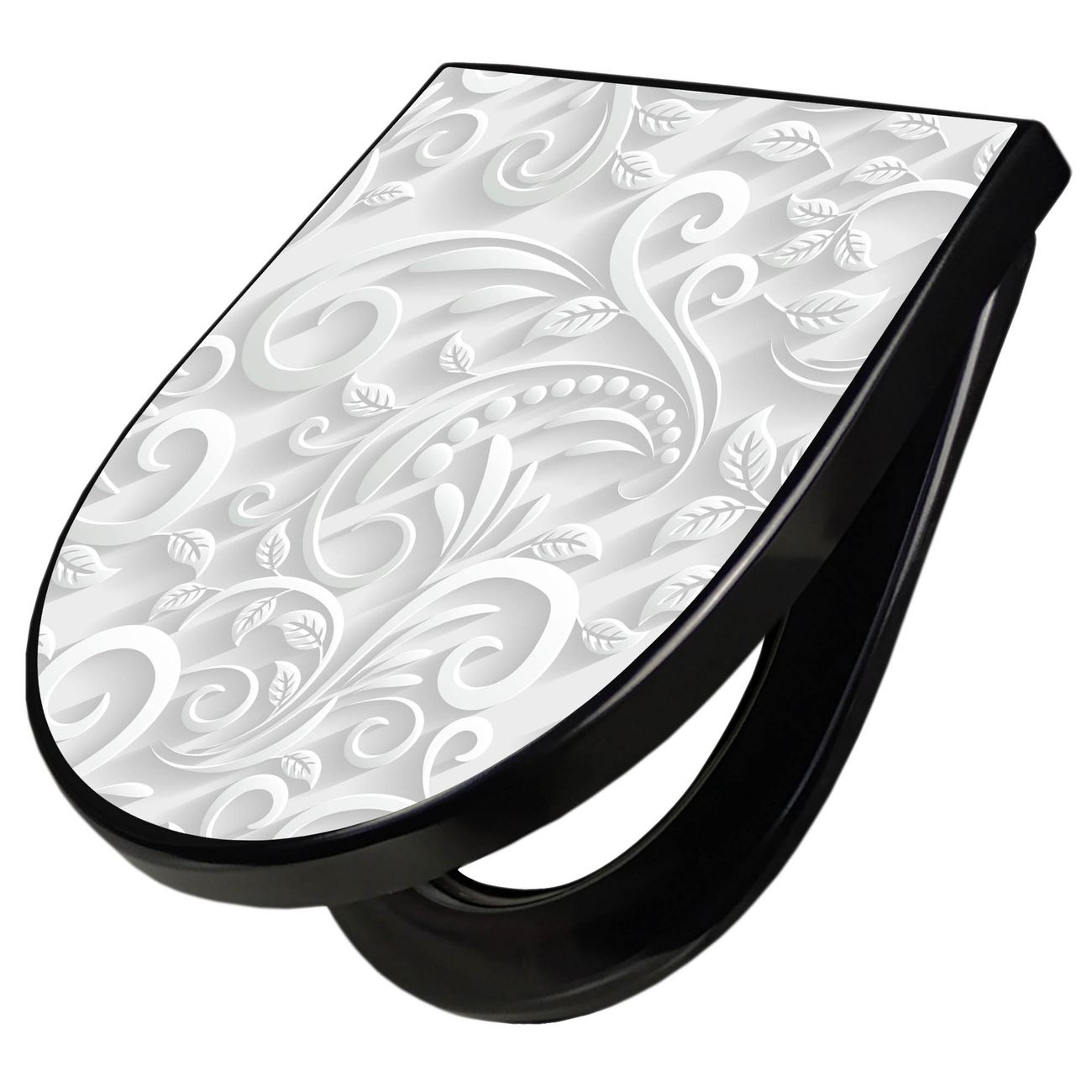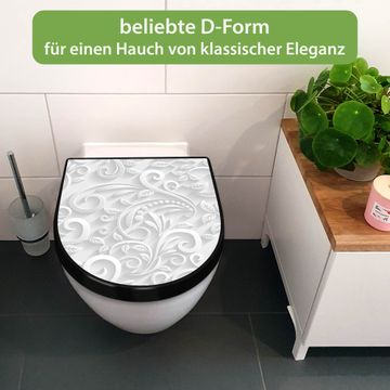 WC Sitz D-Form Schwarz mit Absenkautomatik Motiv White Swirl