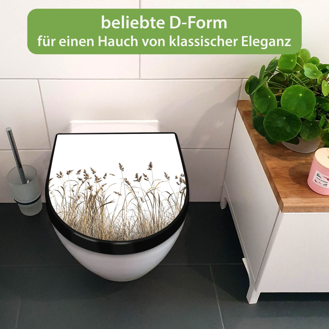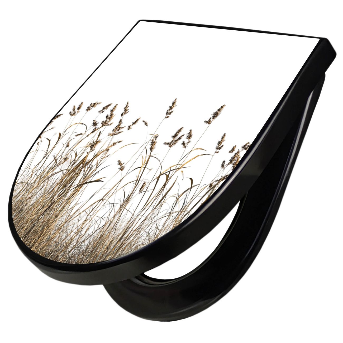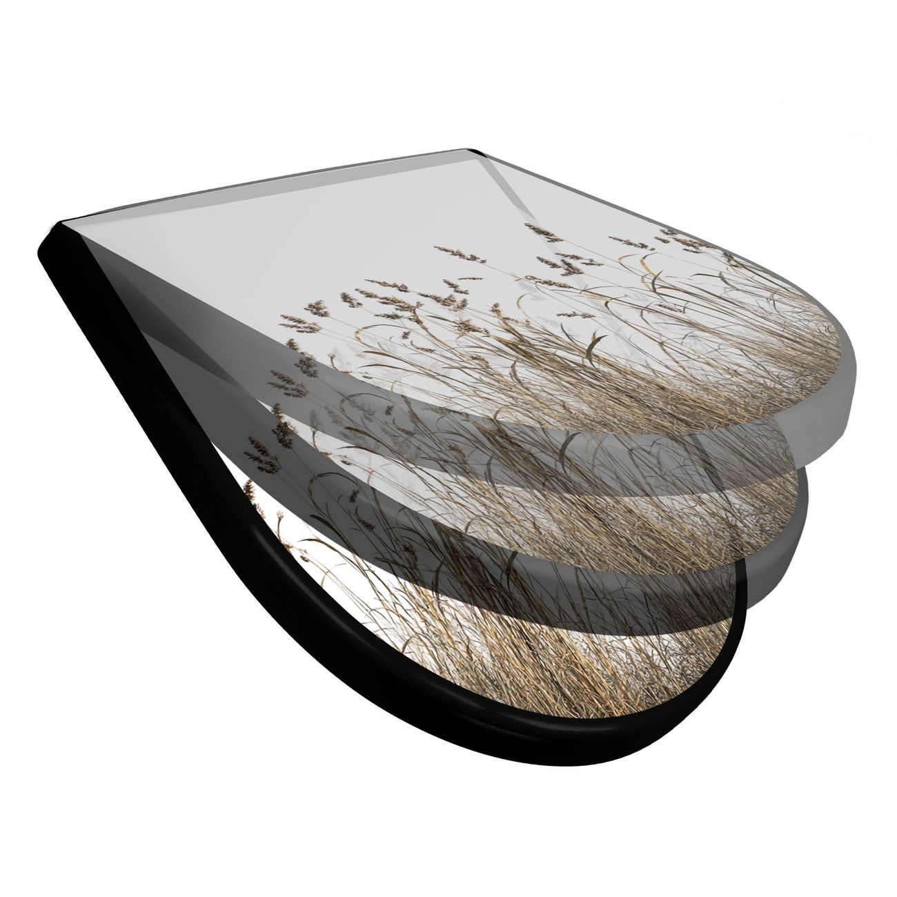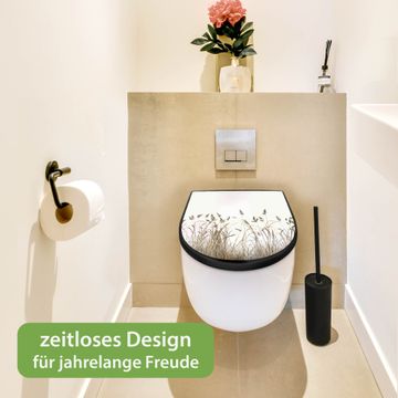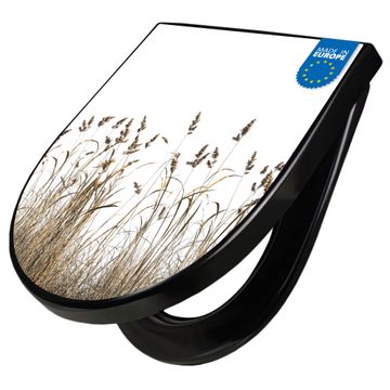 WC Sitz D-Form Schwarz mit Absenkautomatik Motiv Wilde Gräser