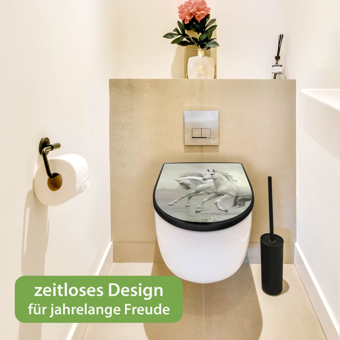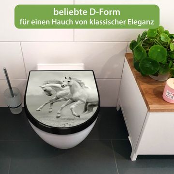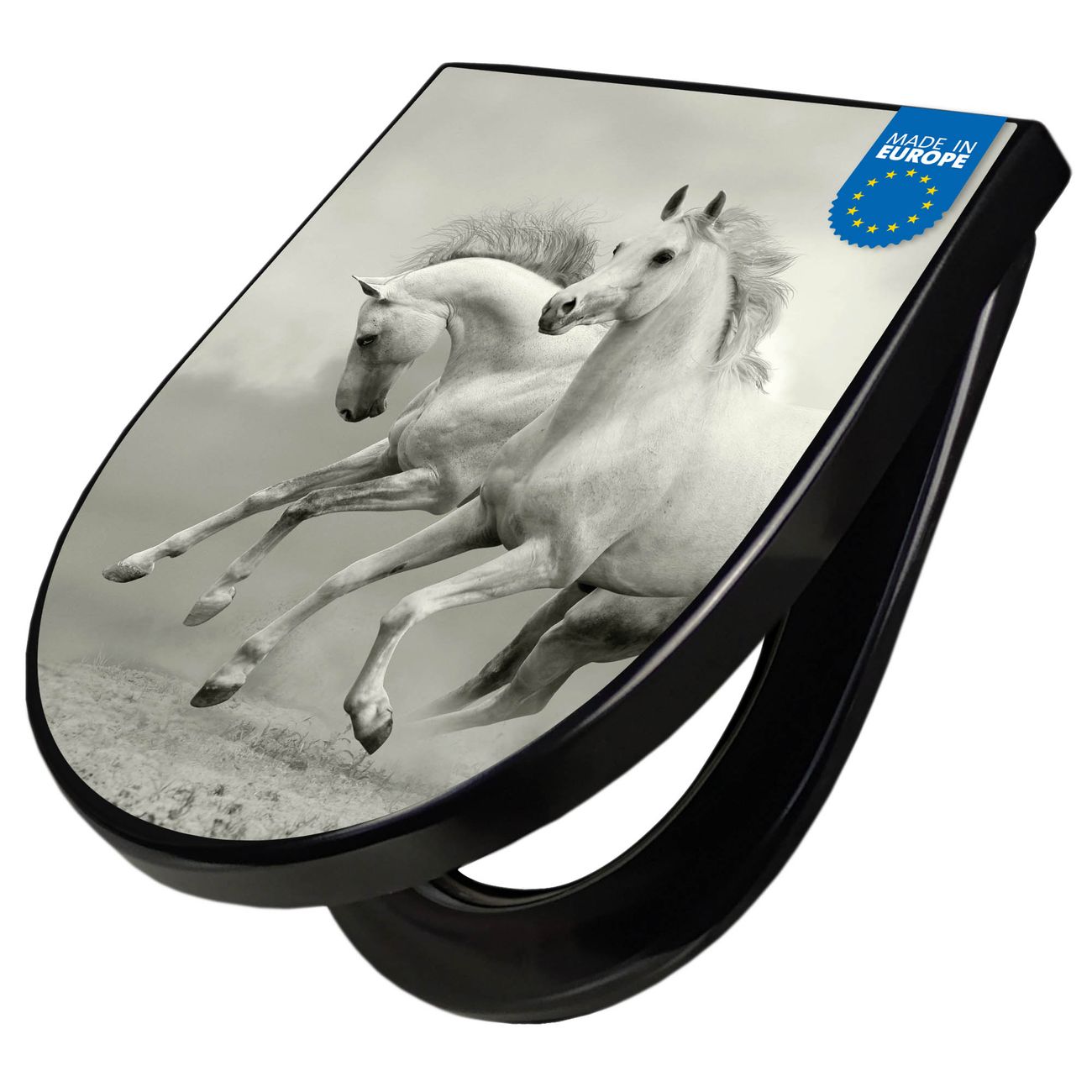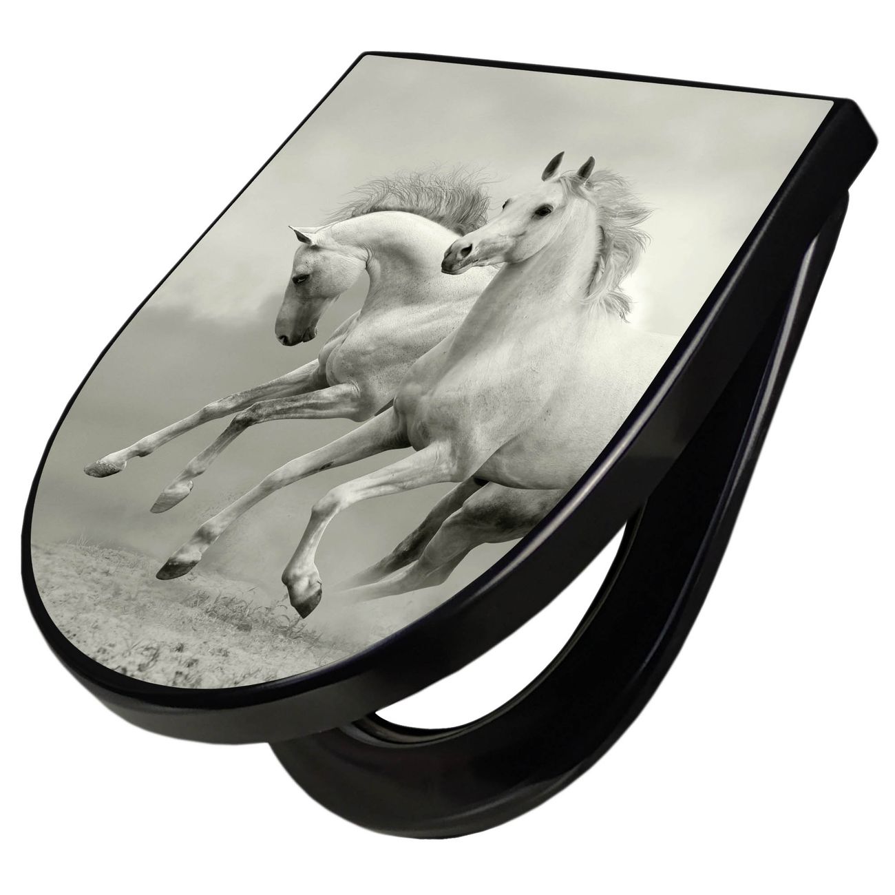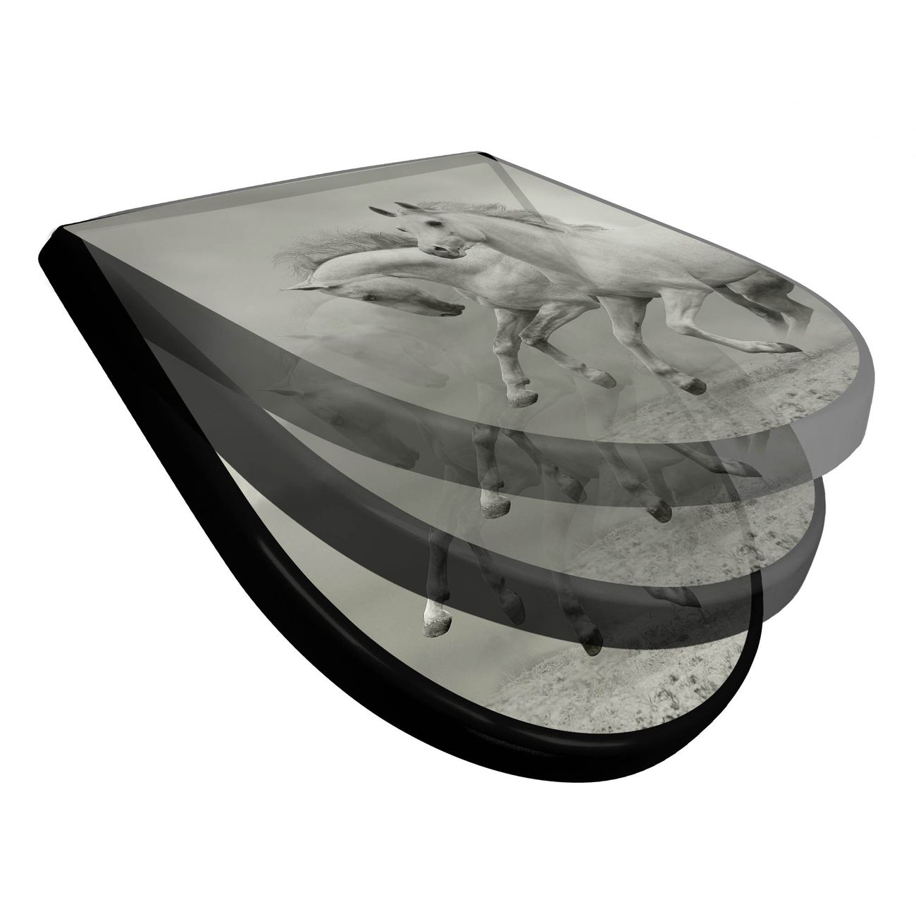 WC Sitz D-Form Schwarz mit Absenkautomatik Motiv Wilde Pferde SW