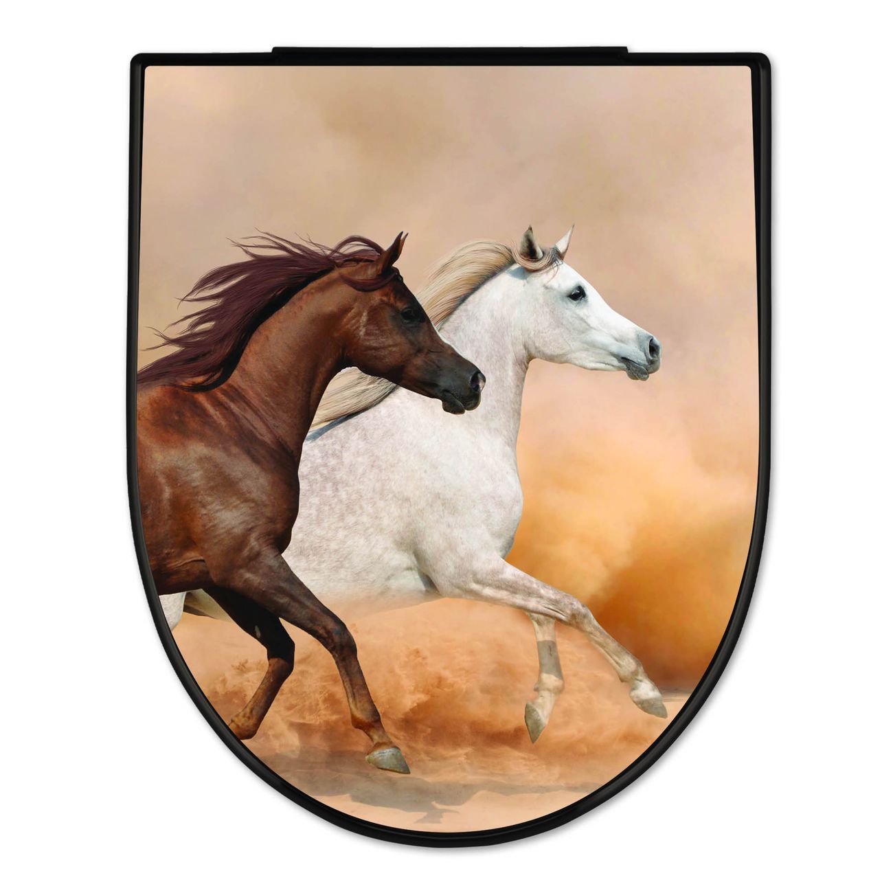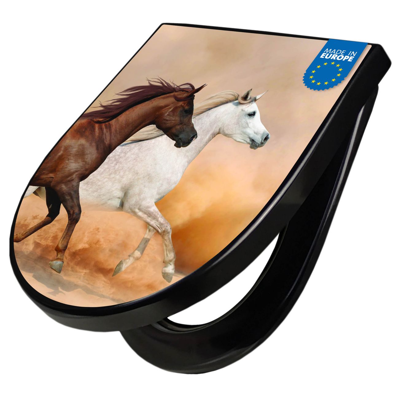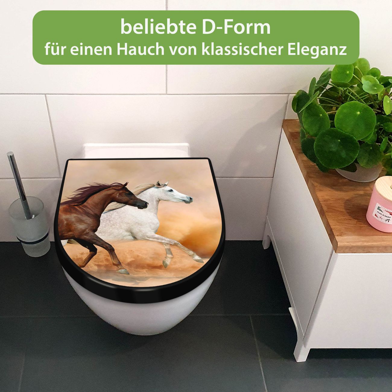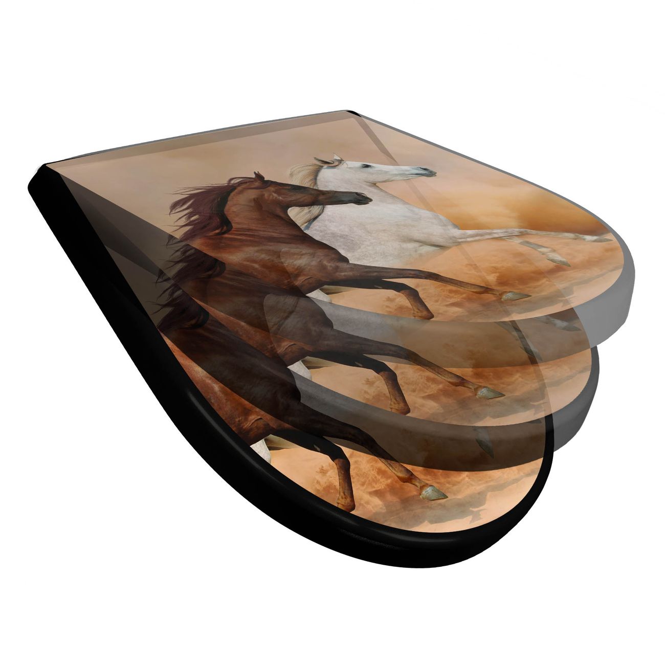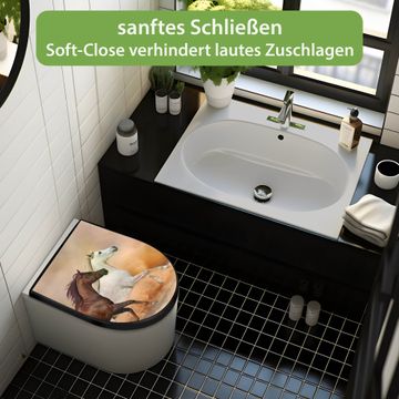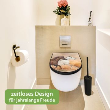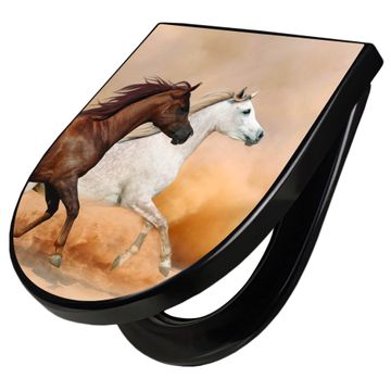 WC Sitz D-Form Schwarz mit Absenkautomatik Motiv Wilde Pferde