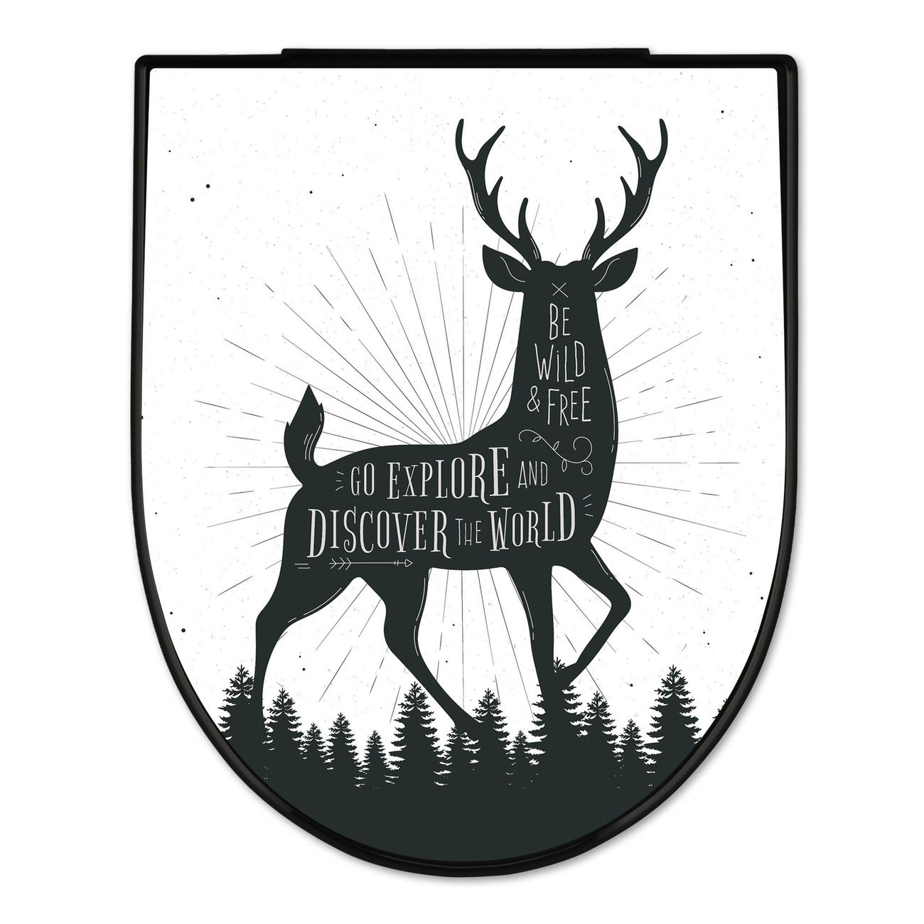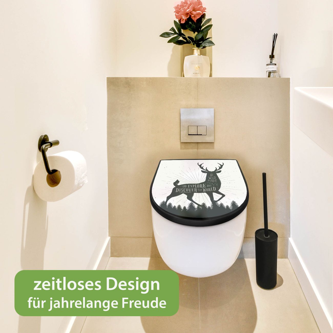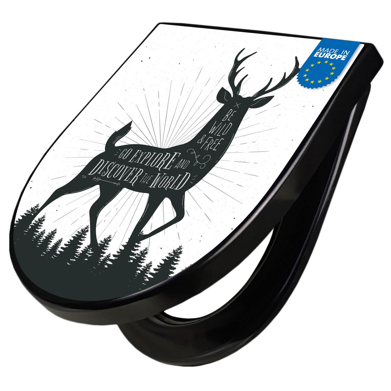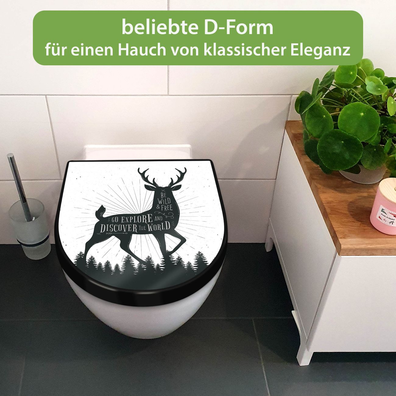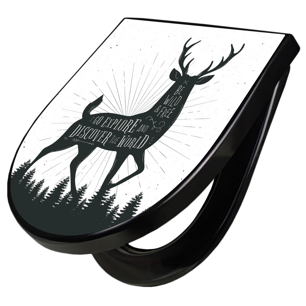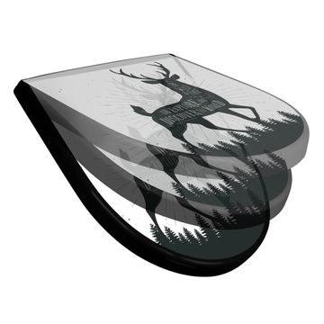 WC Sitz D-Form Schwarz mit Absenkautomatik Motiv Wilder Hirsch