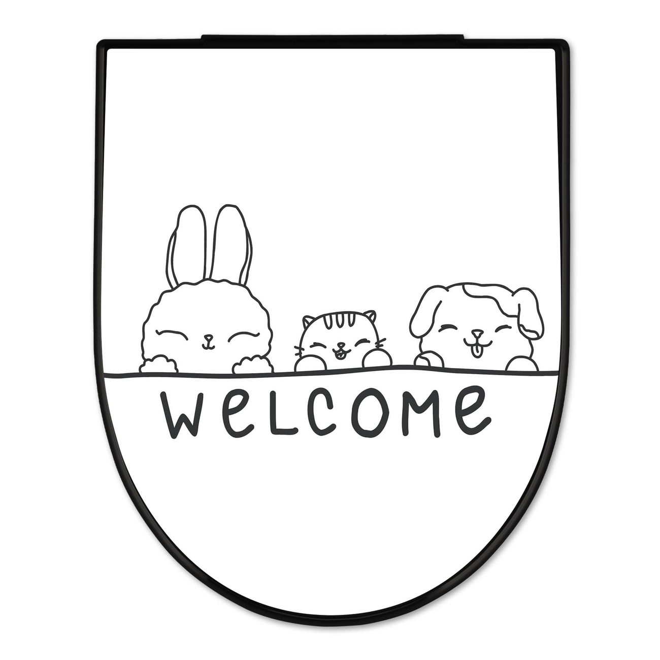 WC Sitz D-Form Schwarz mit Absenkautomatik Motiv Willkommensfreunde