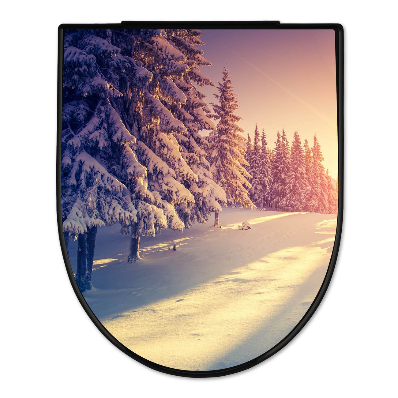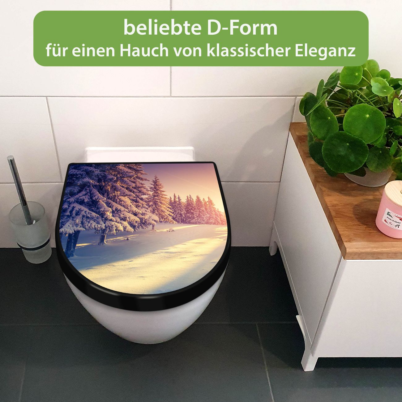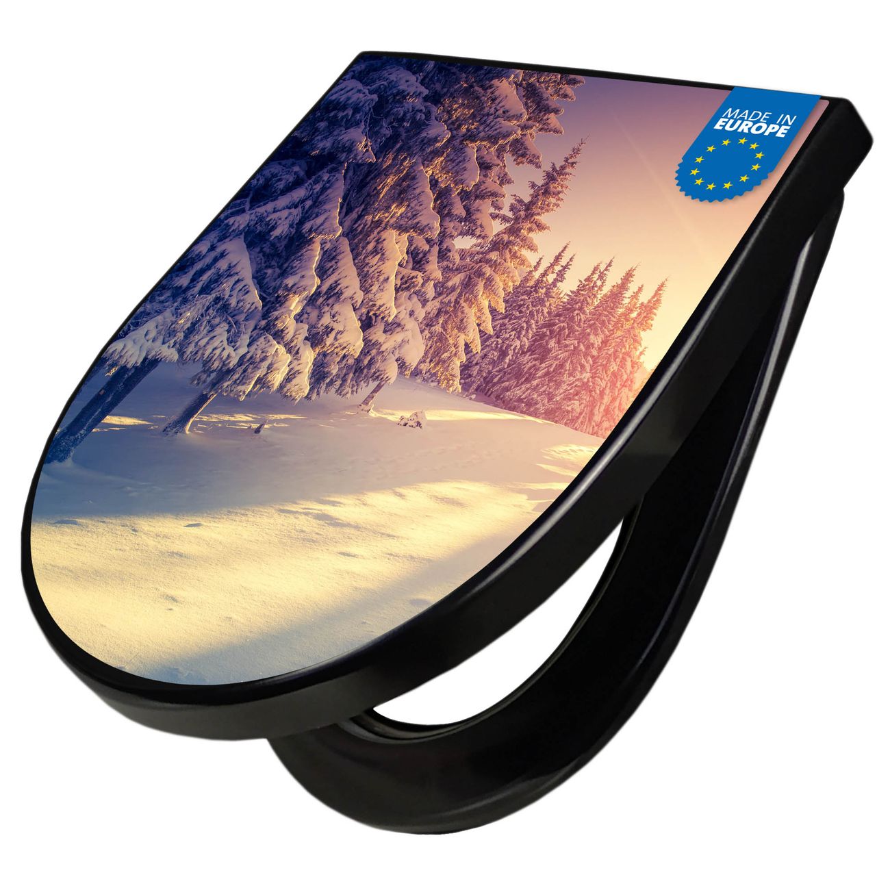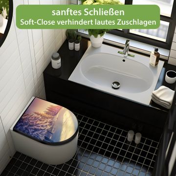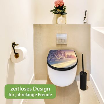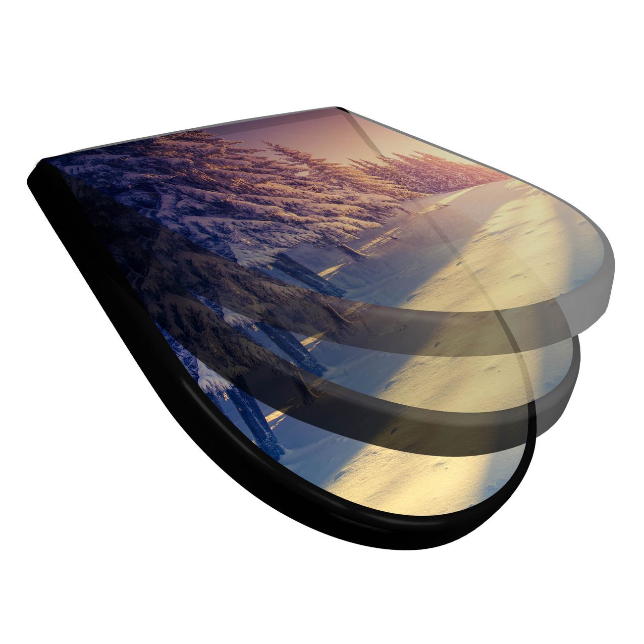 WC Sitz D-Form Schwarz mit Absenkautomatik Motiv Winterabend