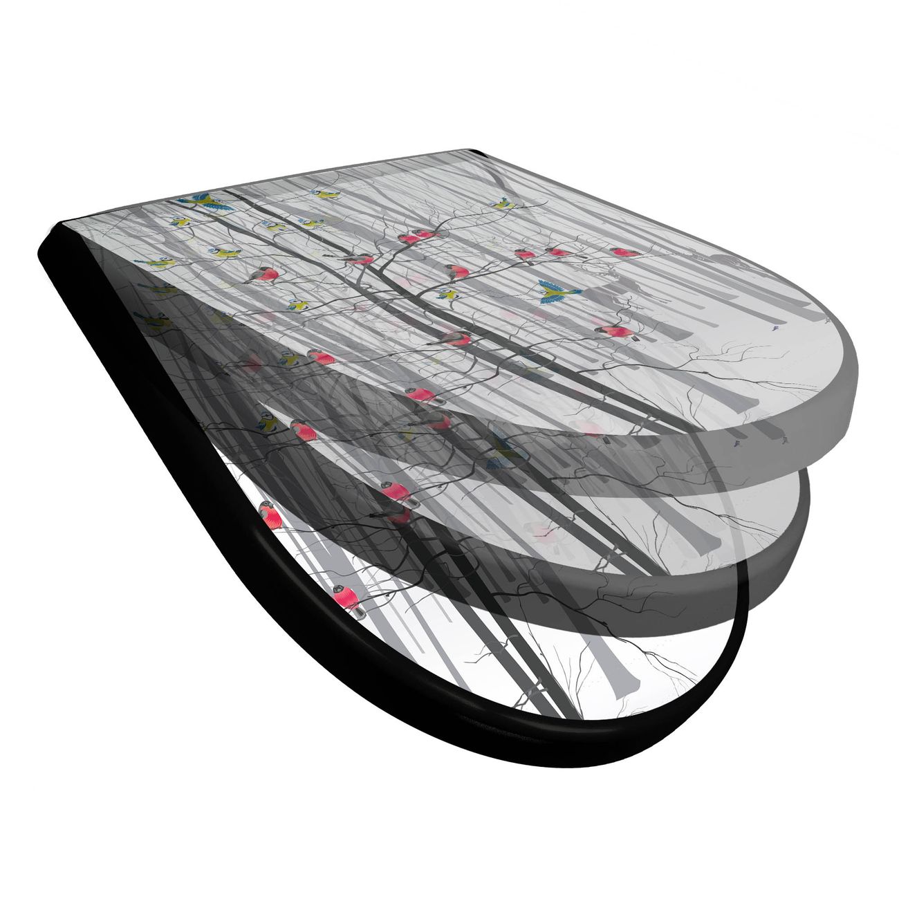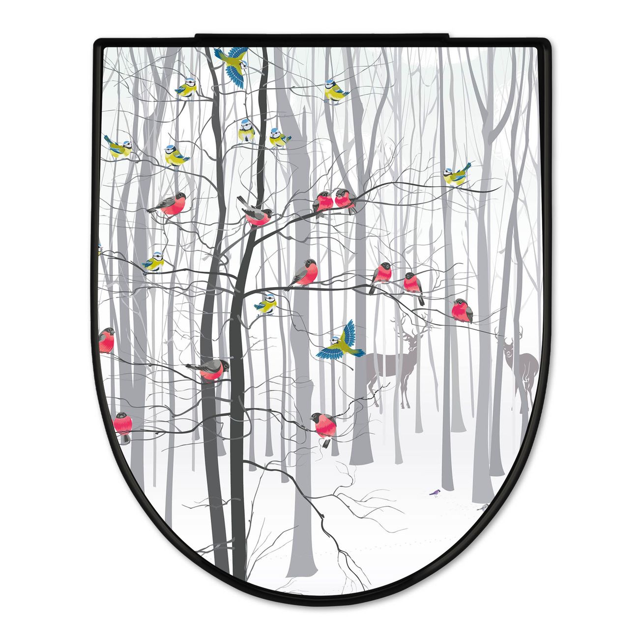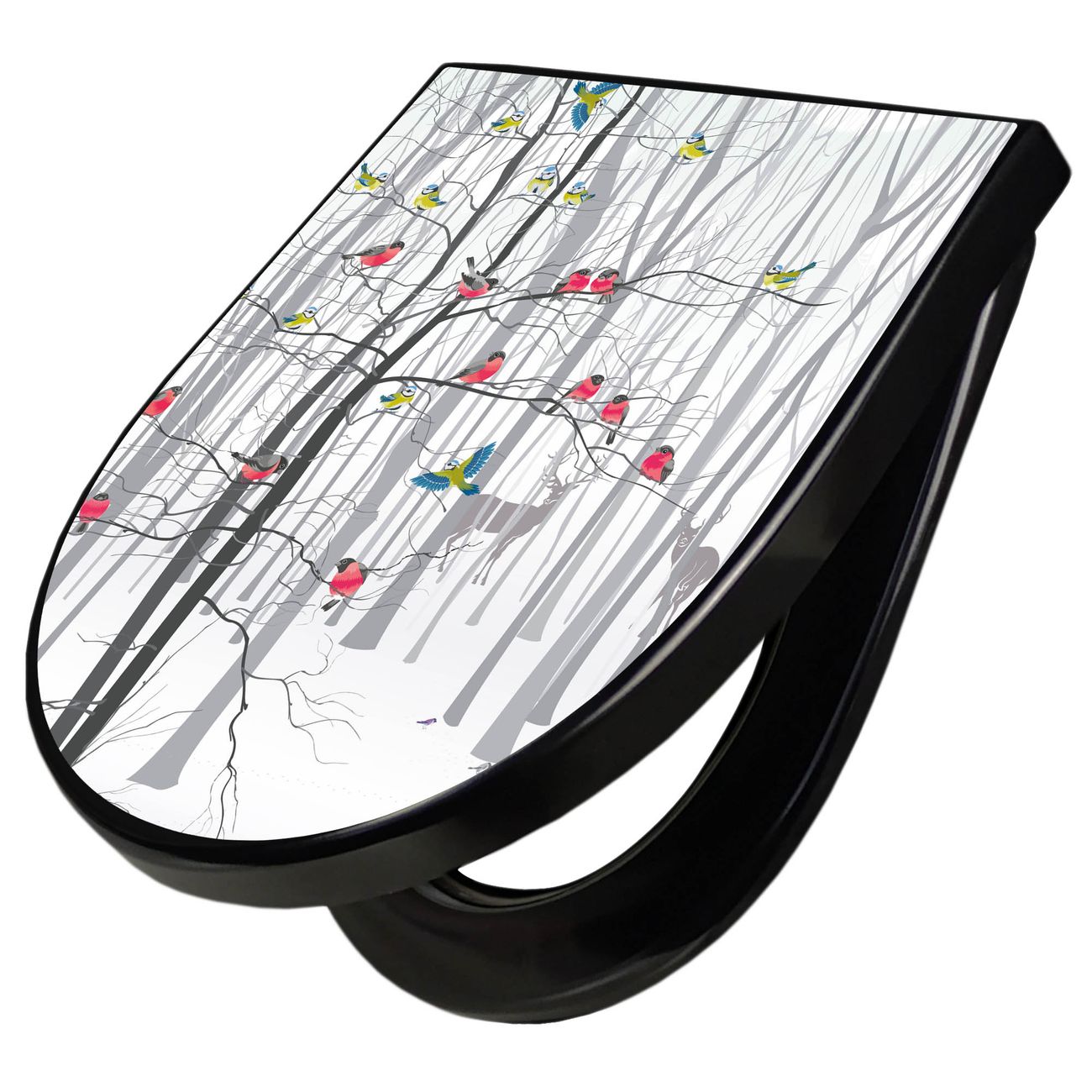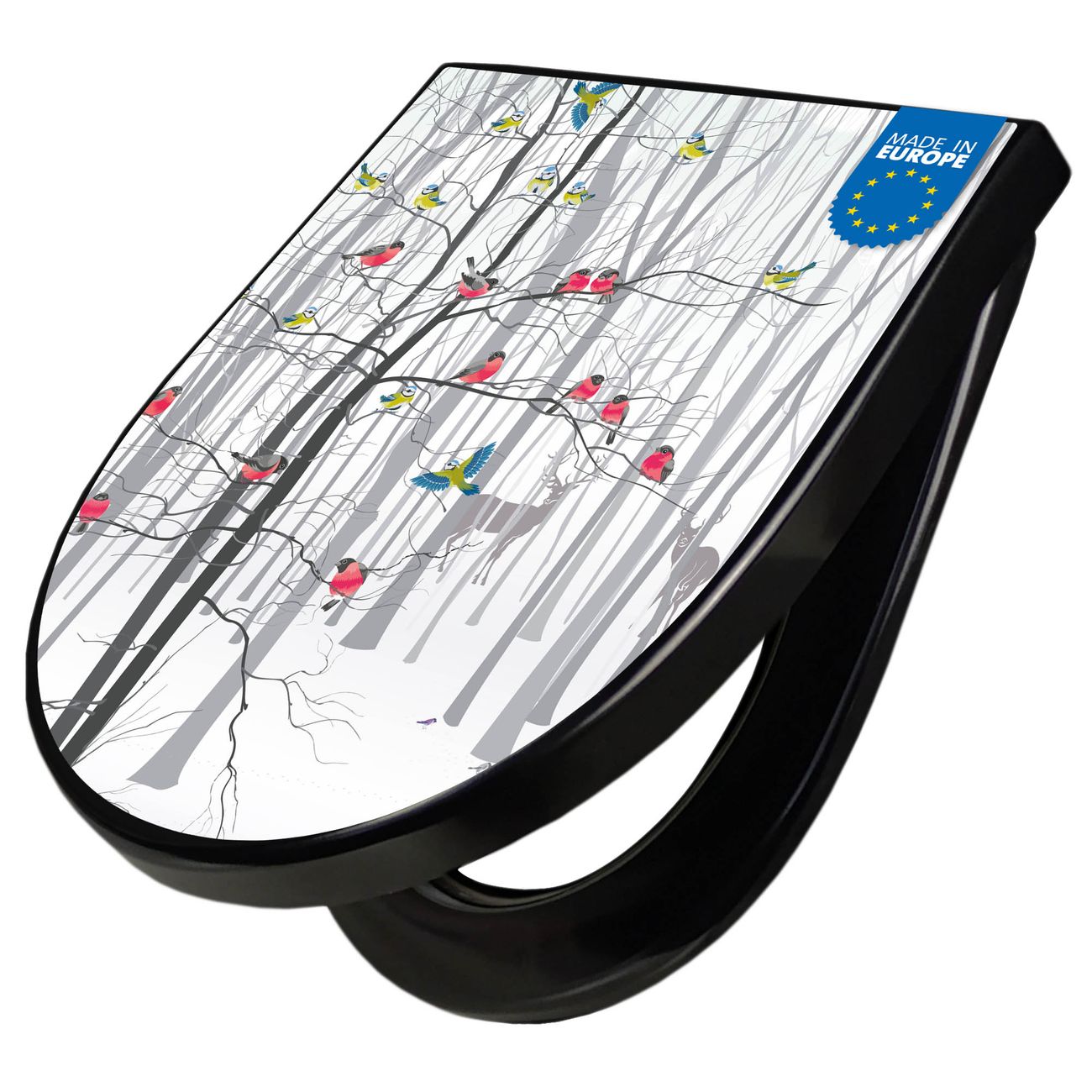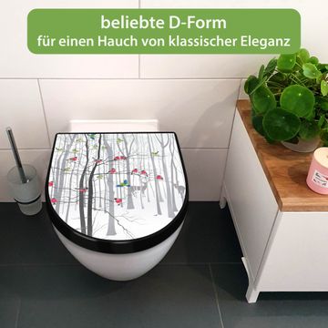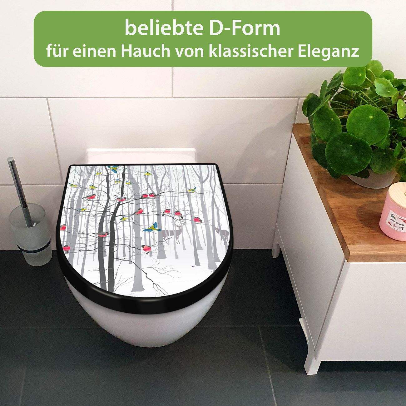 WC Sitz D-Form Schwarz mit Absenkautomatik Motiv Winterwald