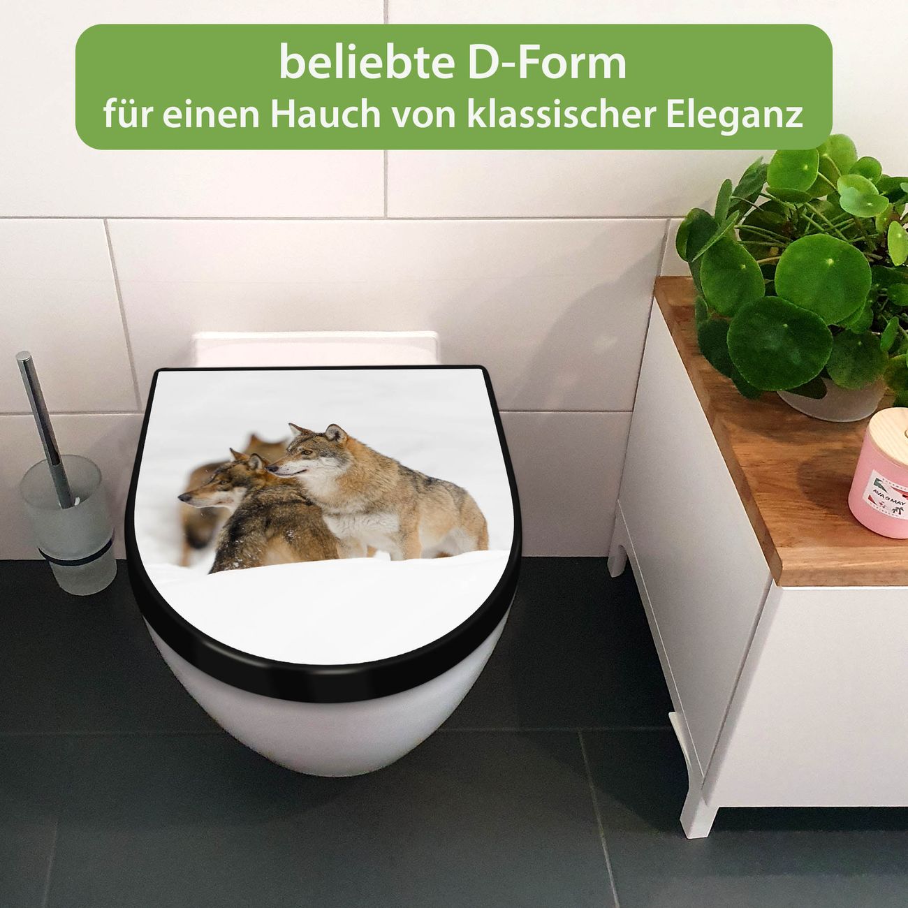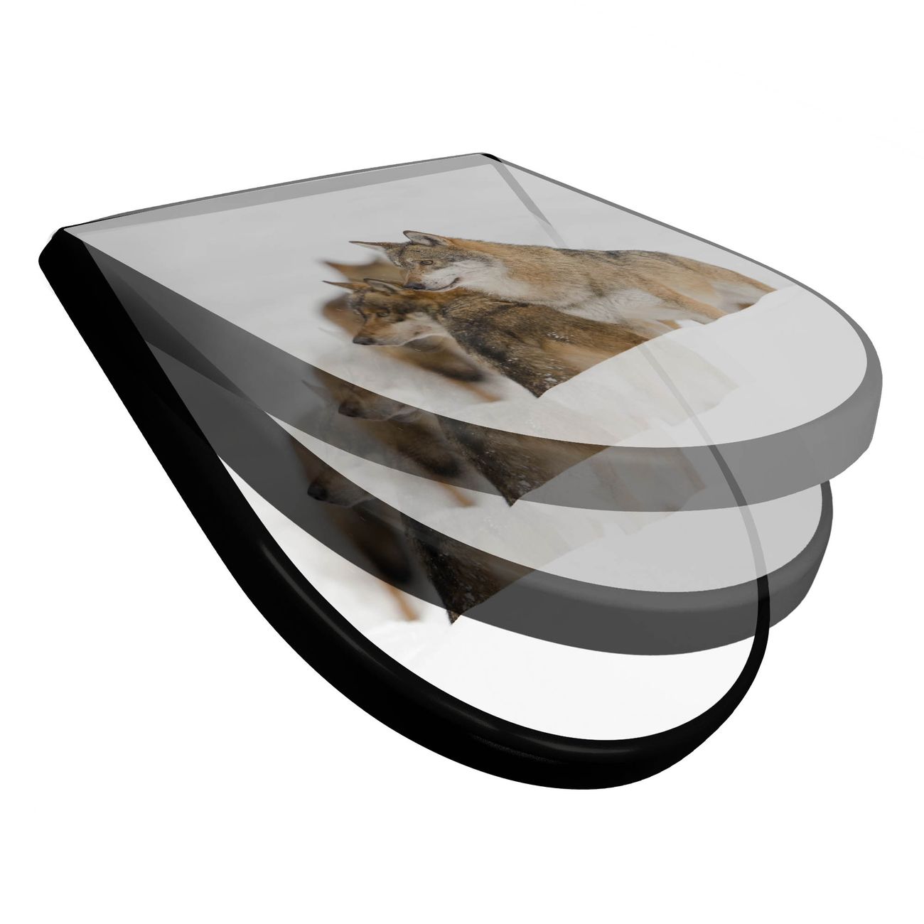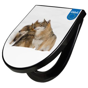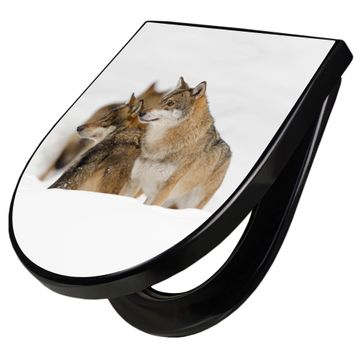 WC Sitz D-Form Schwarz mit Absenkautomatik Motiv Wölfe