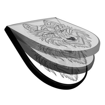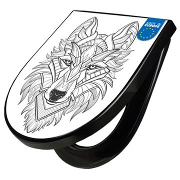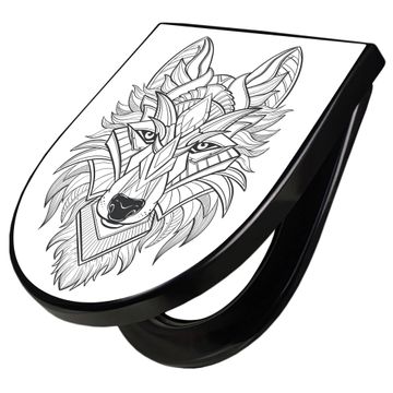 WC Sitz D-Form Schwarz mit Absenkautomatik Motiv Wolf 2