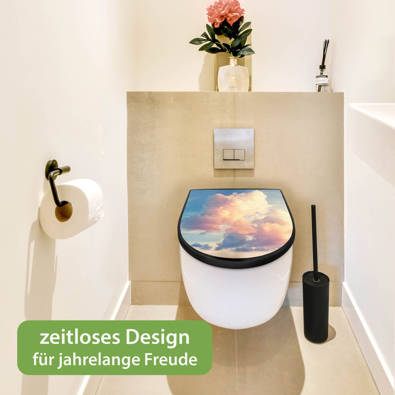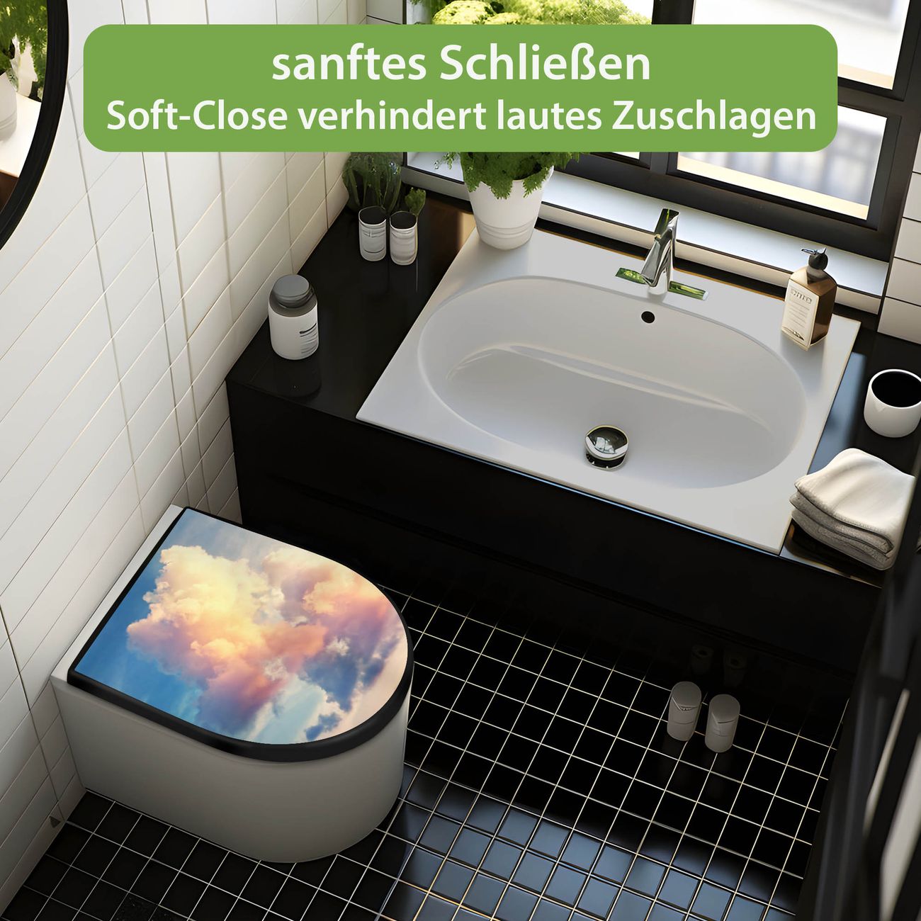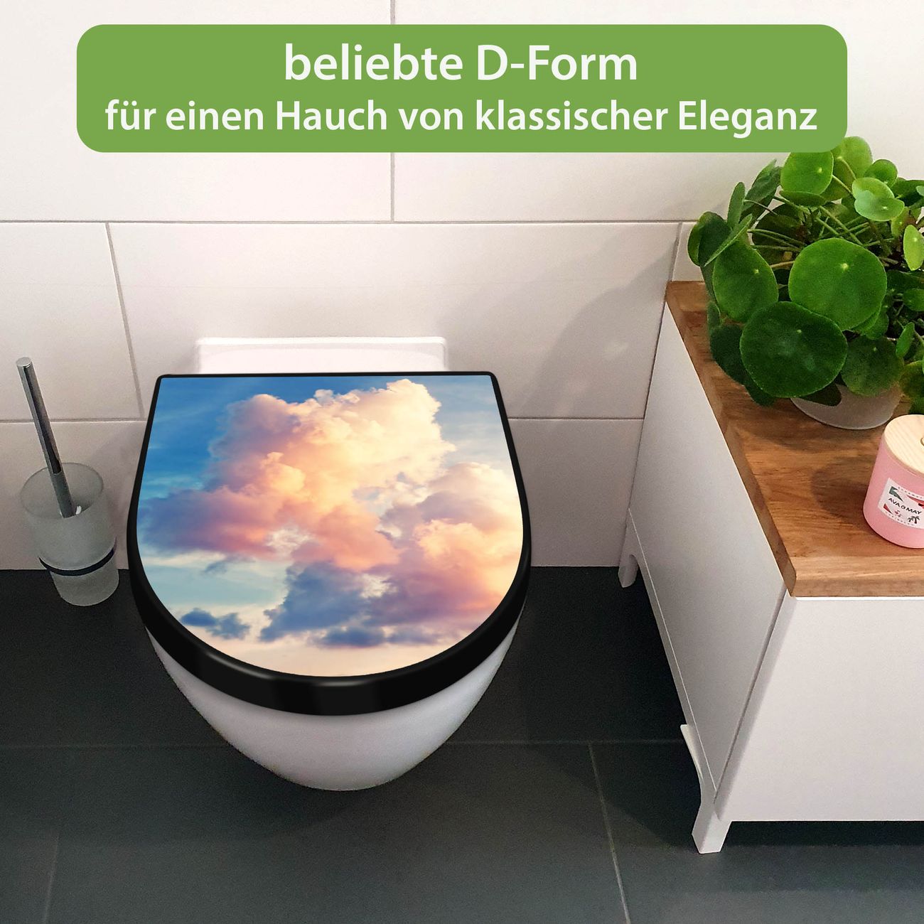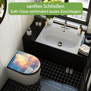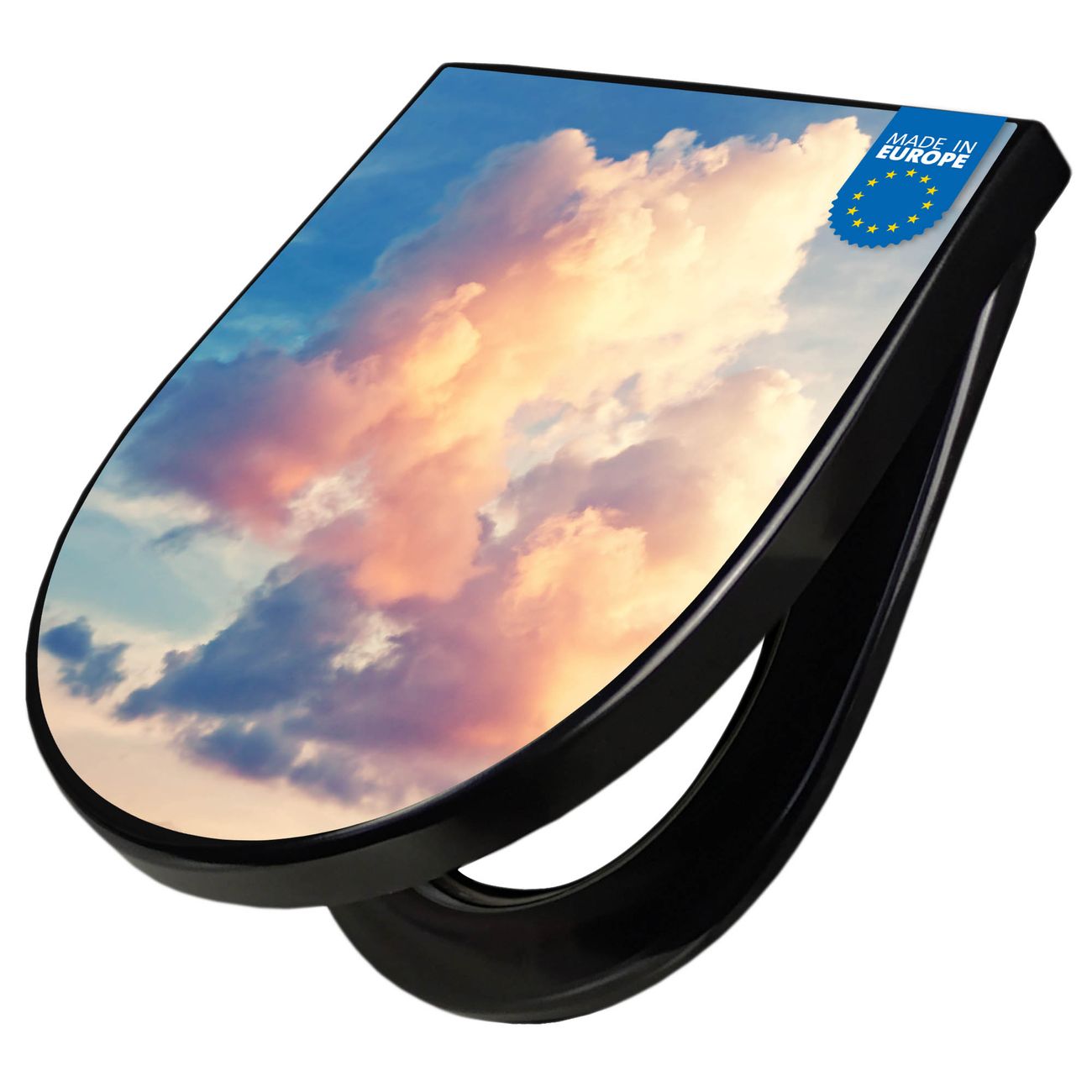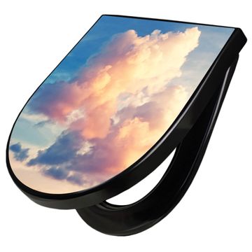 WC Sitz D-Form Schwarz mit Absenkautomatik Motiv Wolken 10