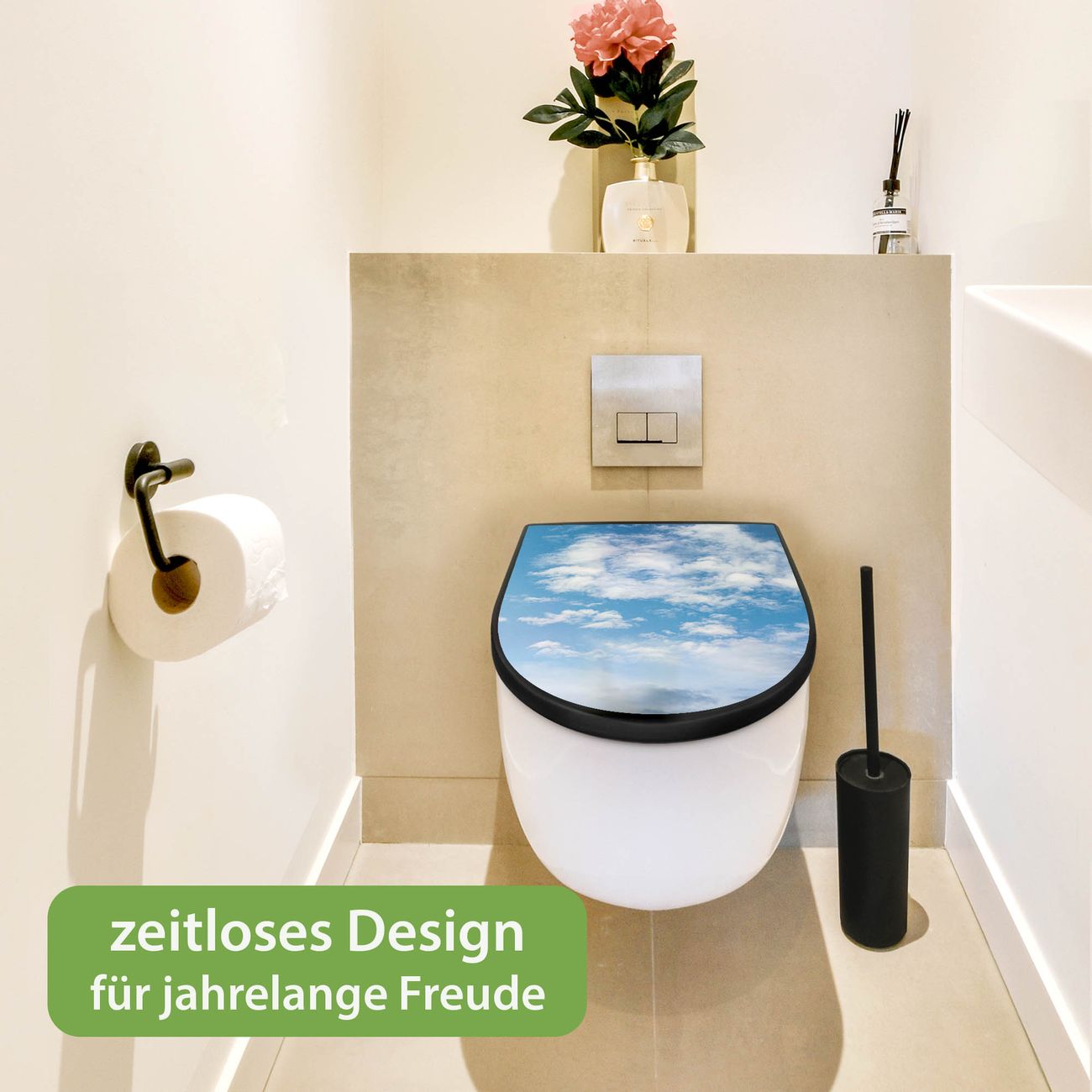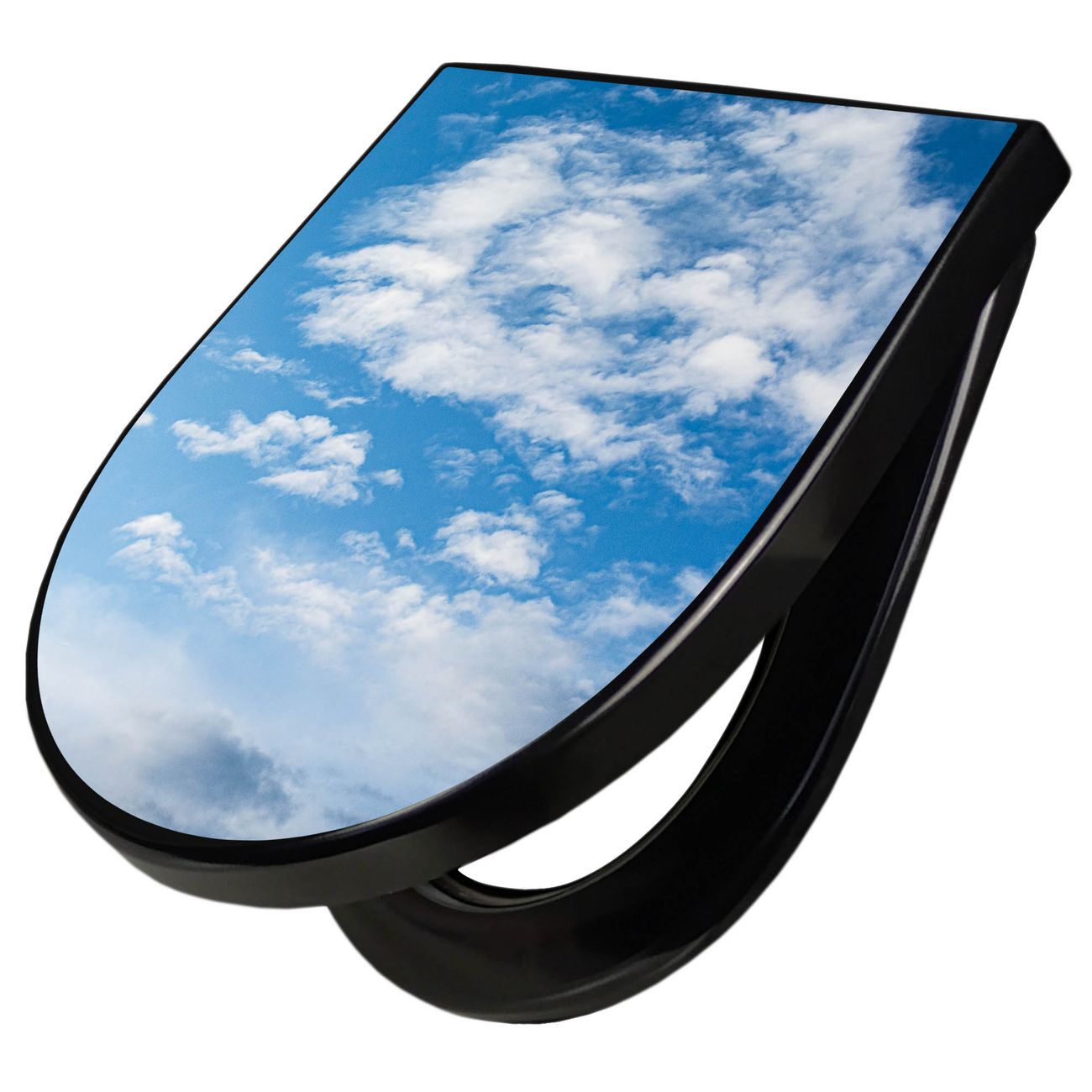 WC Sitz D-Form Schwarz mit Absenkautomatik Motiv Wolken 1