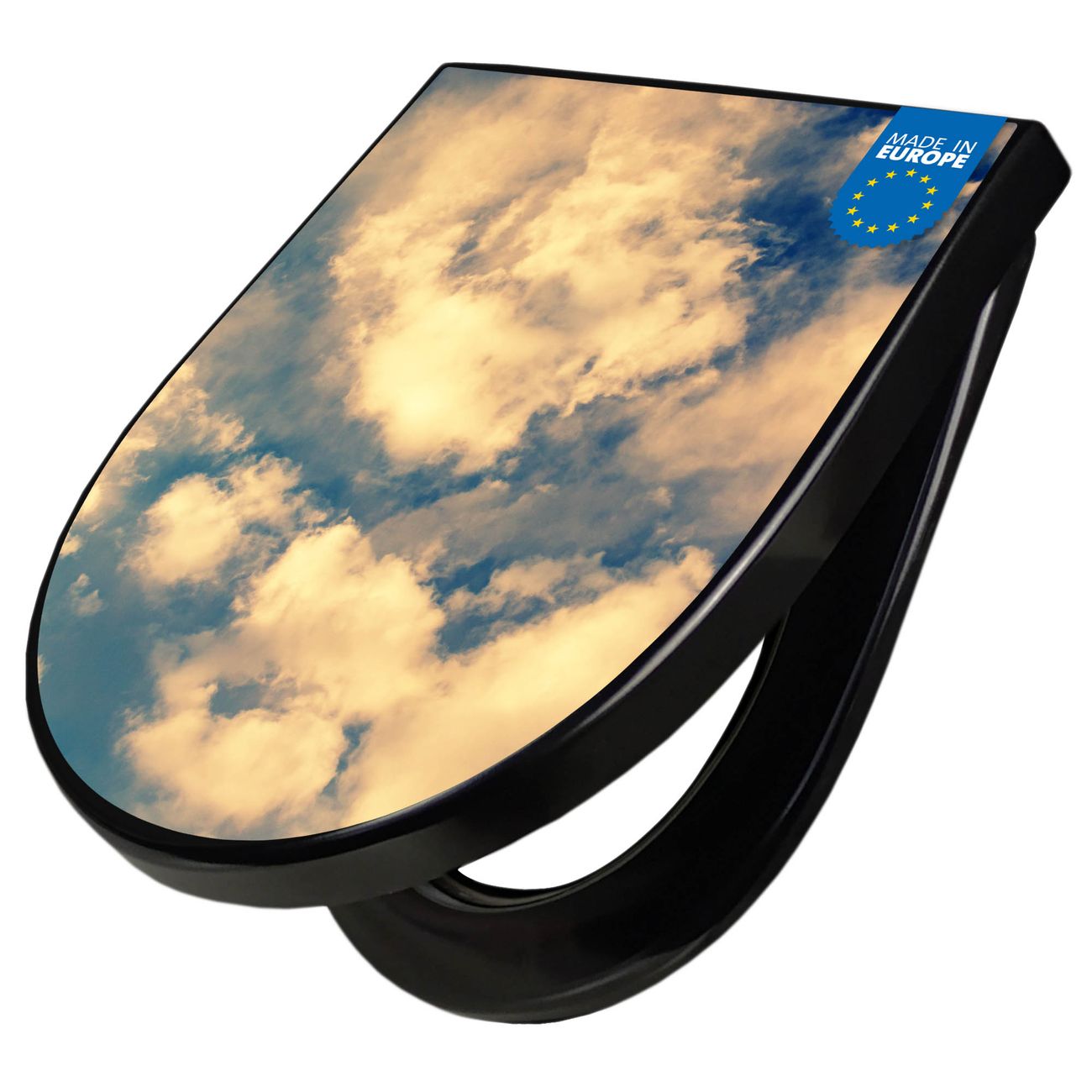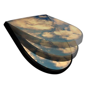 WC Sitz D-Form Schwarz mit Absenkautomatik Motiv Wolken 3
