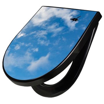 WC Sitz D-Form Schwarz mit Absenkautomatik Motiv Wolken 4