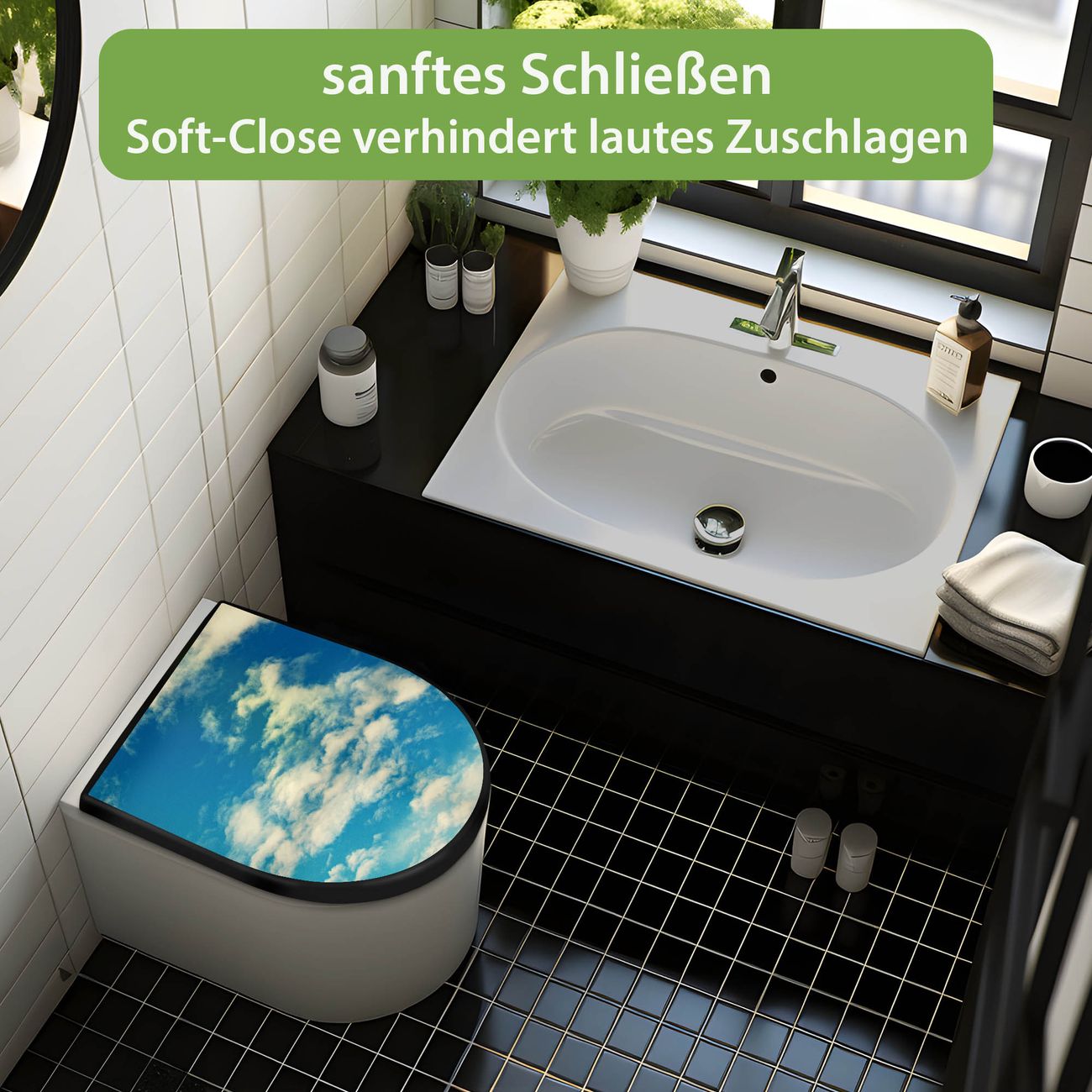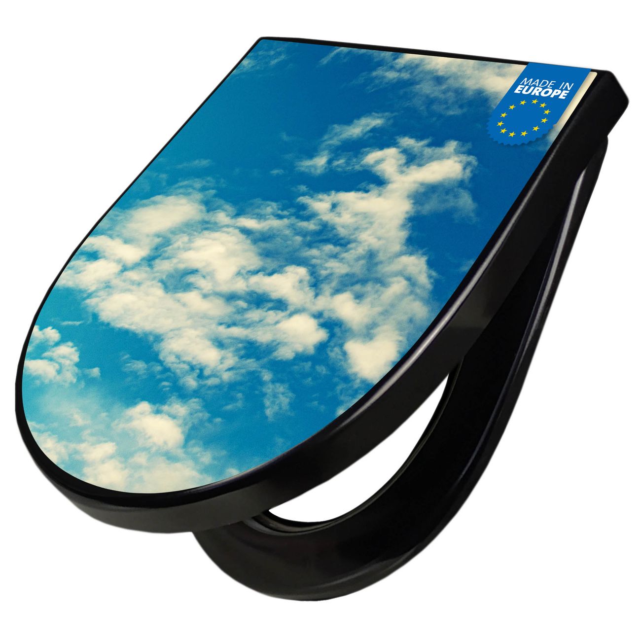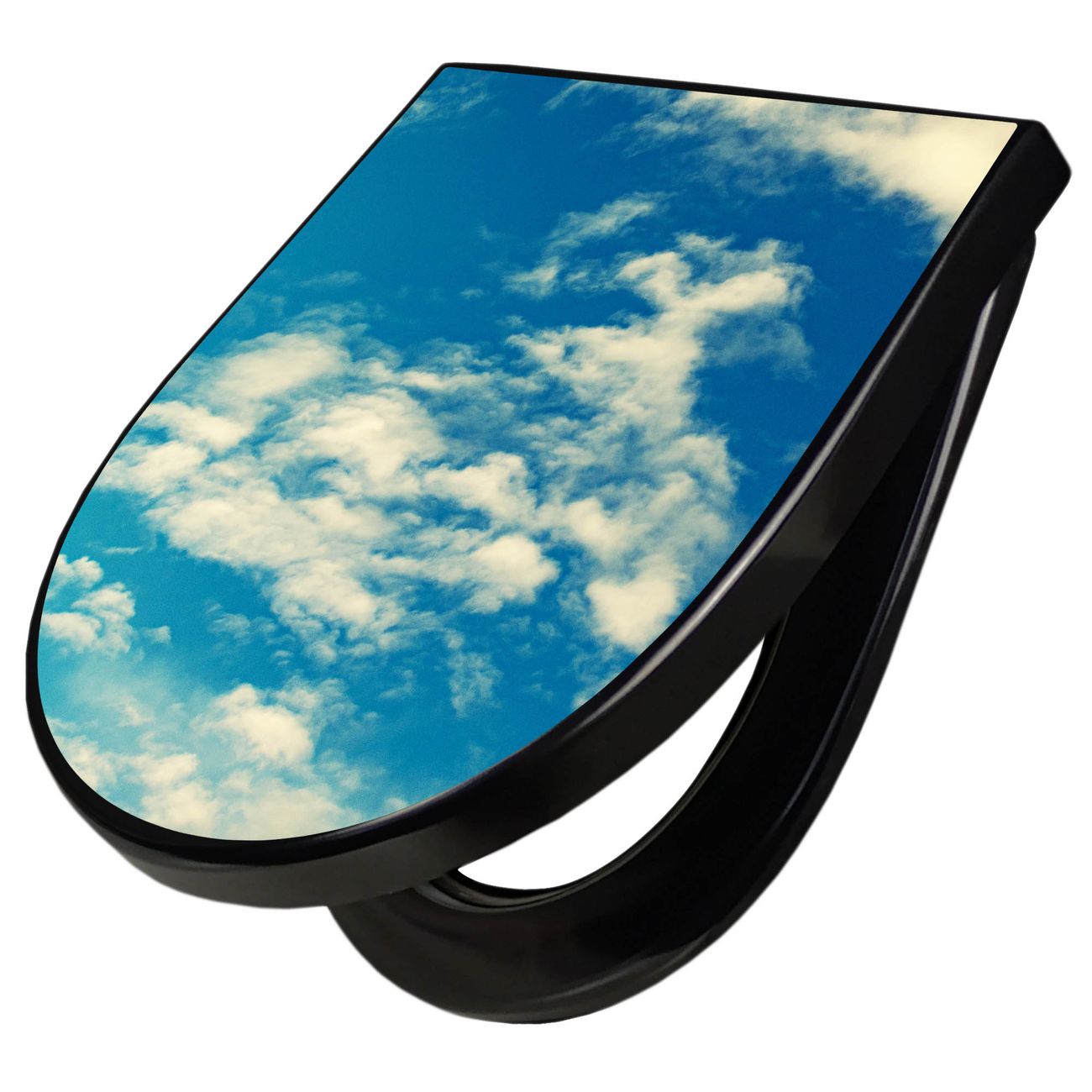 WC Sitz D-Form Schwarz mit Absenkautomatik Motiv Wolken 5