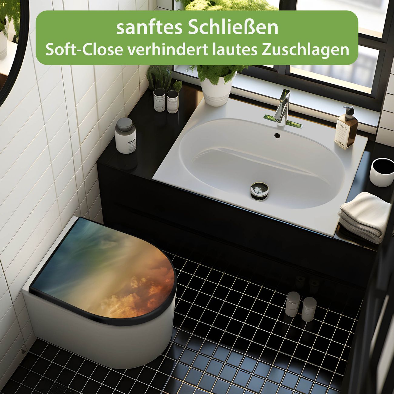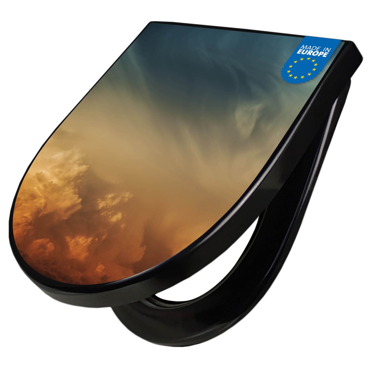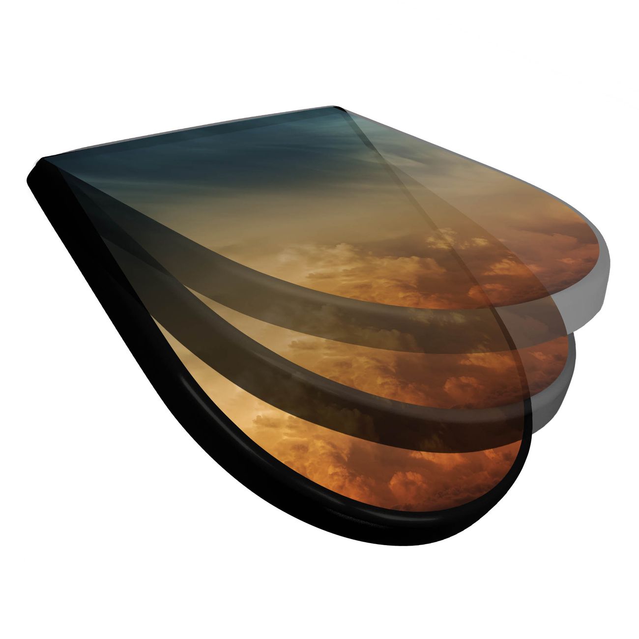 WC Sitz D-Form Schwarz mit Absenkautomatik Motiv Wolken in der Dämmerung