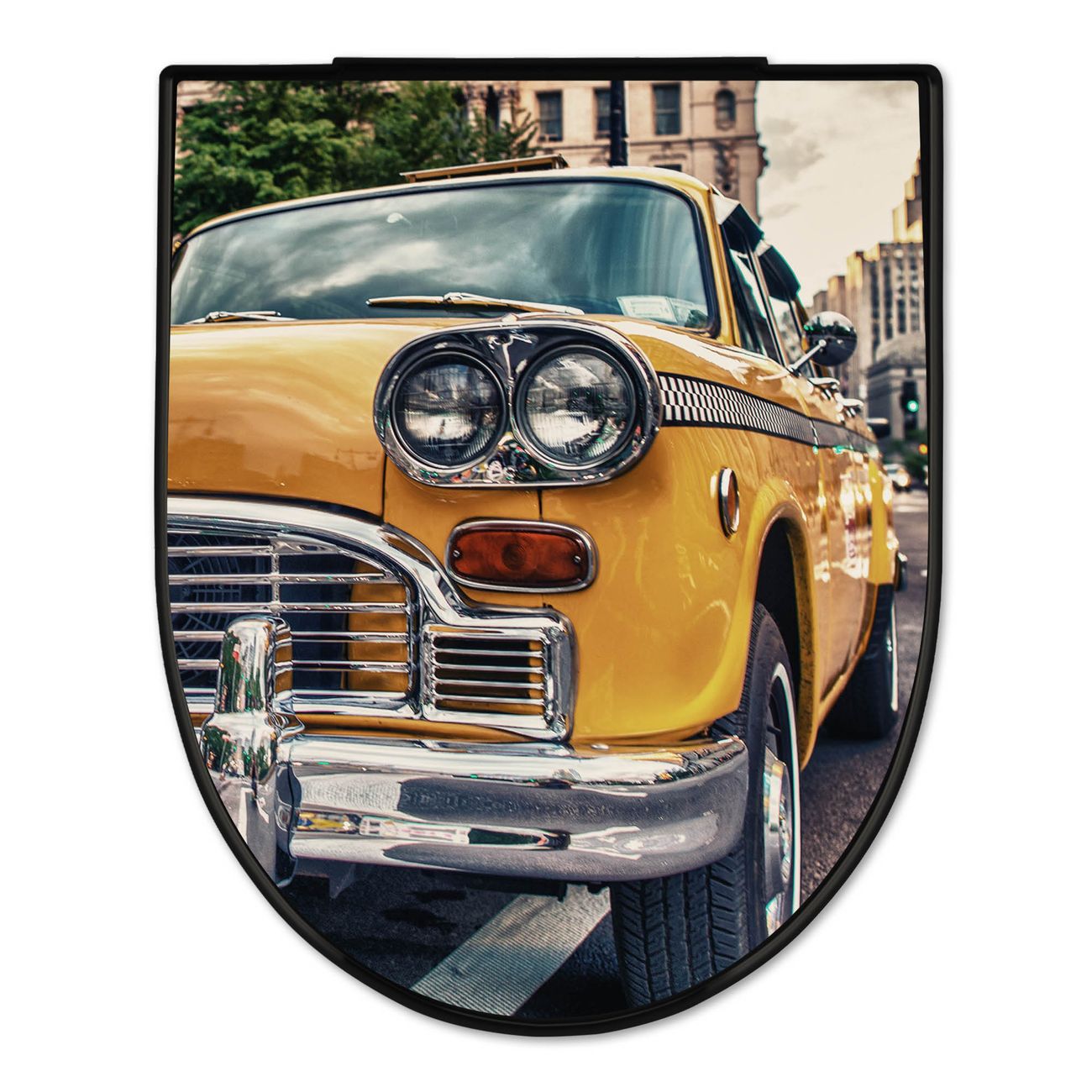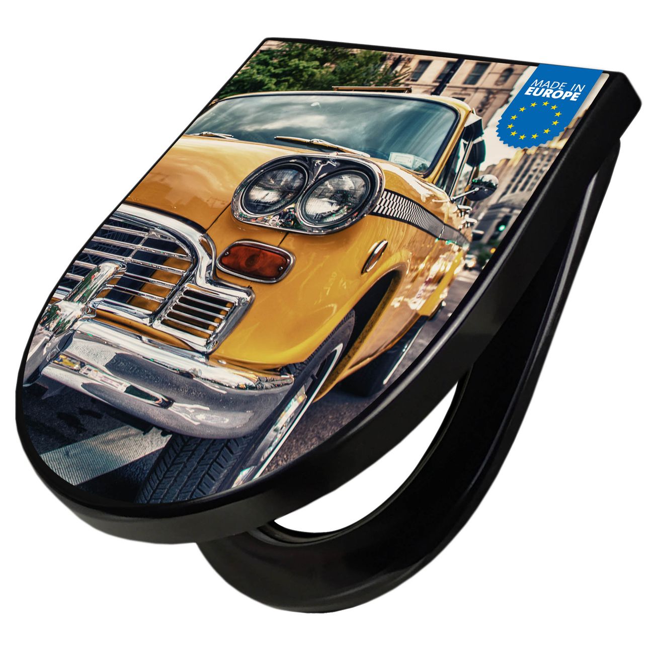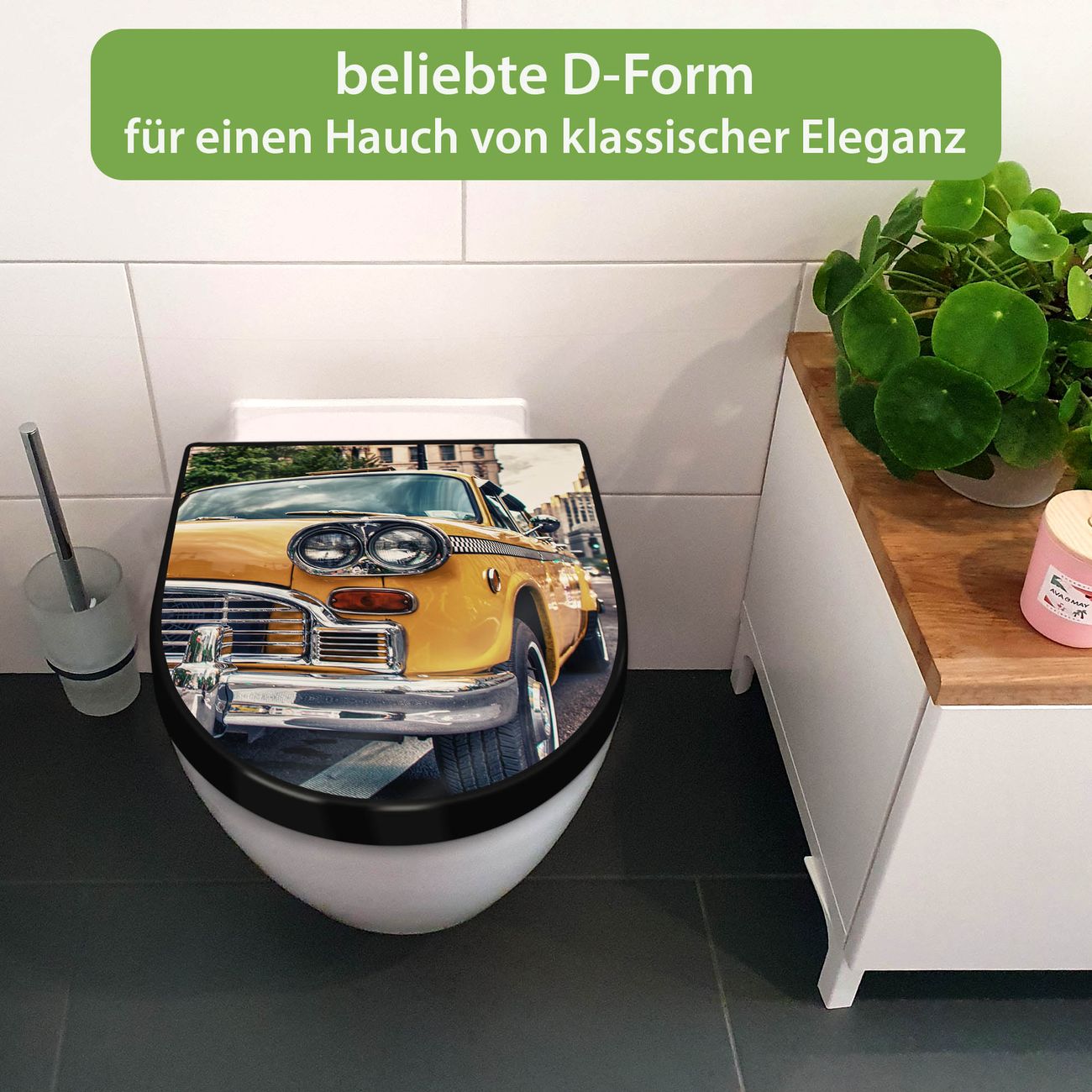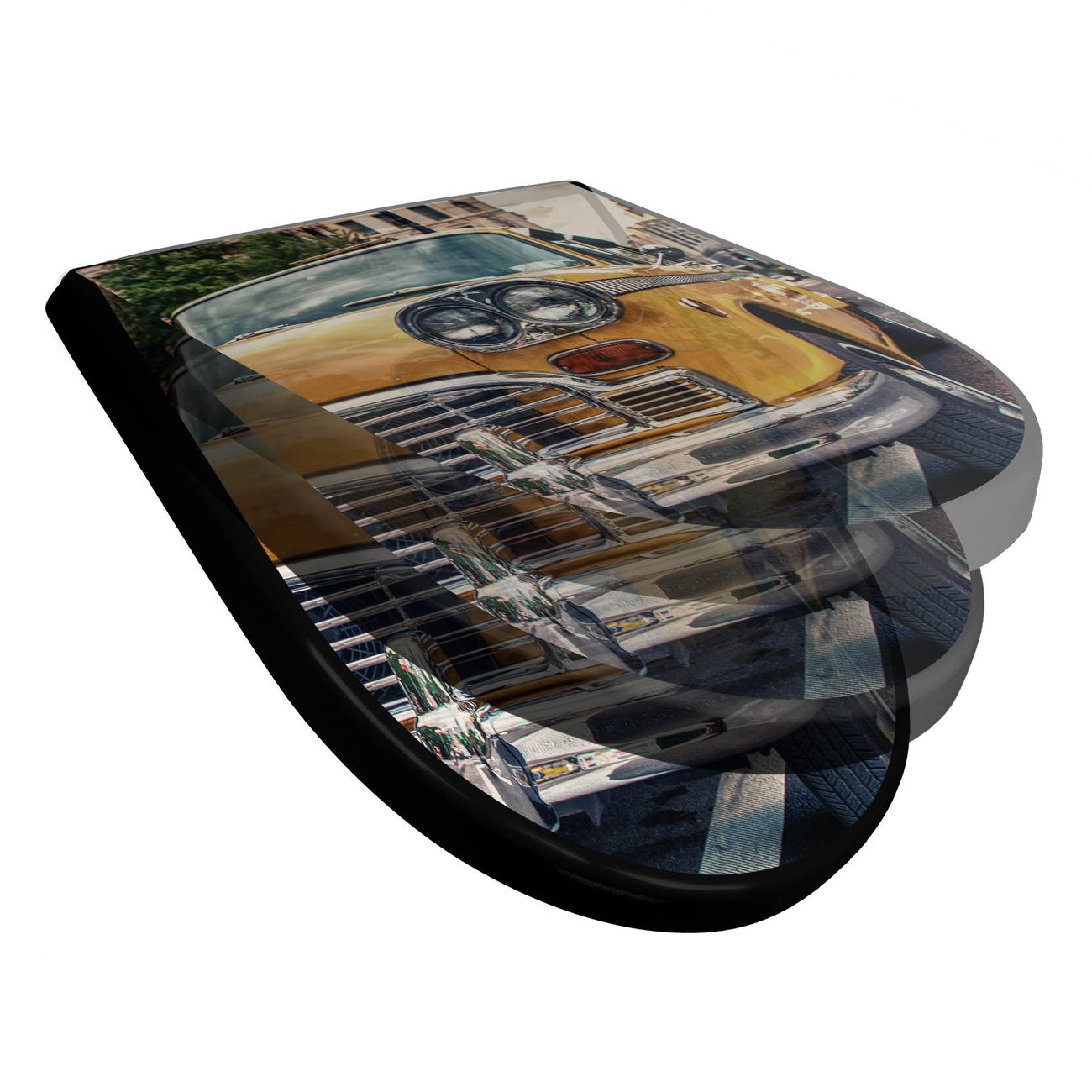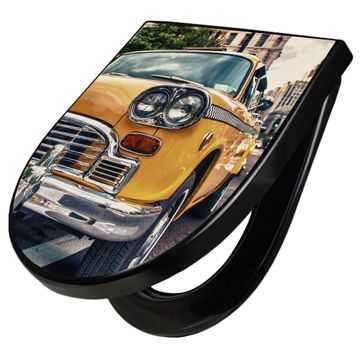 WC Sitz D-Form Schwarz mit Absenkautomatik Motiv Yellow Cab