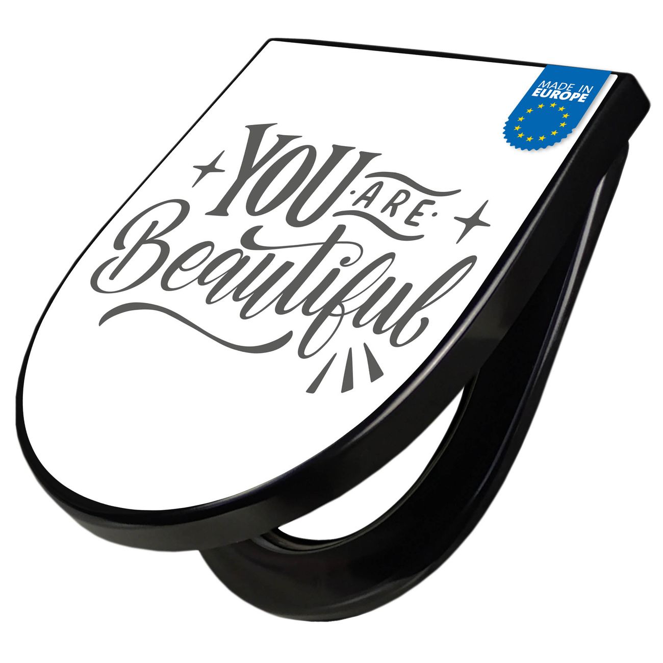 WC Sitz D-Form Schwarz mit Absenkautomatik Motiv You are Beautiful