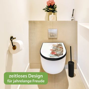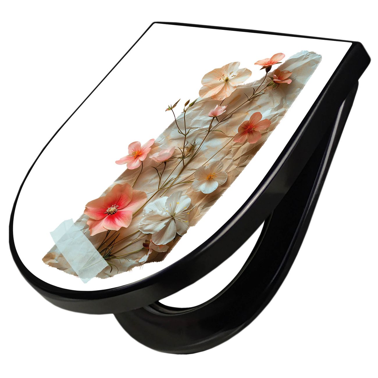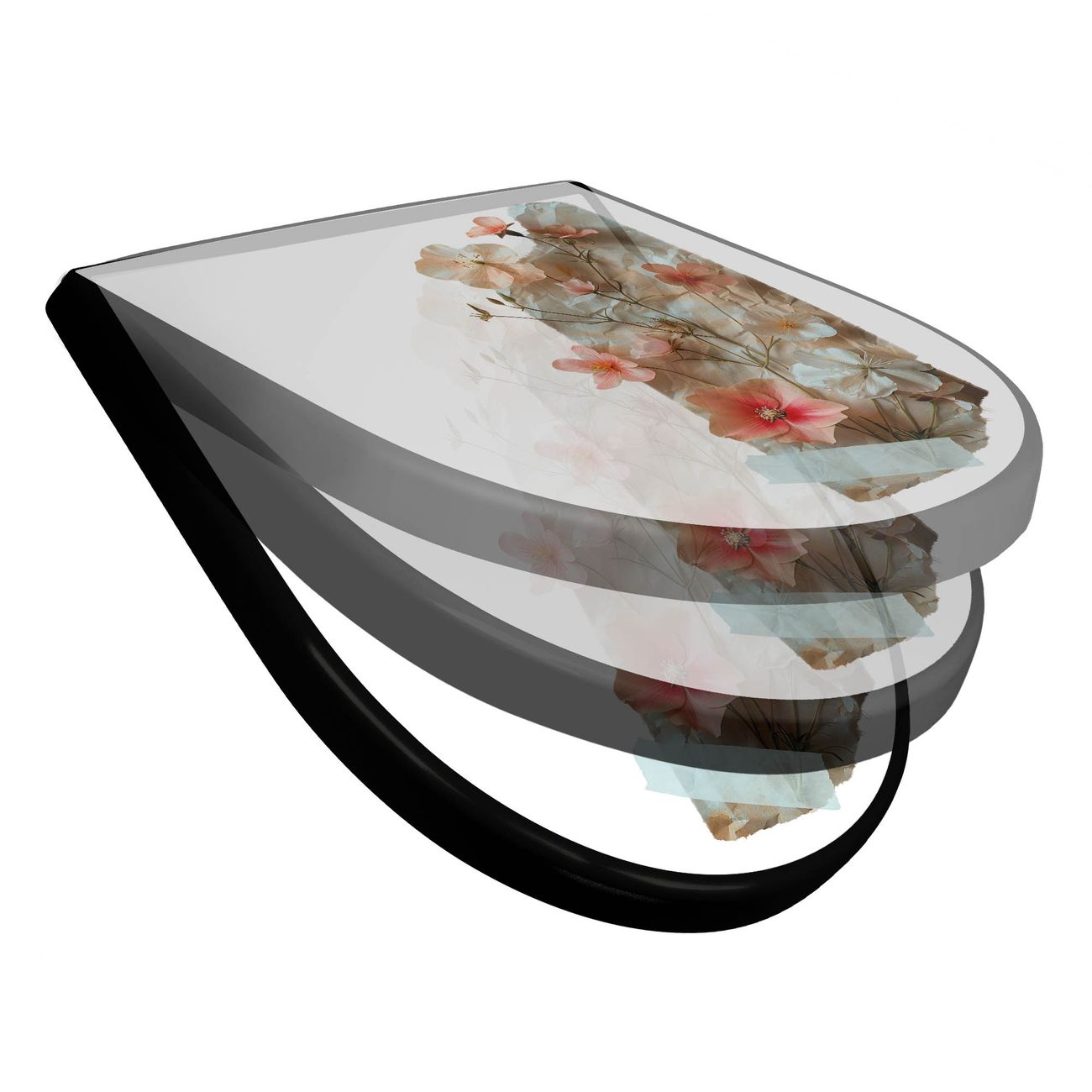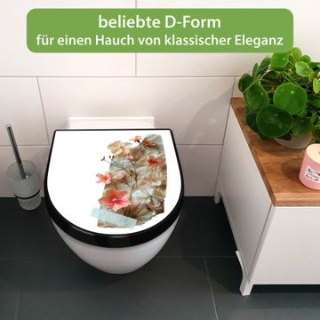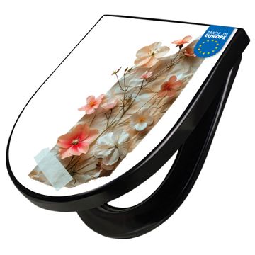 WC Sitz D-Form Schwarz mit Absenkautomatik Motiv Zarte Blütenkomposition Vintage