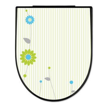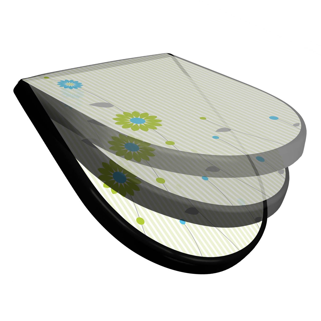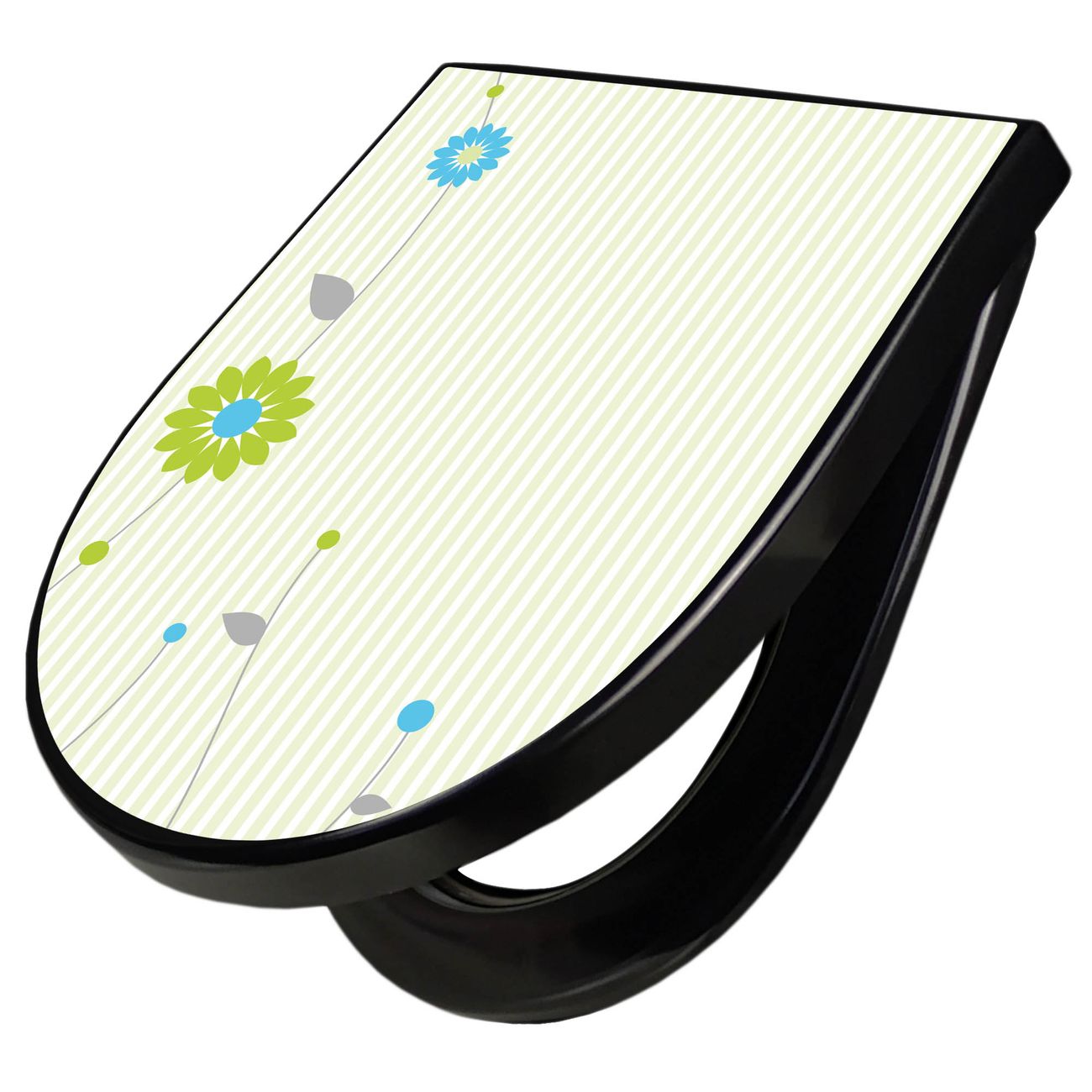 WC Sitz D-Form Schwarz mit Absenkautomatik Motiv Zarte Blumen